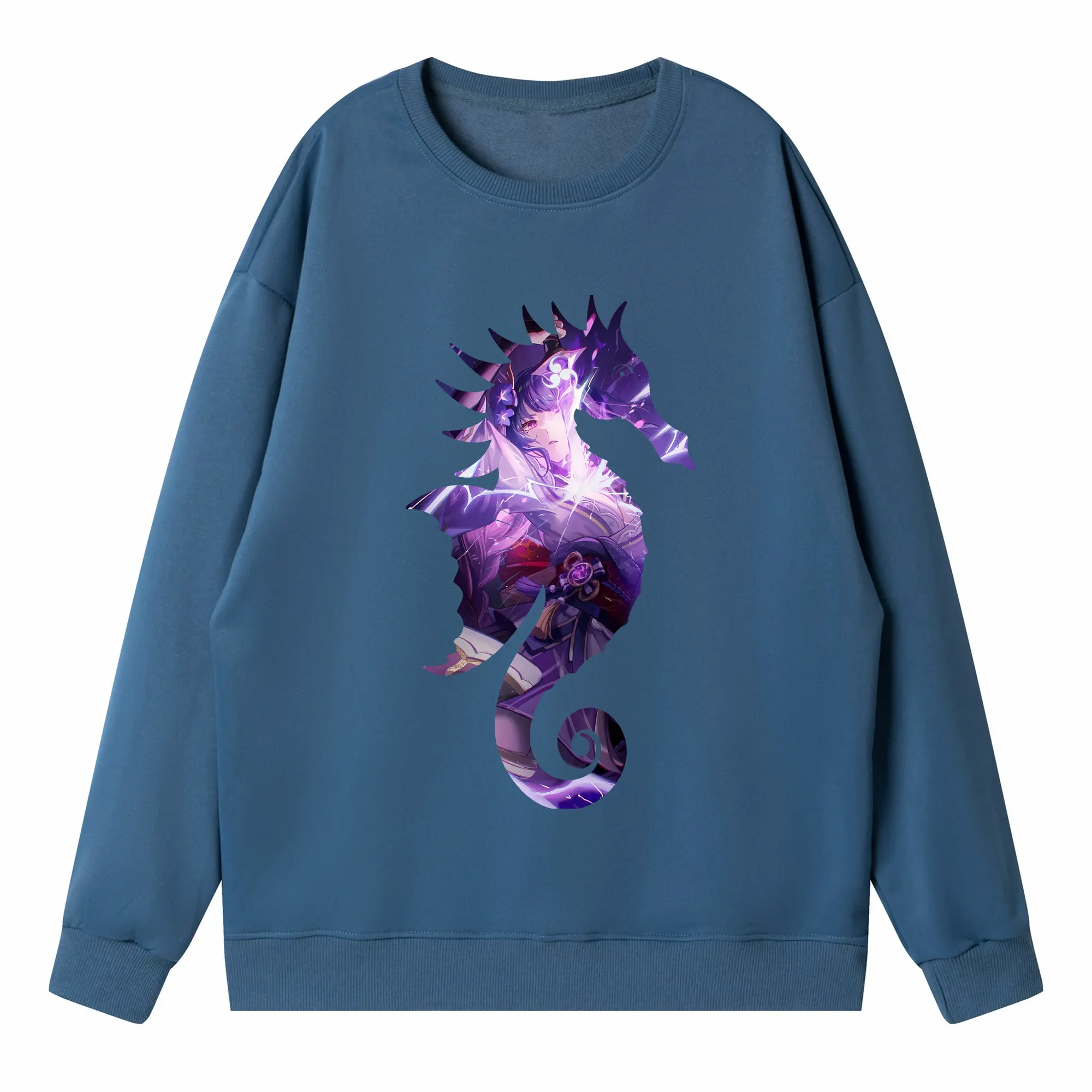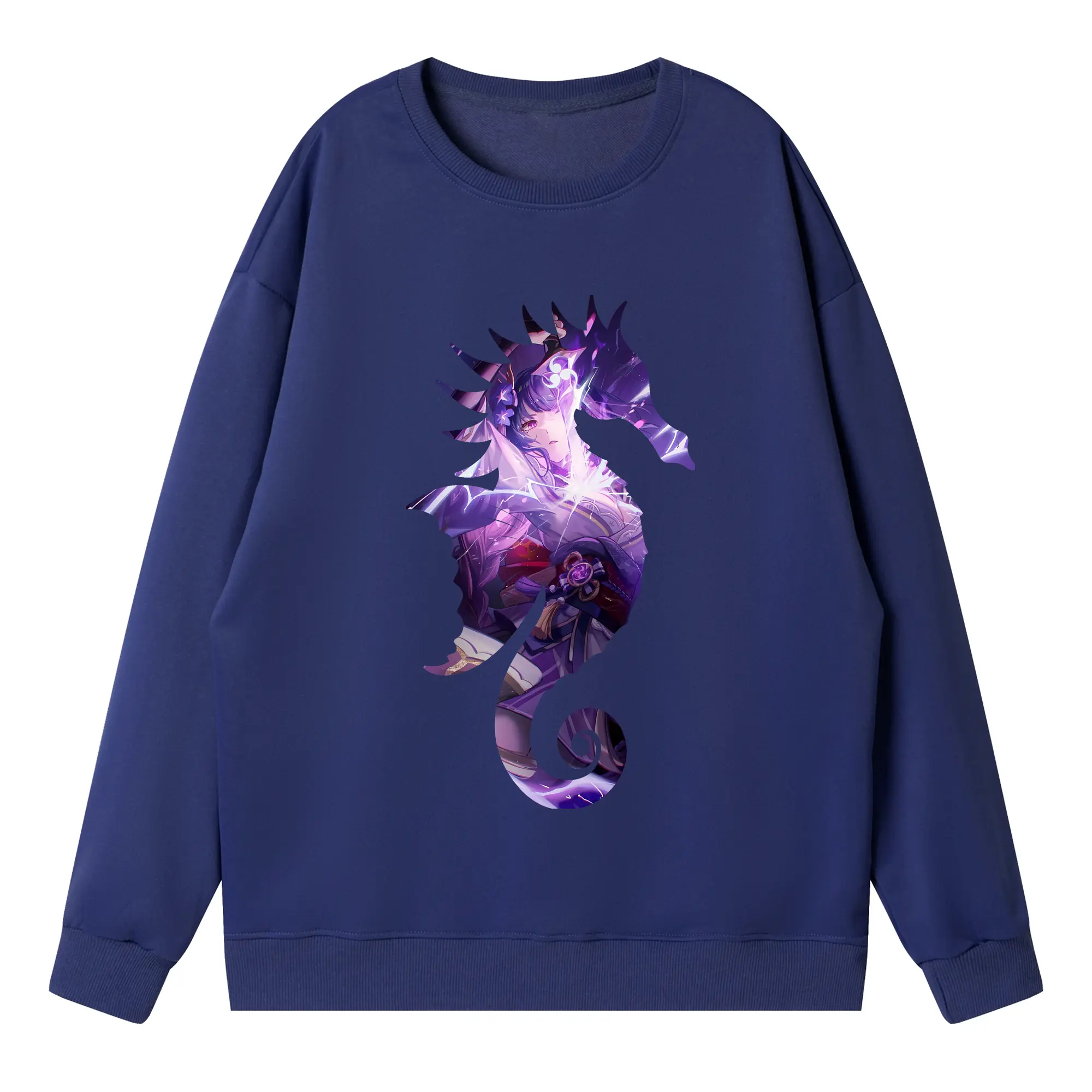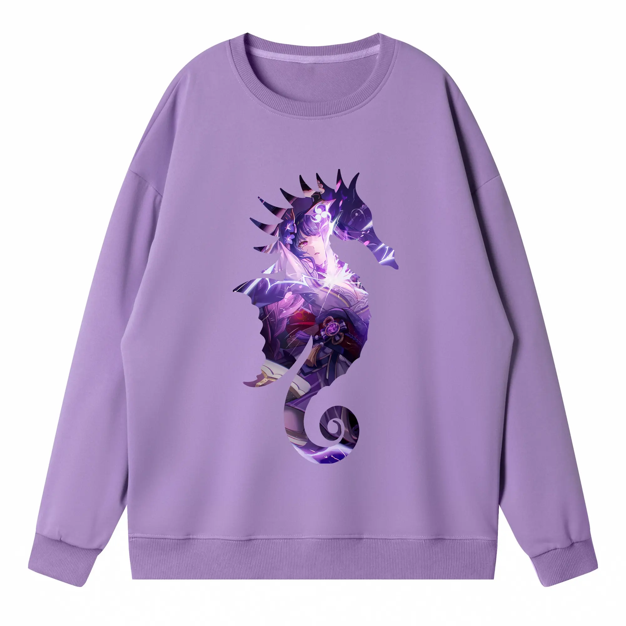 原 神 グッズ 雷電将軍 - 高品質 クルーネック スウェット ・ コットン59% ポリエステル41% ・ ユニセックス 長袖 トレーナー ・ カジュアル デイリー スポーツ 散歩用