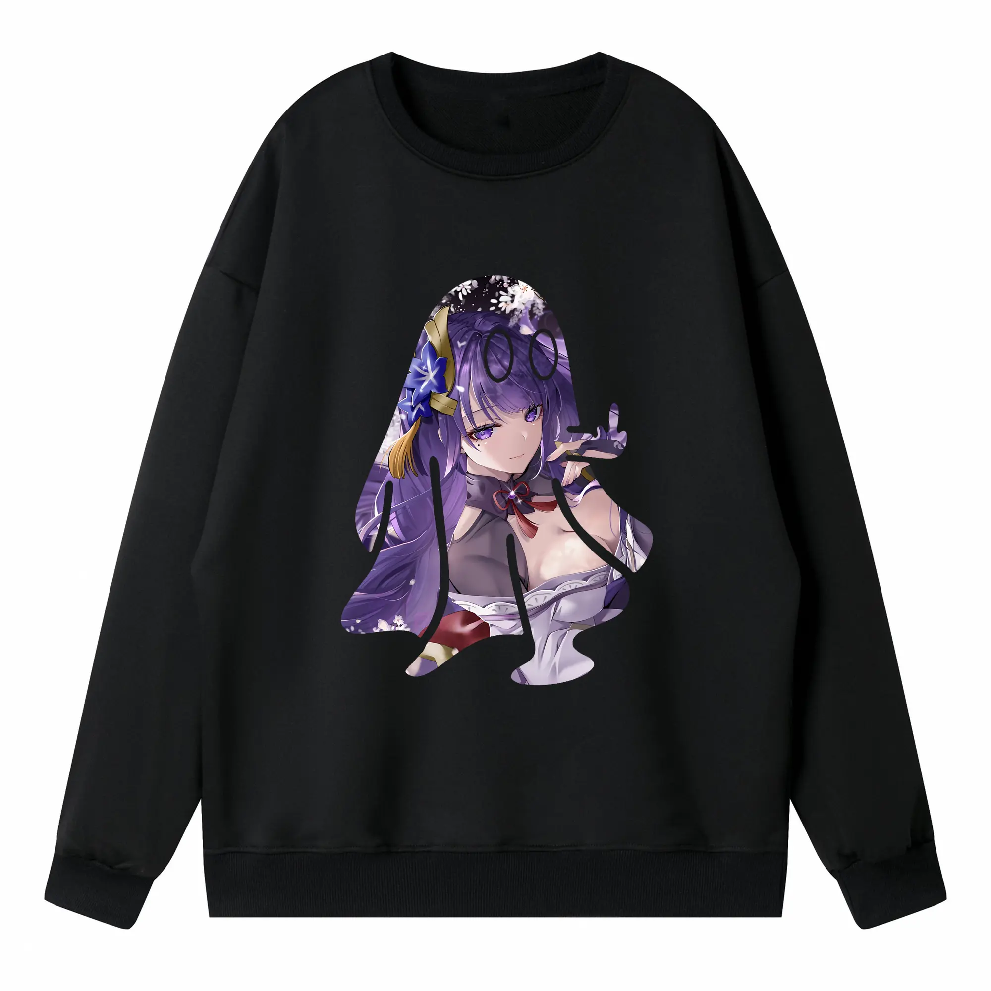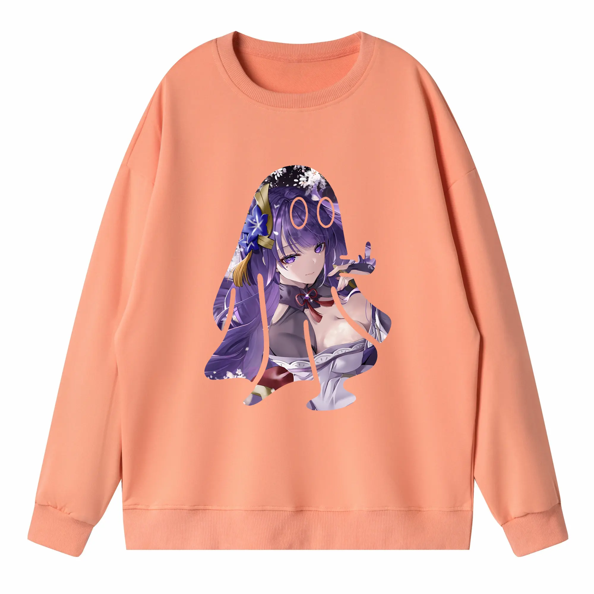 原 神 グッズ 雷電将軍 - 高品質 クルーネック スウェット ・ コットン59% ポリエステル41% ・ ユニセックス 長袖 トレーナー ・ カジュアル デイリー スポーツ 散歩用