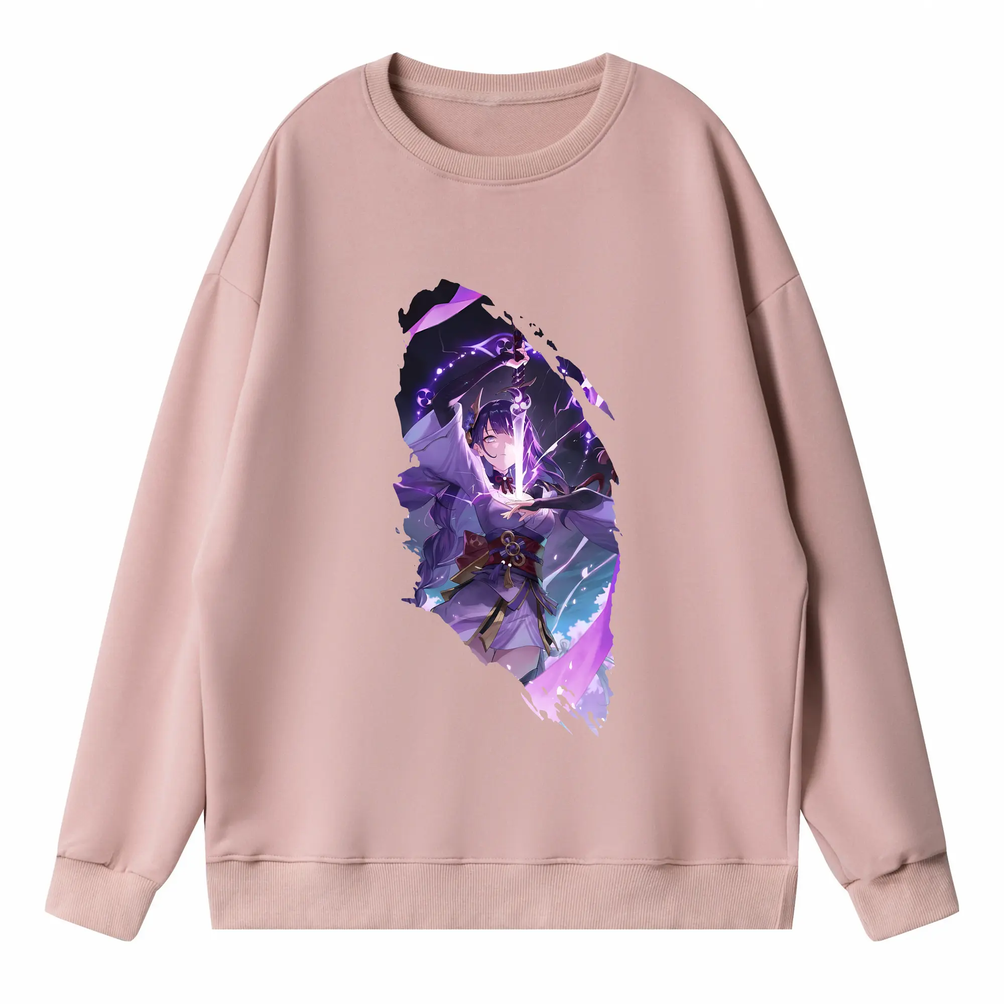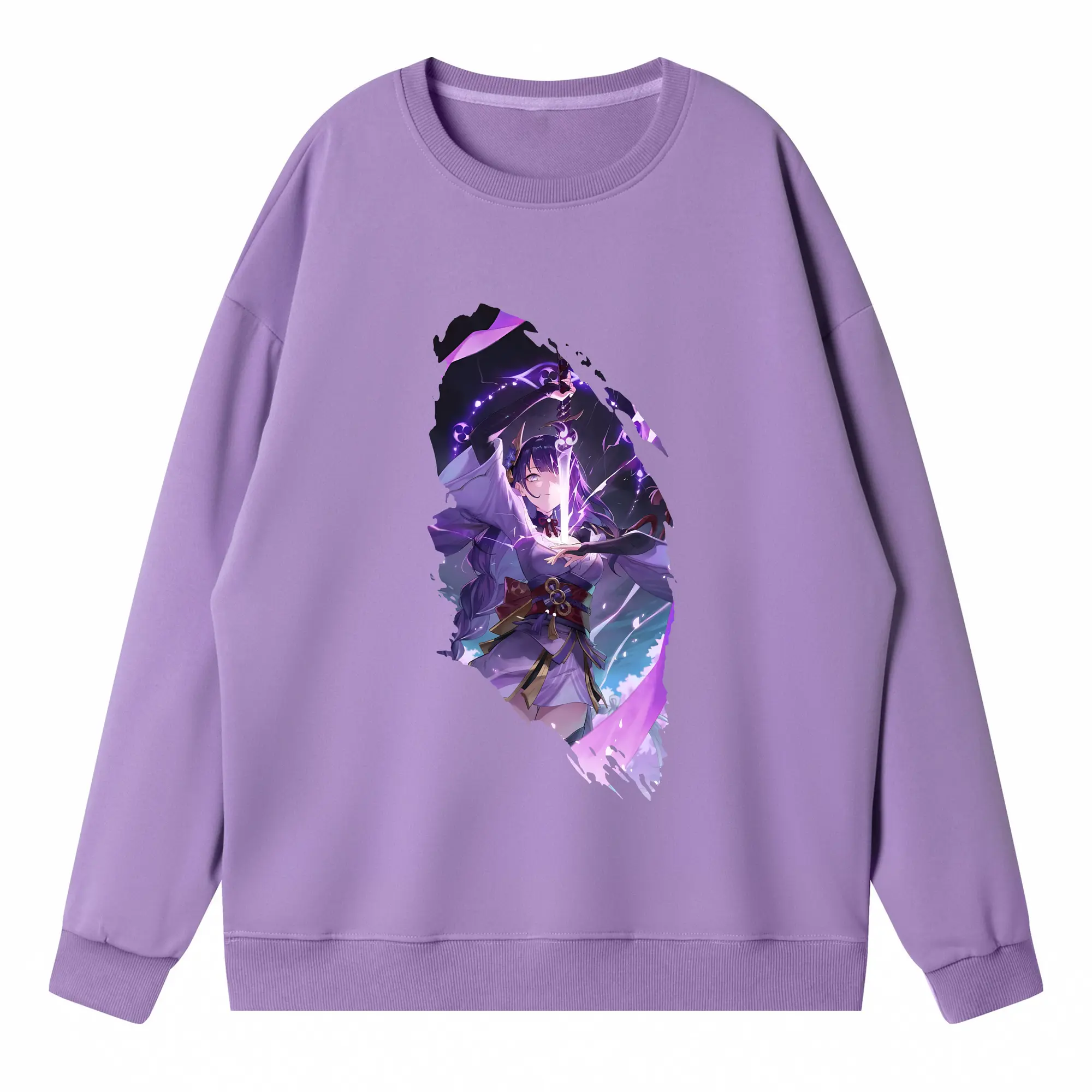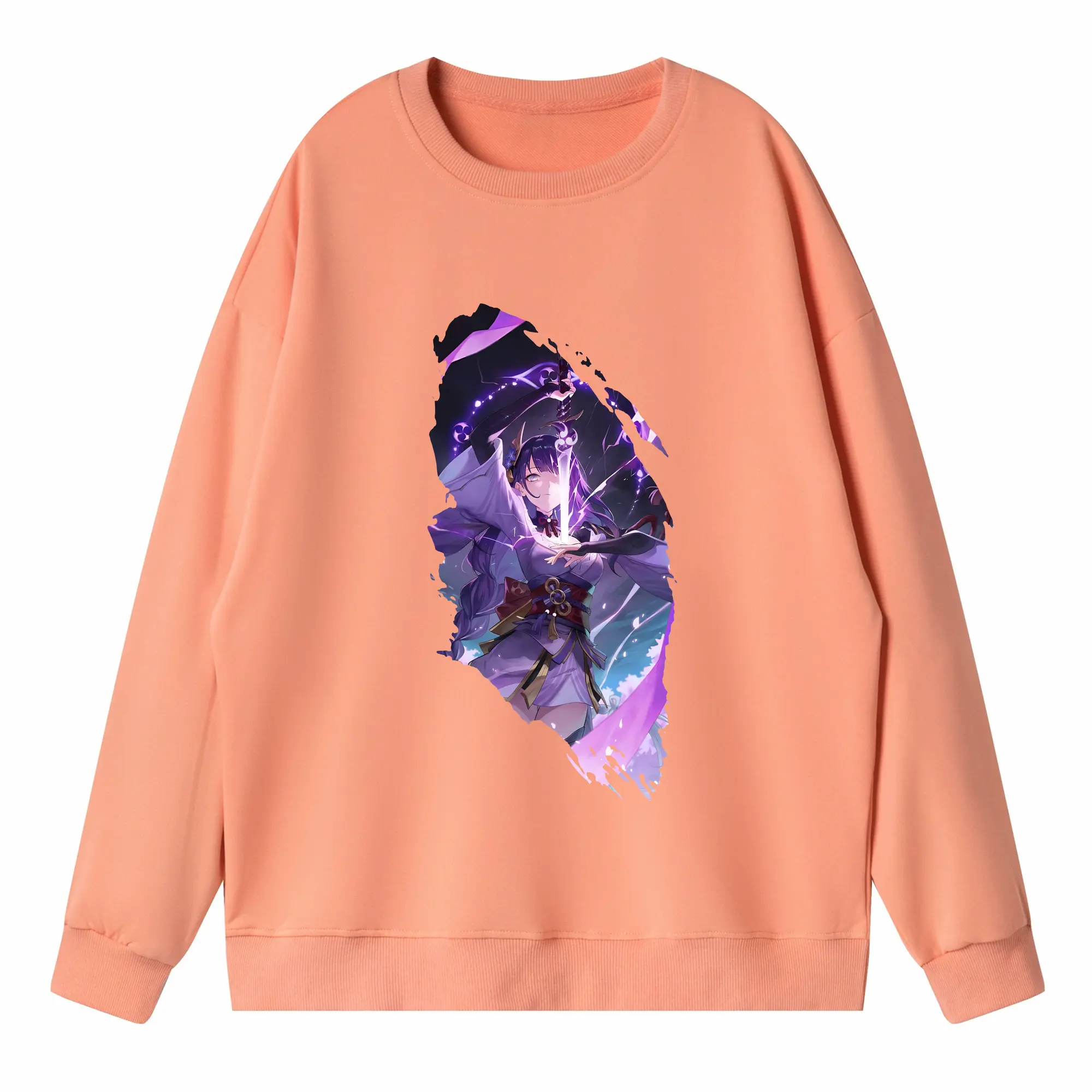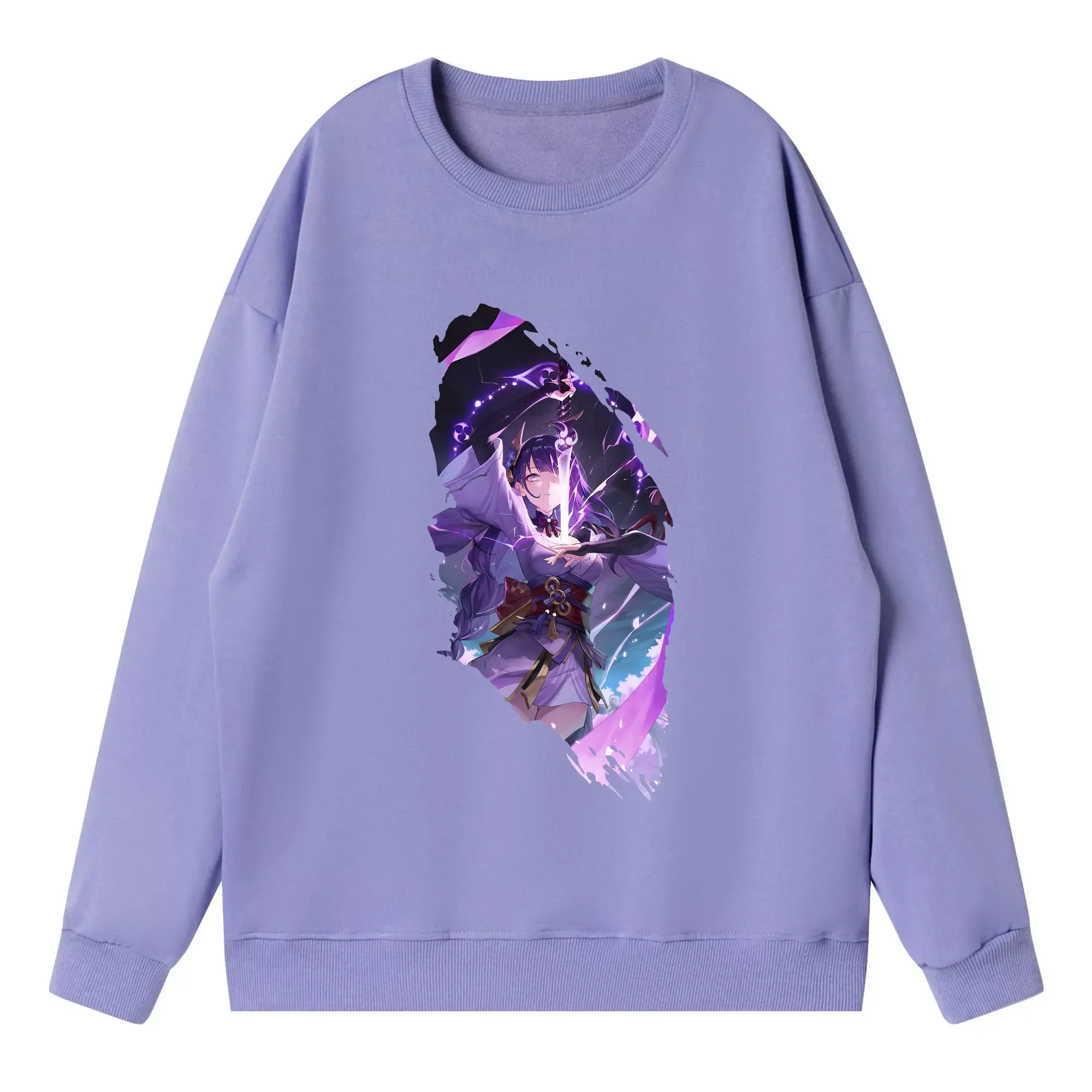 原 神 グッズ 雷電将軍 - 高品質 クルーネック スウェット ・ コットン59% ポリエステル41% ・ ユニセックス 長袖 トレーナー ・ カジュアル デイリー スポーツ 散歩用