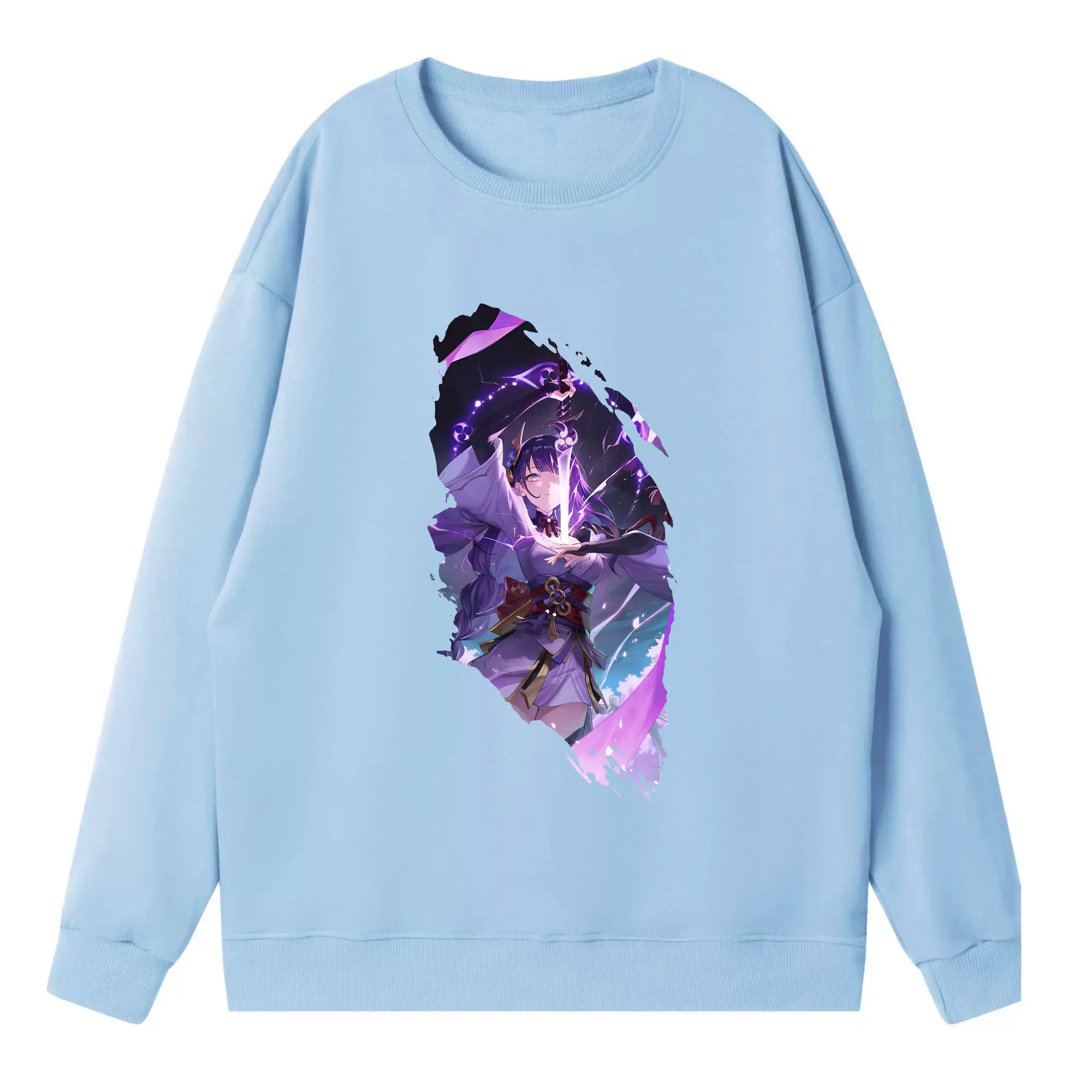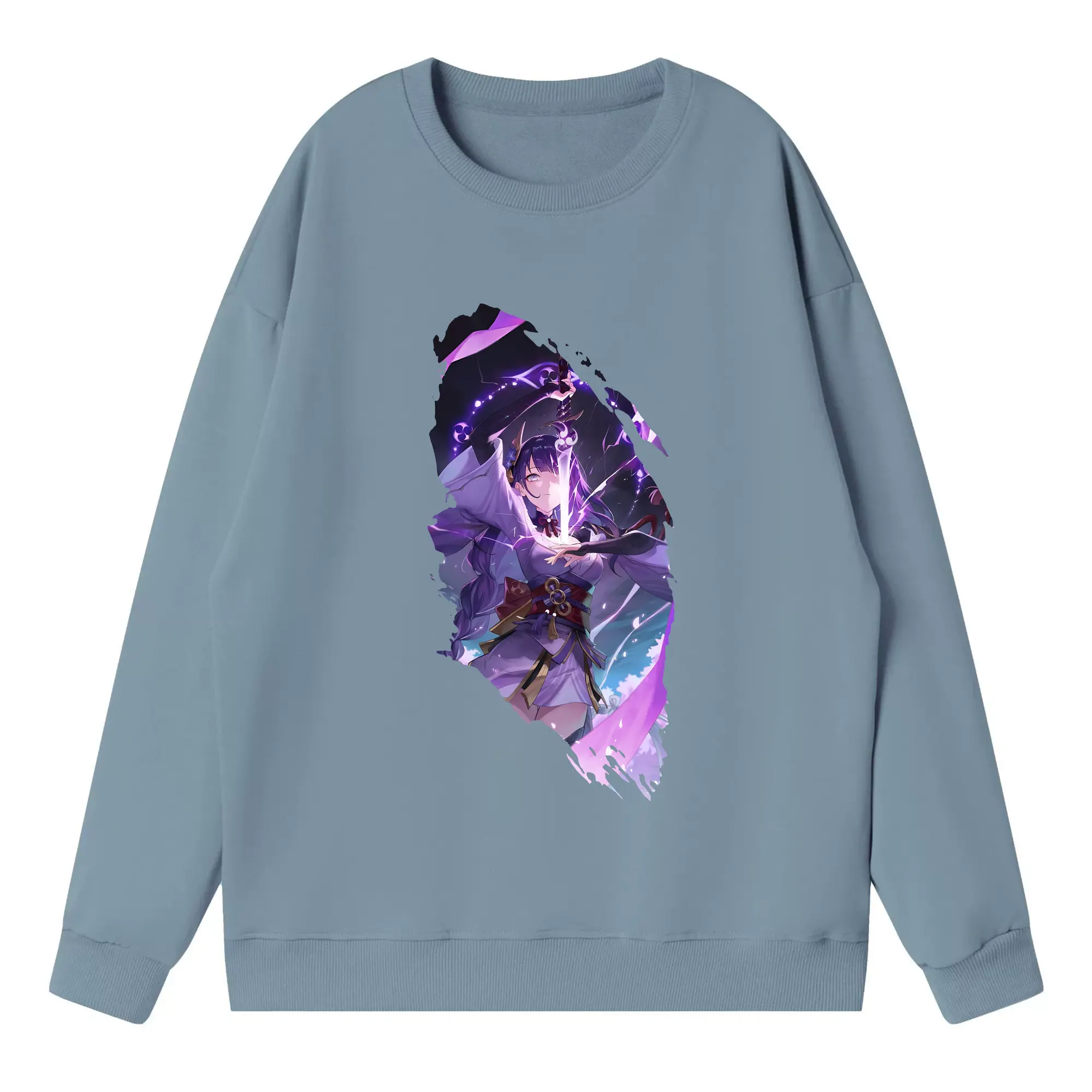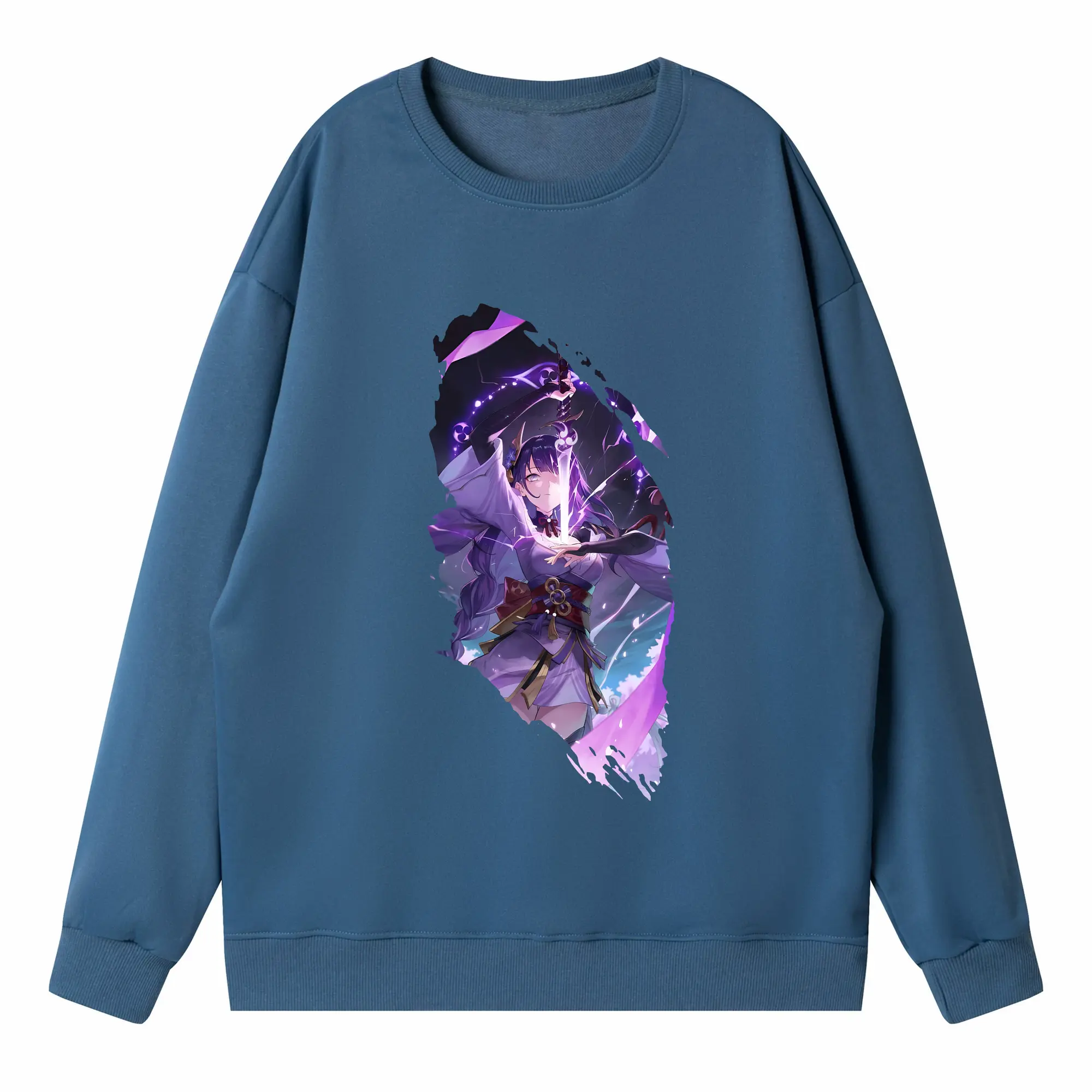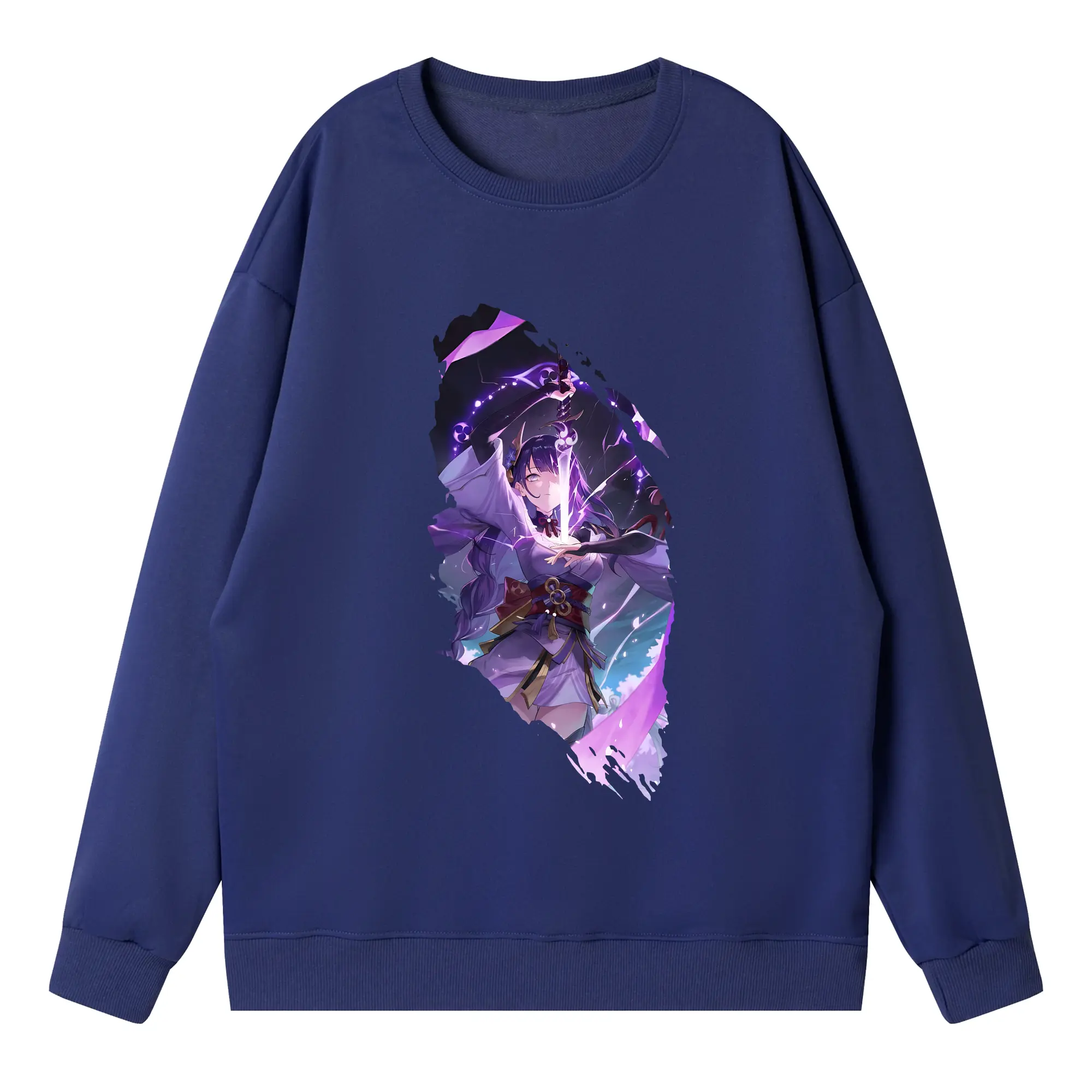 原 神 グッズ 雷電将軍 - 高品質 クルーネック スウェット ・ コットン59% ポリエステル41% ・ ユニセックス 長袖 トレーナー ・ カジュアル デイリー スポーツ 散歩用