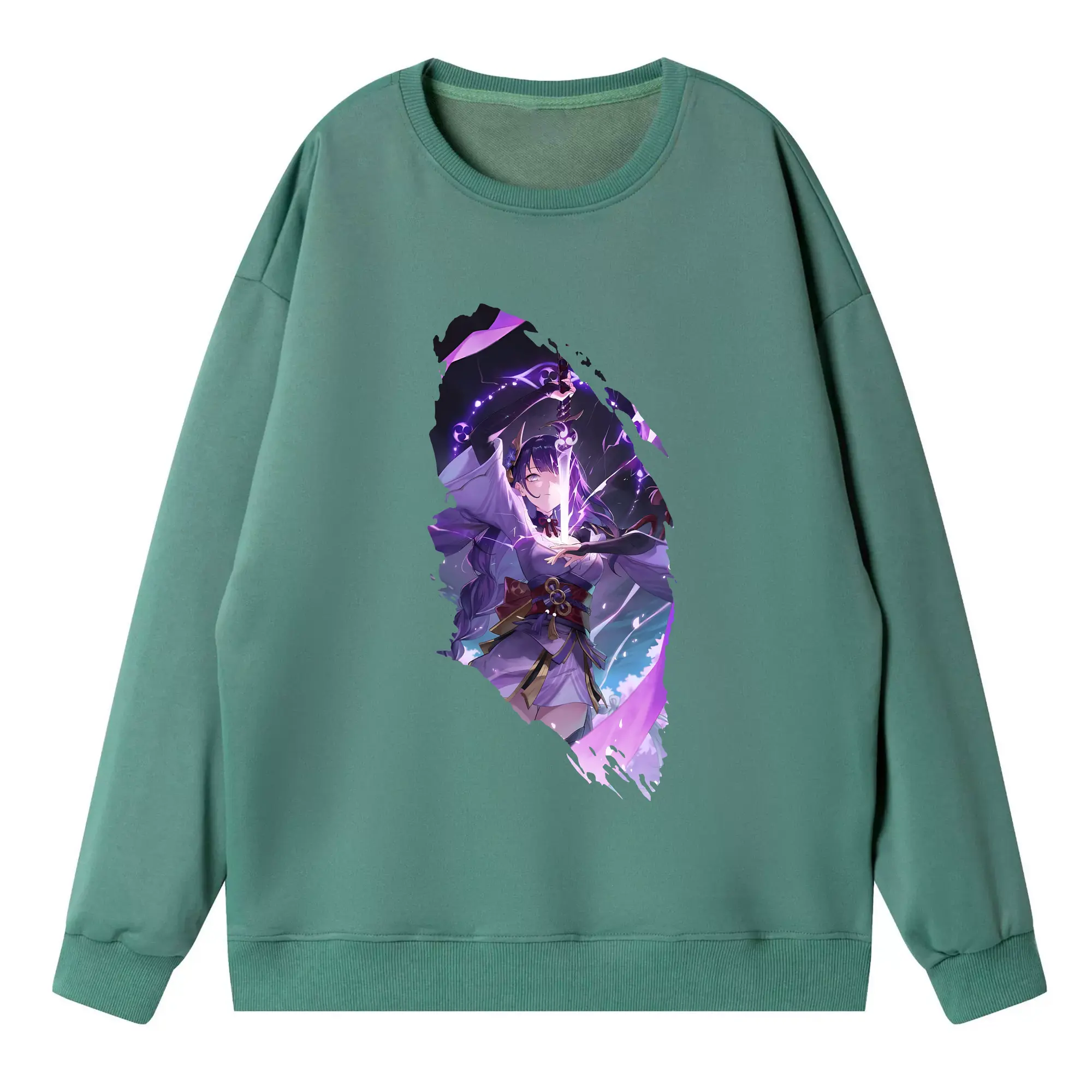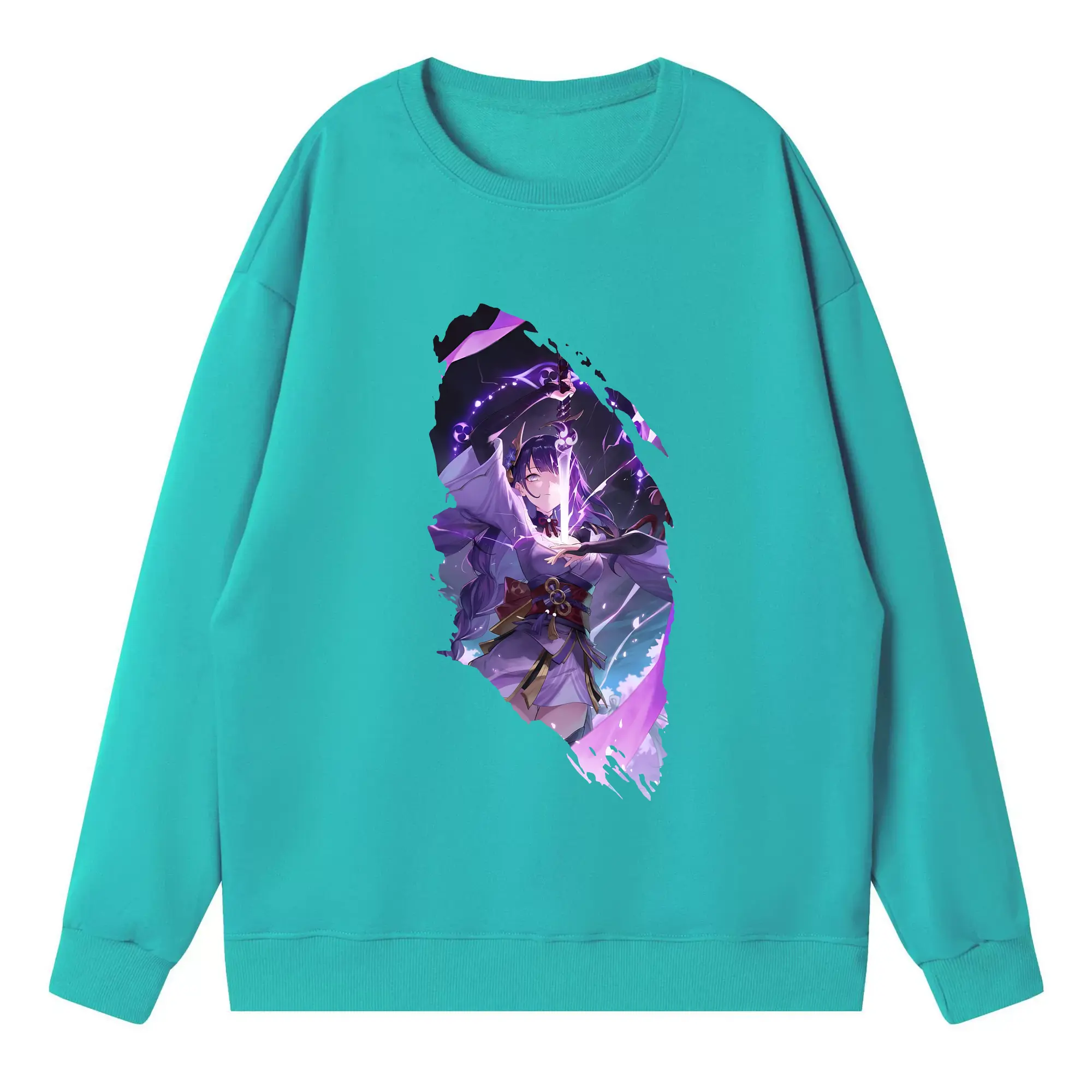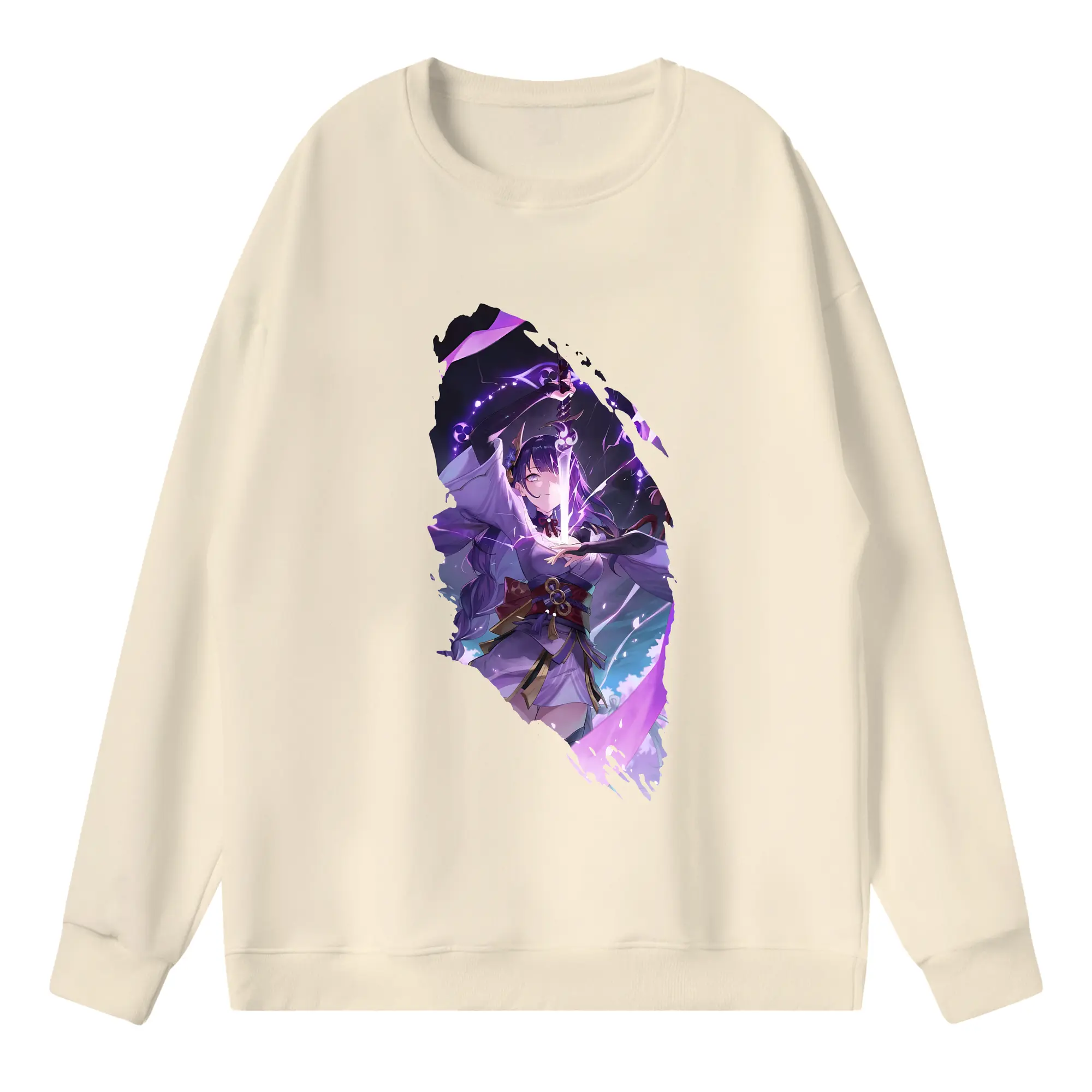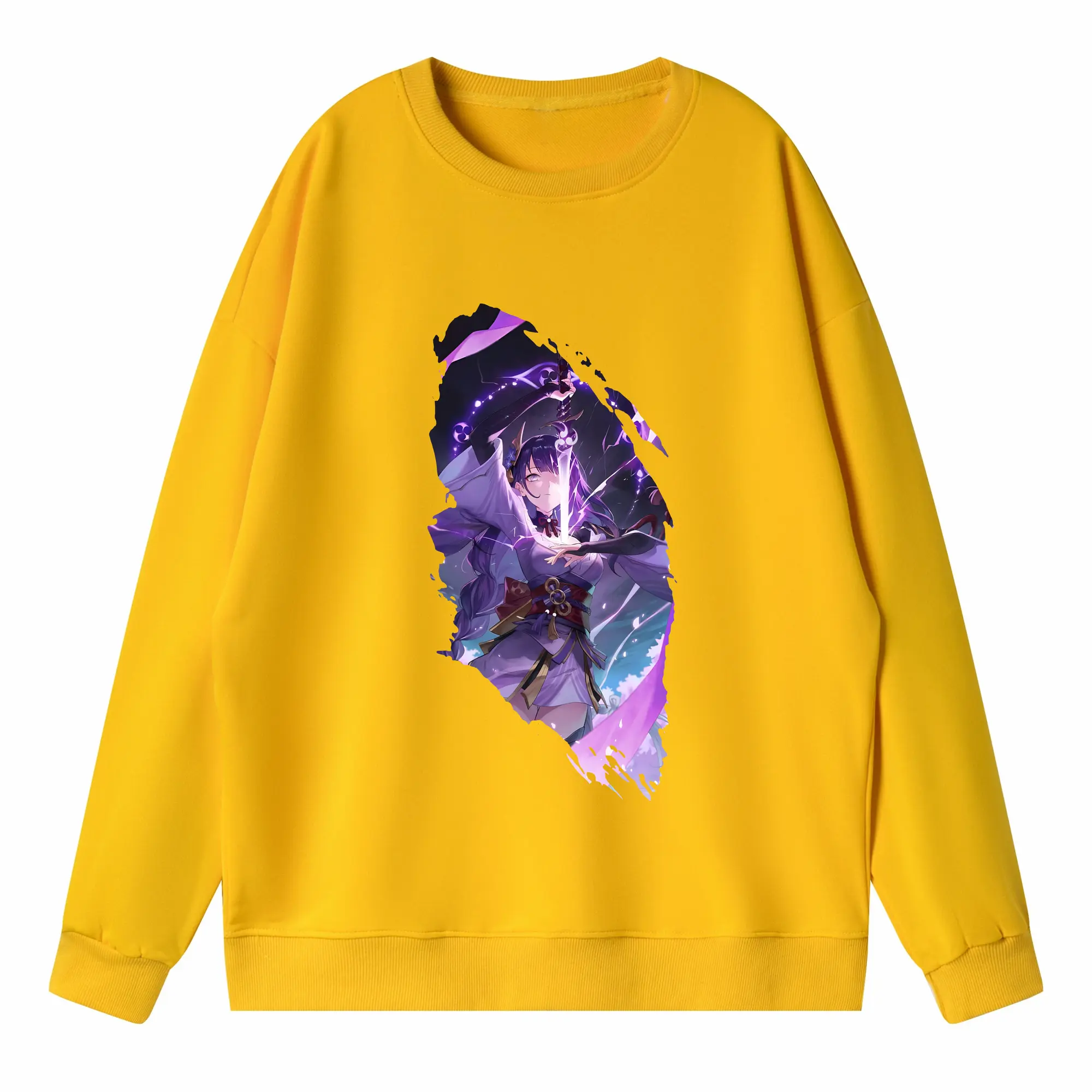 原 神 グッズ 雷電将軍 - 高品質 クルーネック スウェット ・ コットン59% ポリエステル41% ・ ユニセックス 長袖 トレーナー ・ カジュアル デイリー スポーツ 散歩用