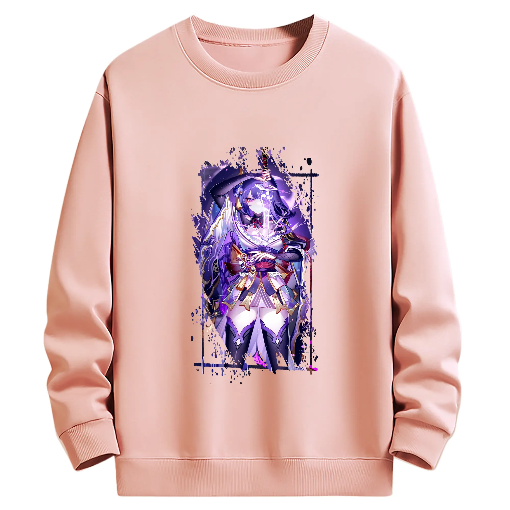 原 神 グッズ 雷電将軍 - 薄手 クルーネック スウェット 裏毛260g · ポリエステル 春秋向け カジュアル 男女兼用 · トレーナー デイリー スポーツ 散歩に最適