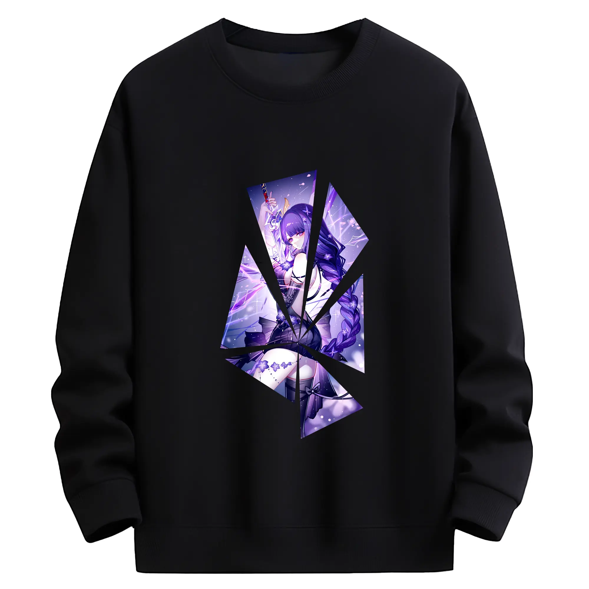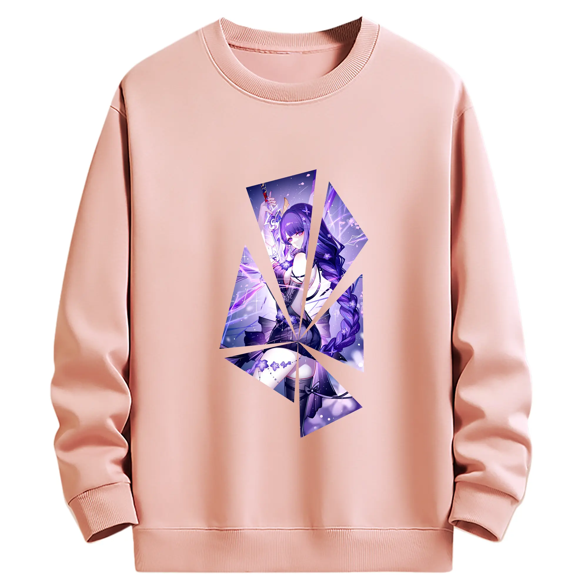 原 神 グッズ 雷電将軍 - 薄手 クルーネック スウェット 裏毛260g · ポリエステル 春秋向け カジュアル 男女兼用 · トレーナー デイリー スポーツ 散歩に最適