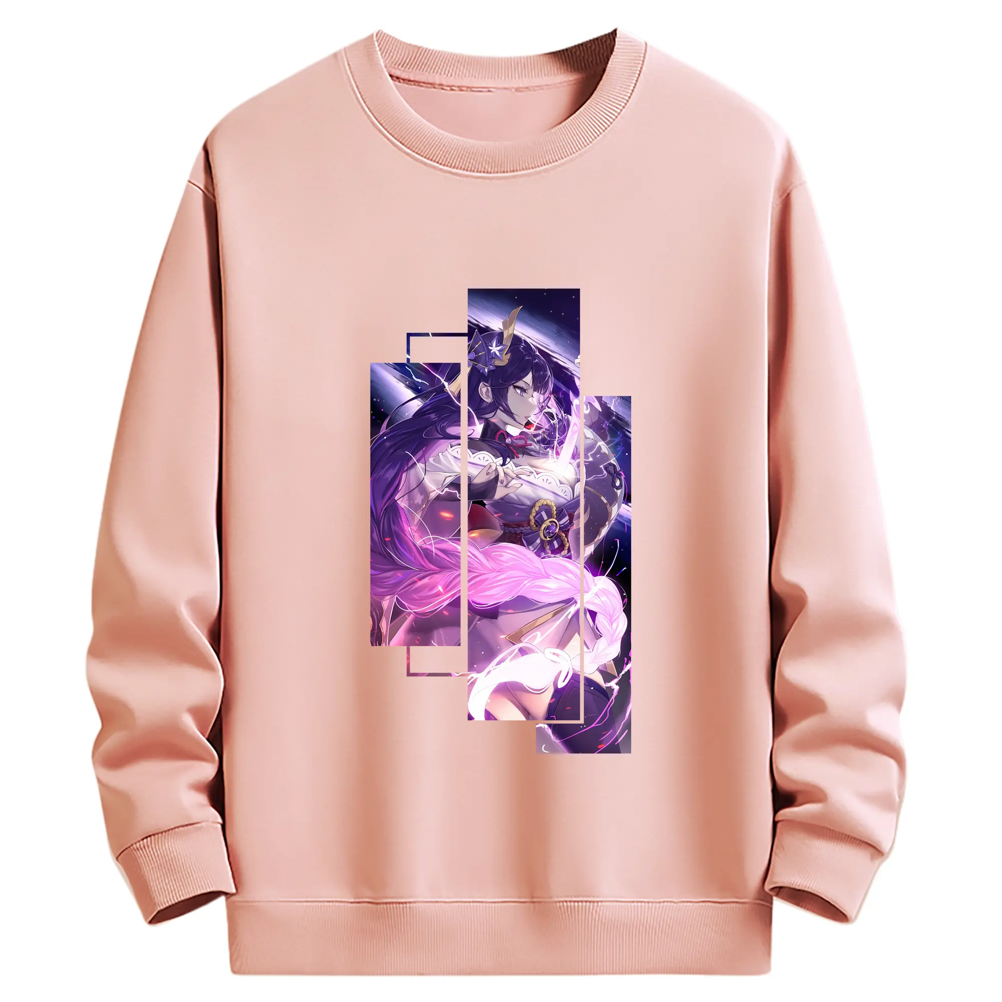 原 神 グッズ 雷電将軍 - 薄手 クルーネック スウェット 裏毛260g · ポリエステル 春秋向け カジュアル 男女兼用 · トレーナー デイリー スポーツ 散歩に最適