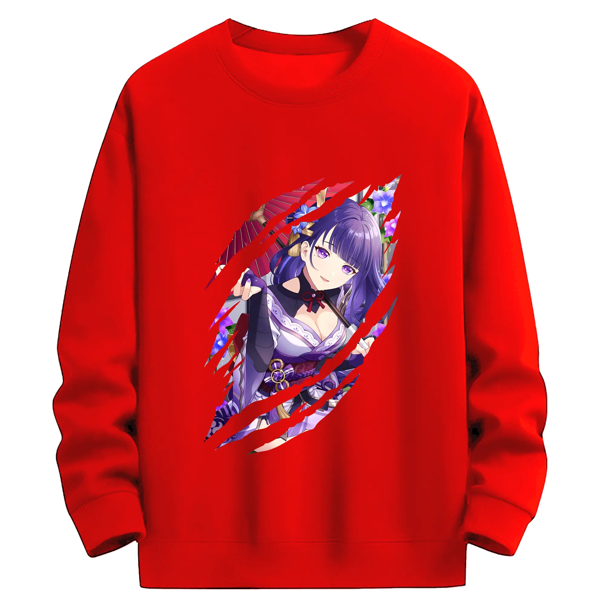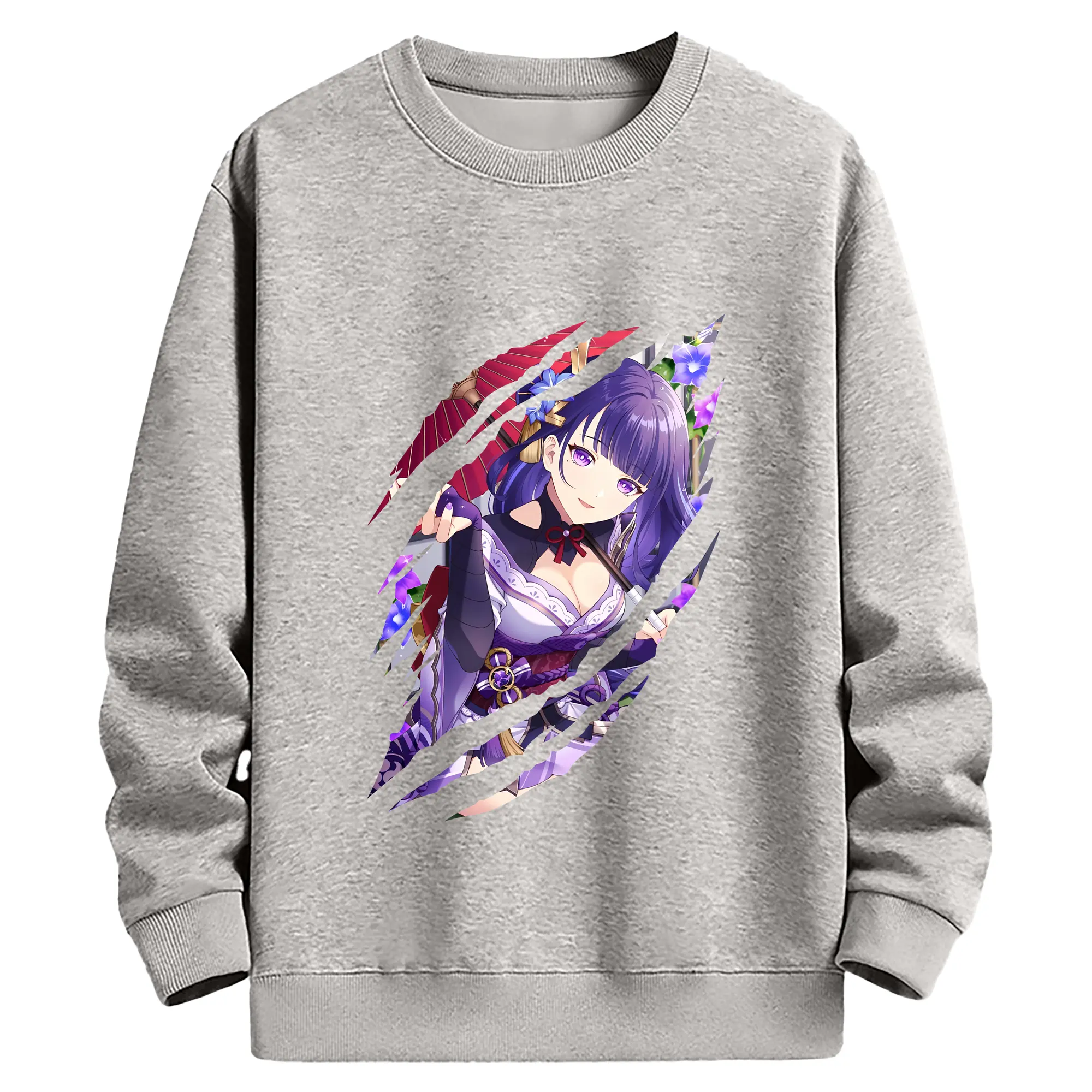 原 神 グッズ 雷電将軍 - 高品質 クルーネック スウェット ・ コットン59% ポリエステル41% ・ ユニセックス 長袖 トレーナー ・ カジュアル デイリー スポーツ 散歩用