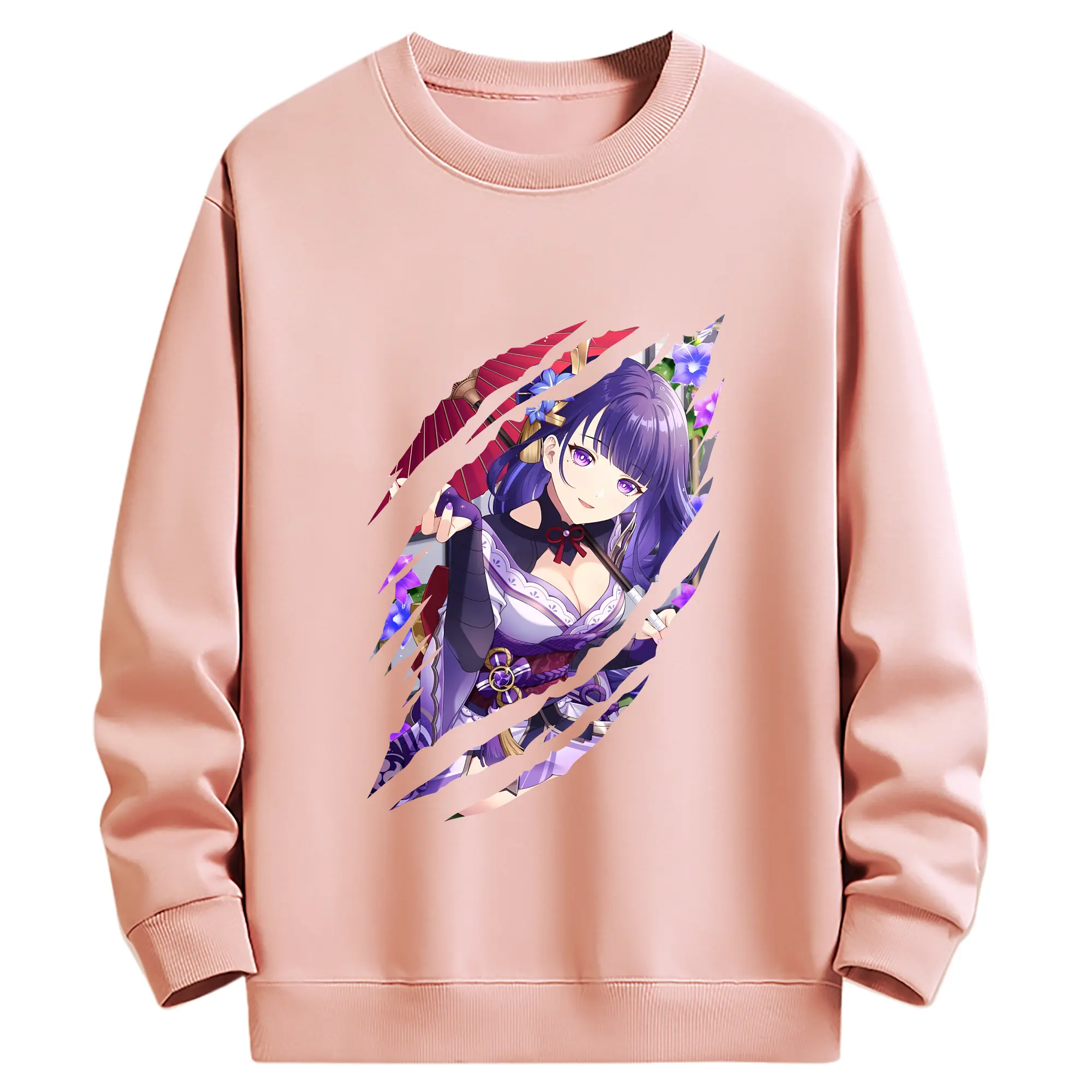 原 神 グッズ 雷電将軍 - 薄手 クルーネック スウェット 裏毛260g · ポリエステル 春秋向け カジュアル 男女兼用 · トレーナー デイリー スポーツ 散歩に最適