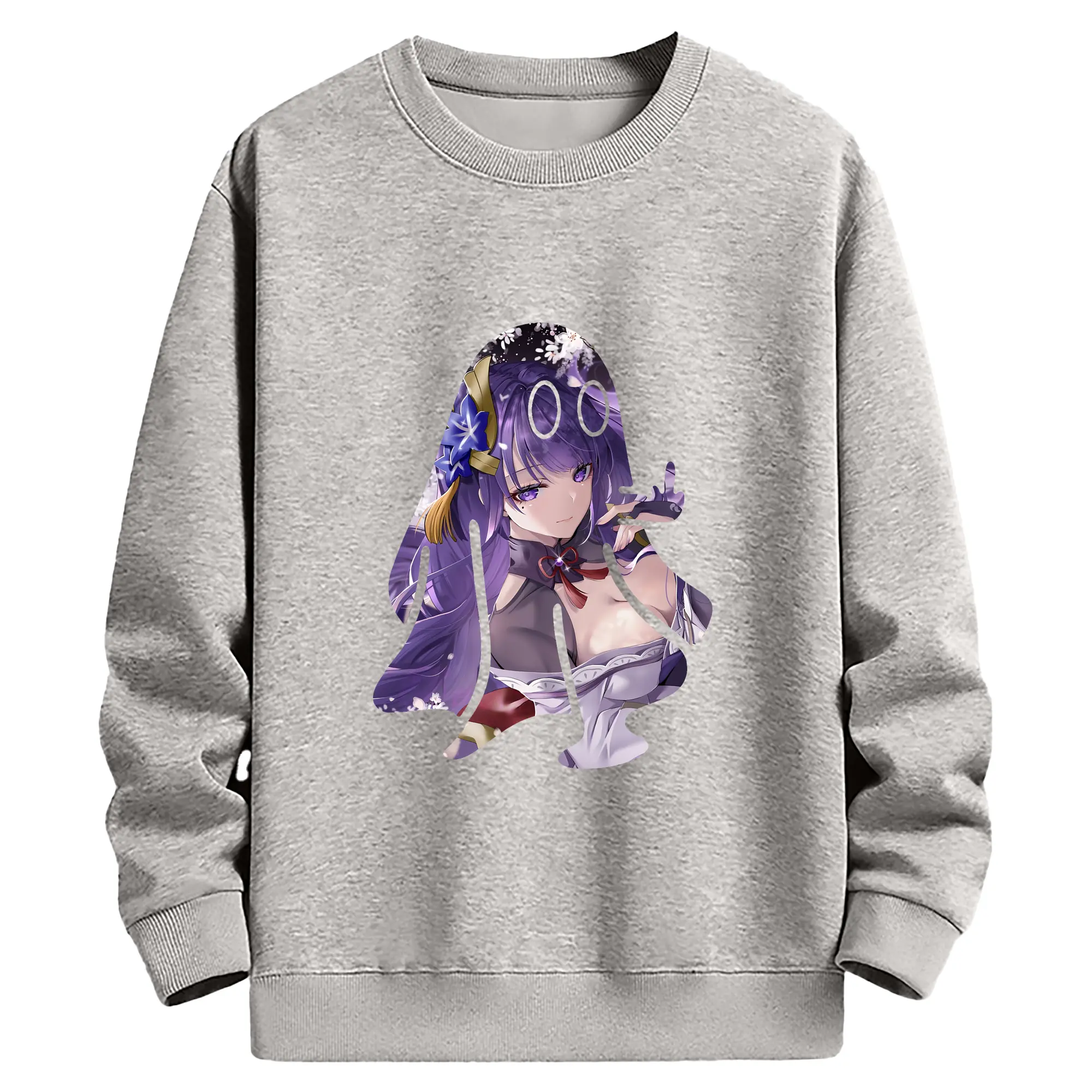 原 神 グッズ 雷電将軍 - 高品質 クルーネック スウェット ・ コットン59% ポリエステル41% ・ ユニセックス 長袖 トレーナー ・ カジュアル デイリー スポーツ 散歩用