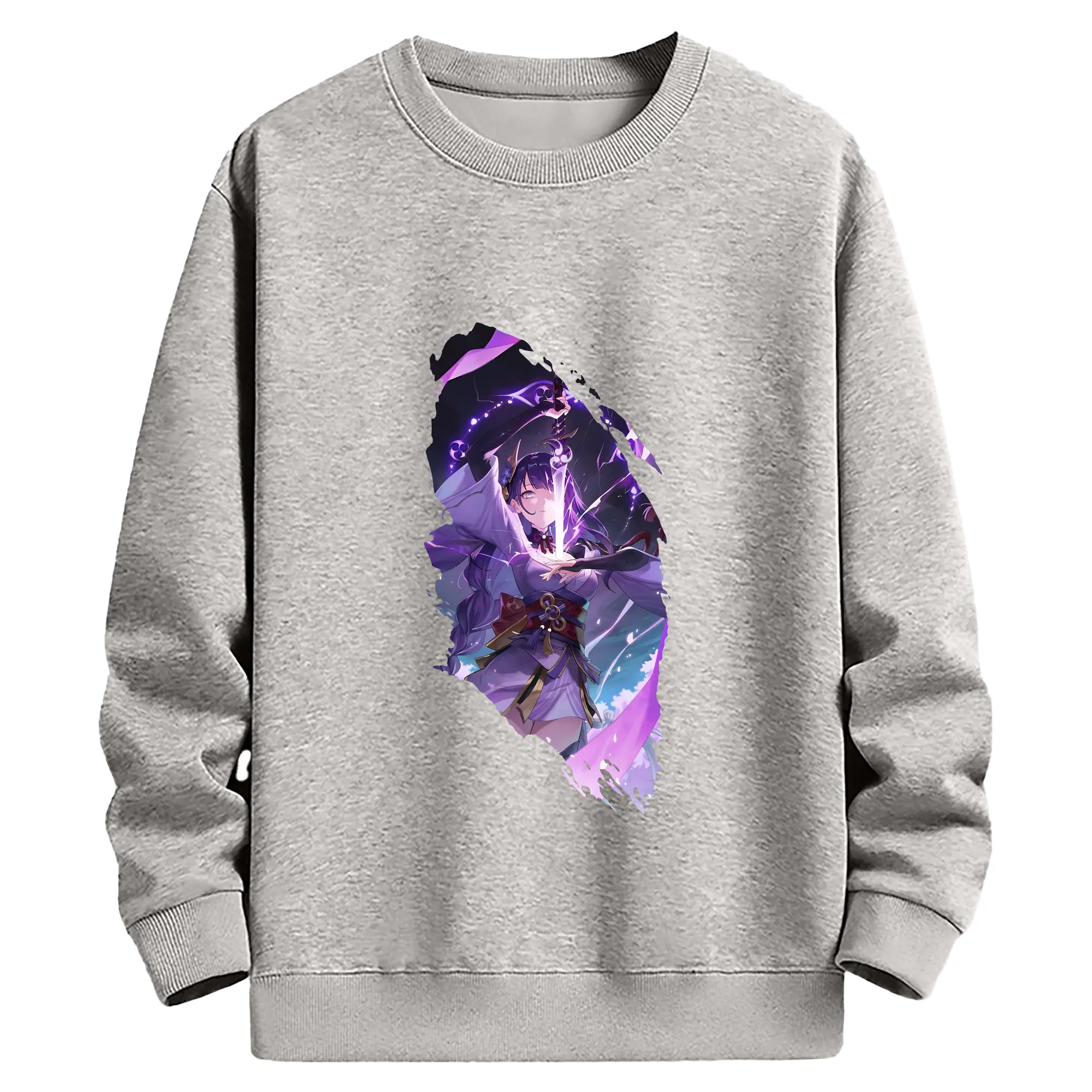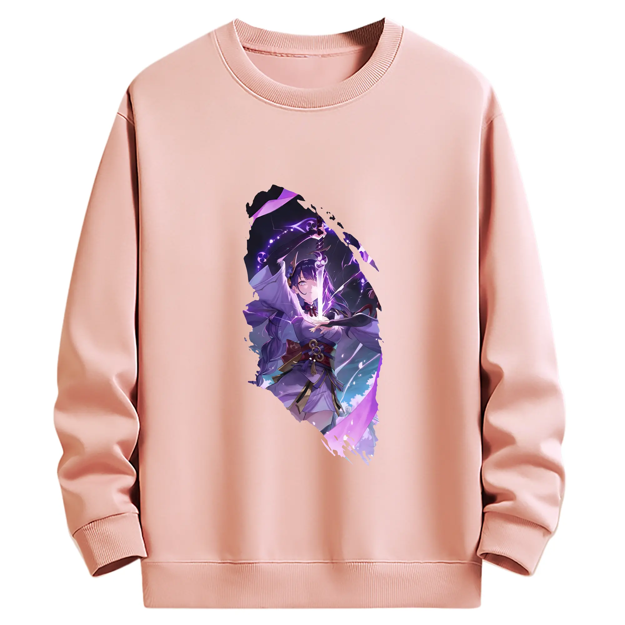 原 神 グッズ 雷電将軍 - 薄手 クルーネック スウェット 裏毛260g · ポリエステル 春秋向け カジュアル 男女兼用 · トレーナー デイリー スポーツ 散歩に最適
