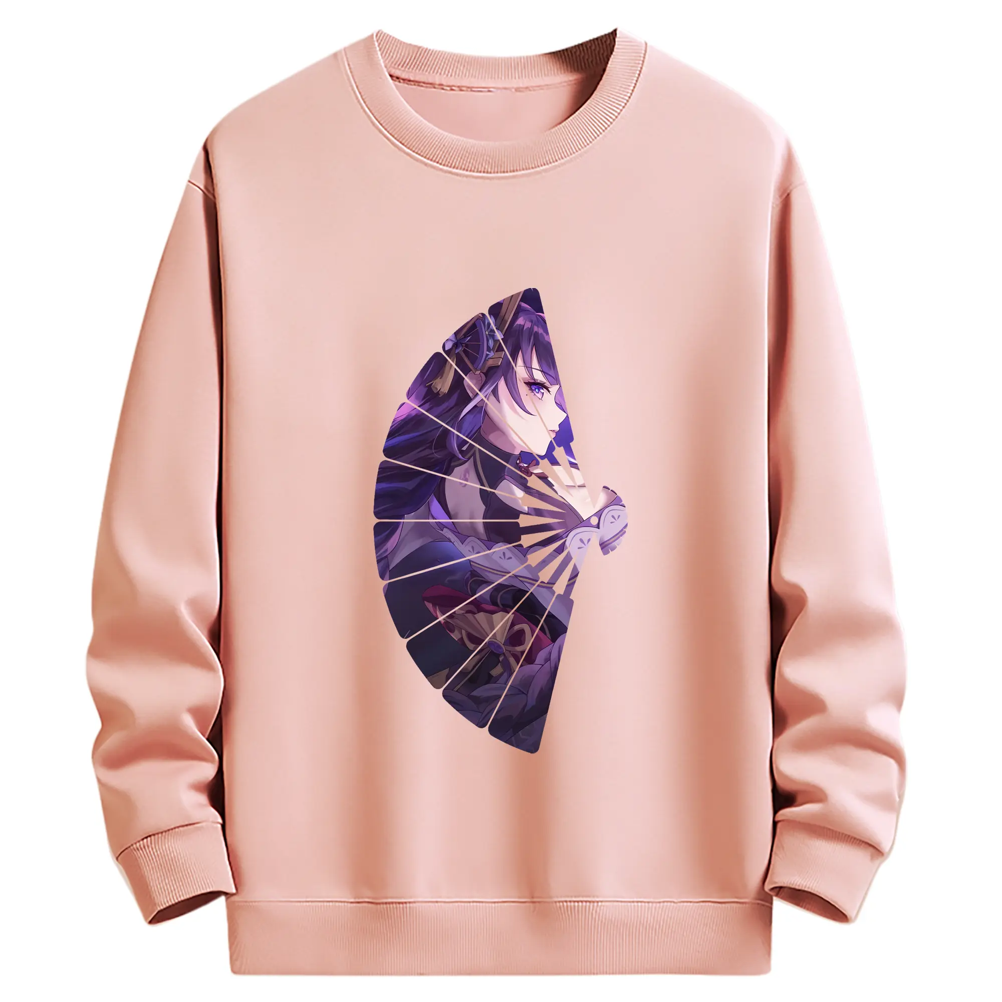 原 神 グッズ 雷電将軍 - 薄手 クルーネック スウェット 裏毛260g · ポリエステル 春秋向け カジュアル 男女兼用 · トレーナー デイリー スポーツ 散歩に最適