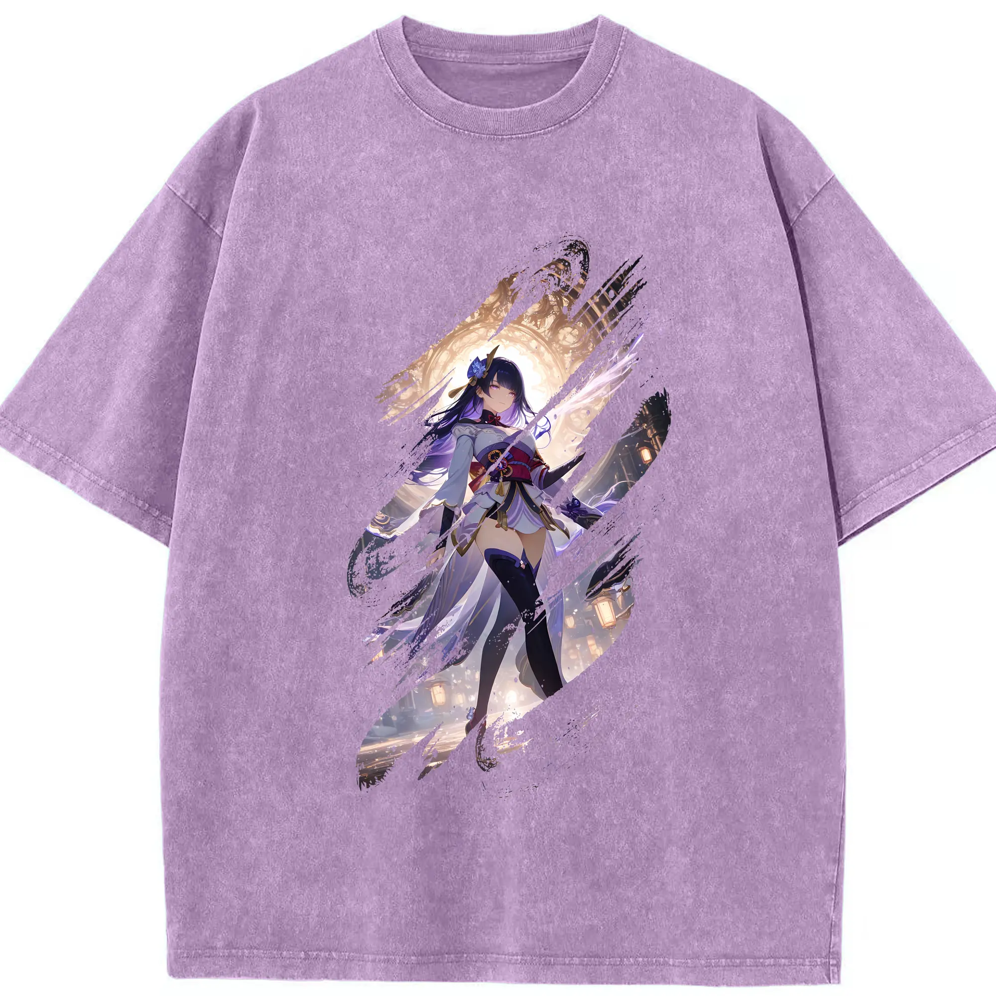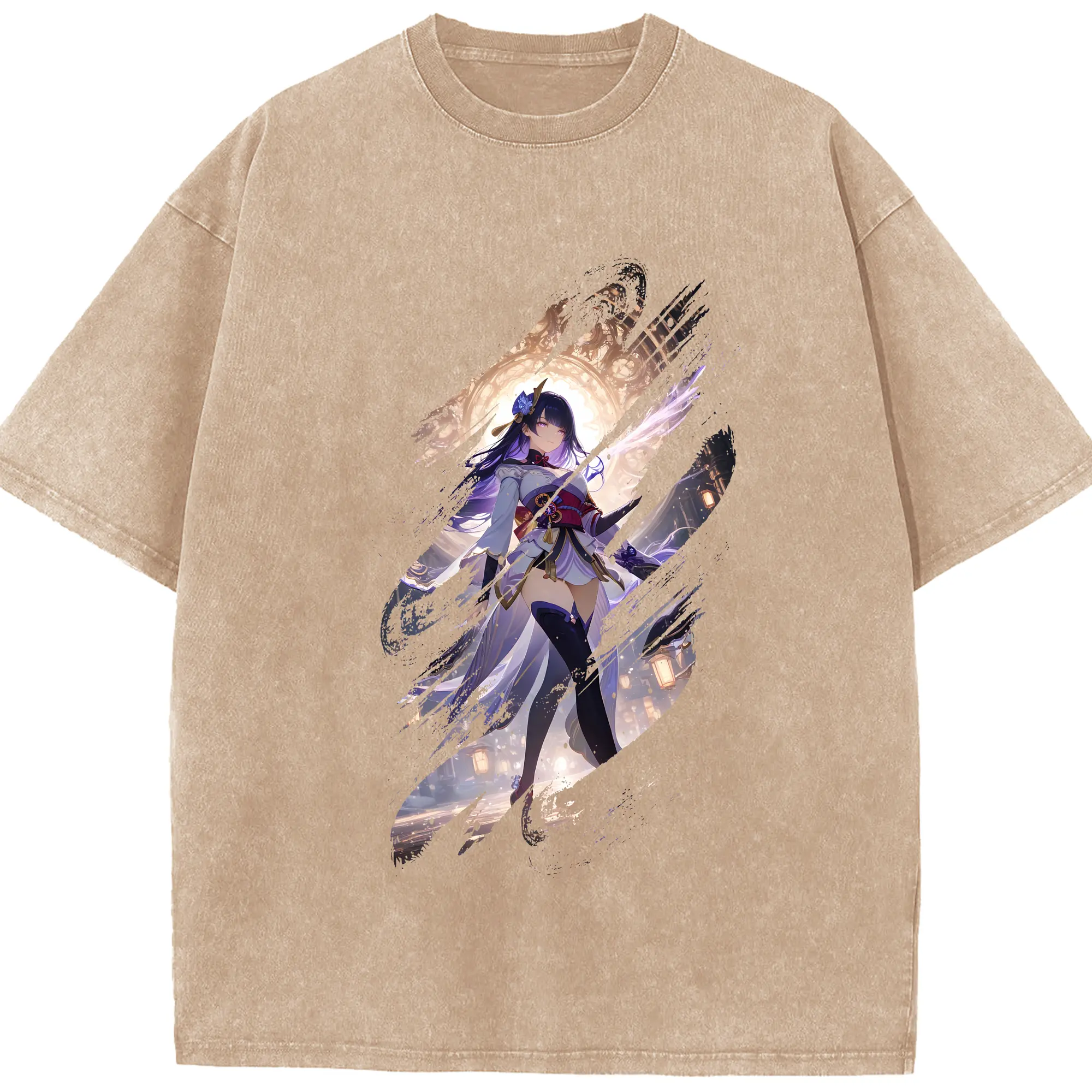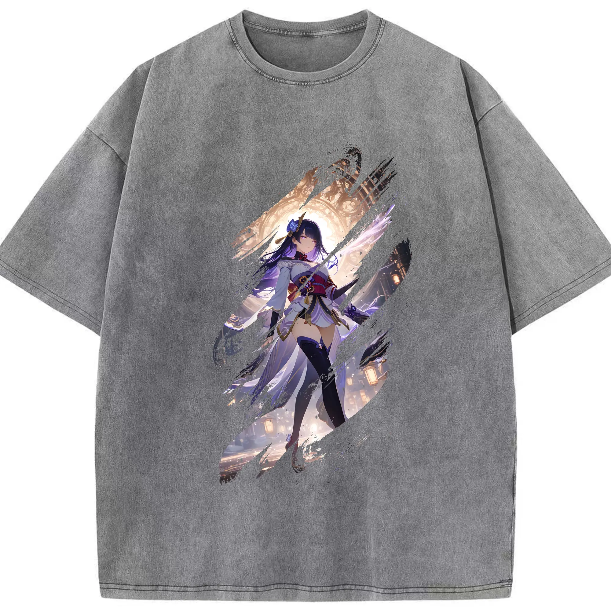 原 神 グッズ 雷電将軍 - 綿100% ヴィンテージ風 半袖Tシャツ ・ 背面プリント ・ 柔らか肌触り ・ 通気性 快適 ・ スポーツ カジュアル 外出用