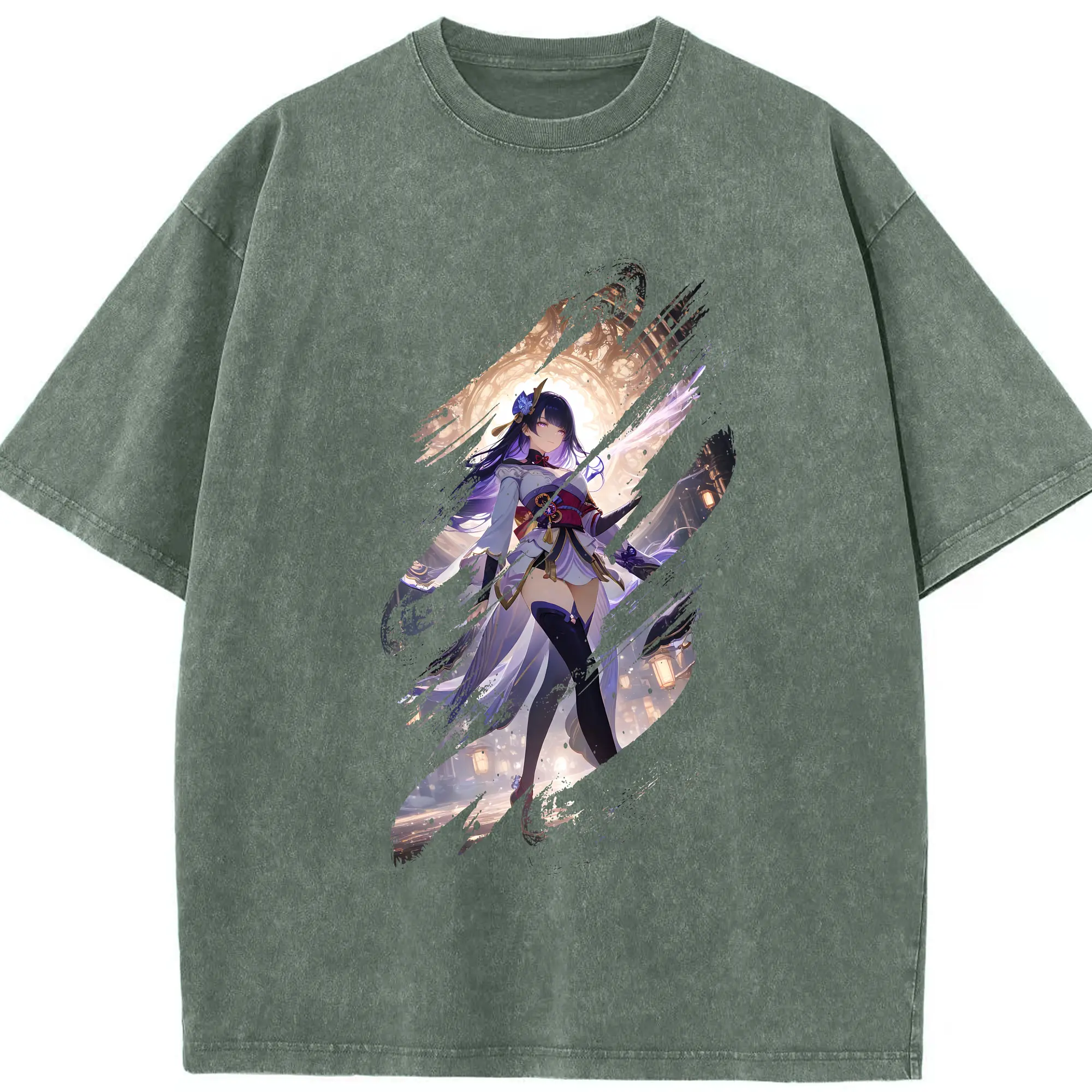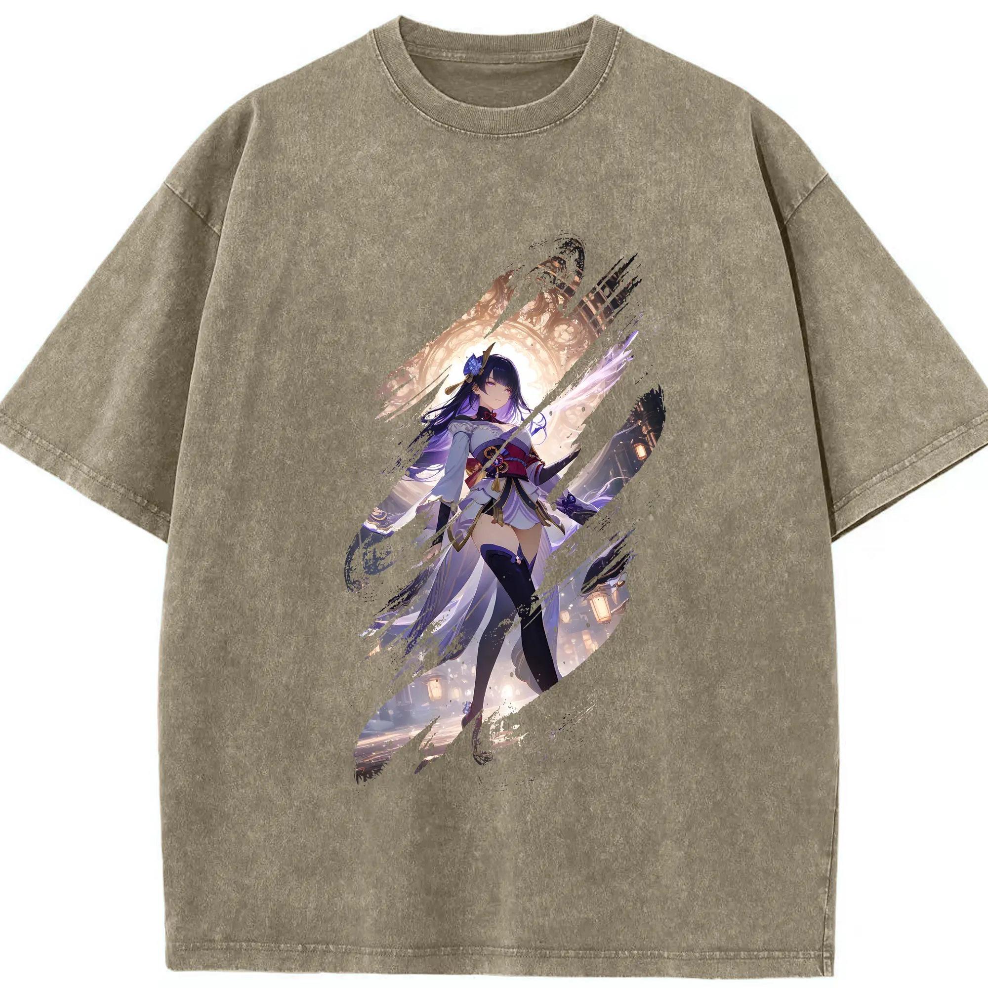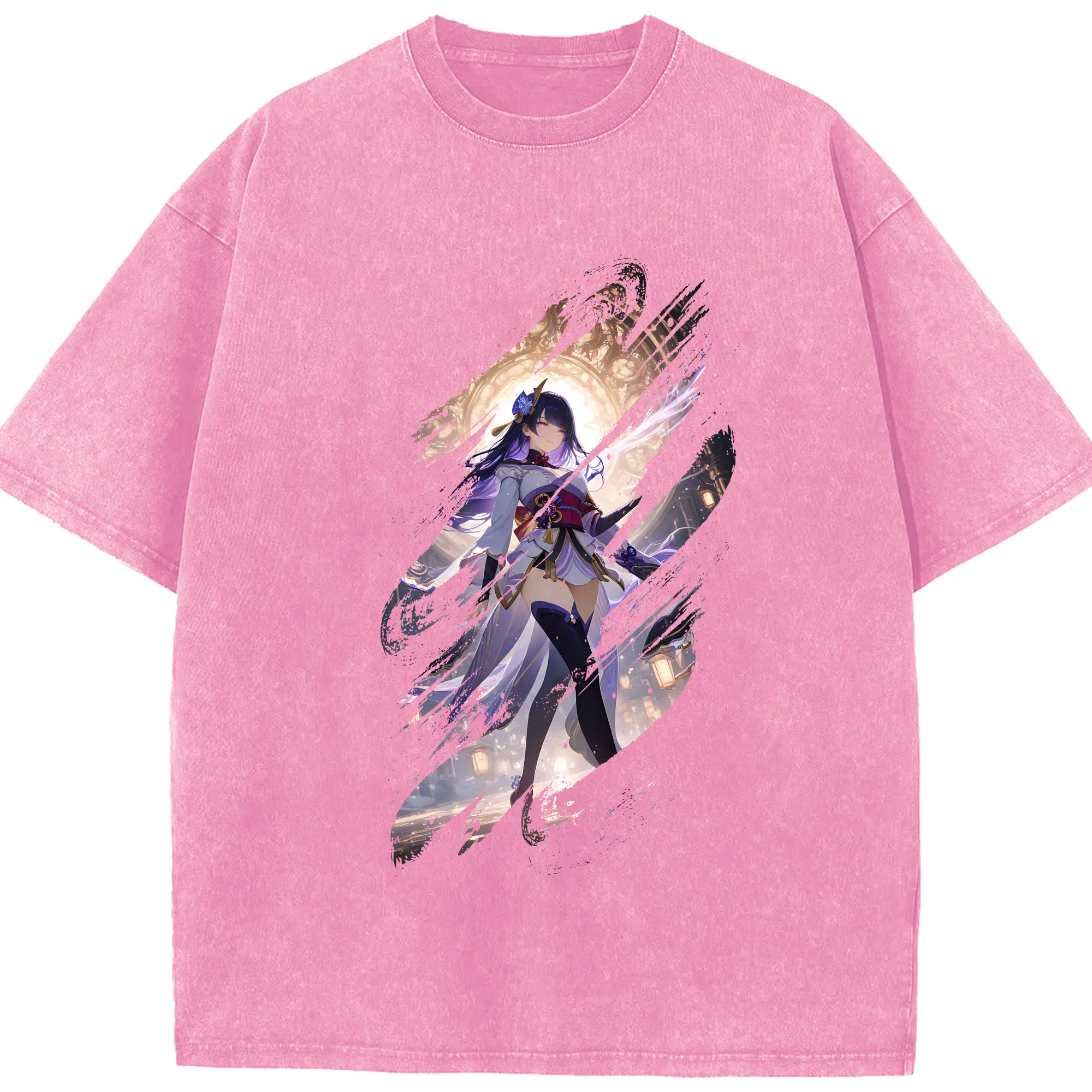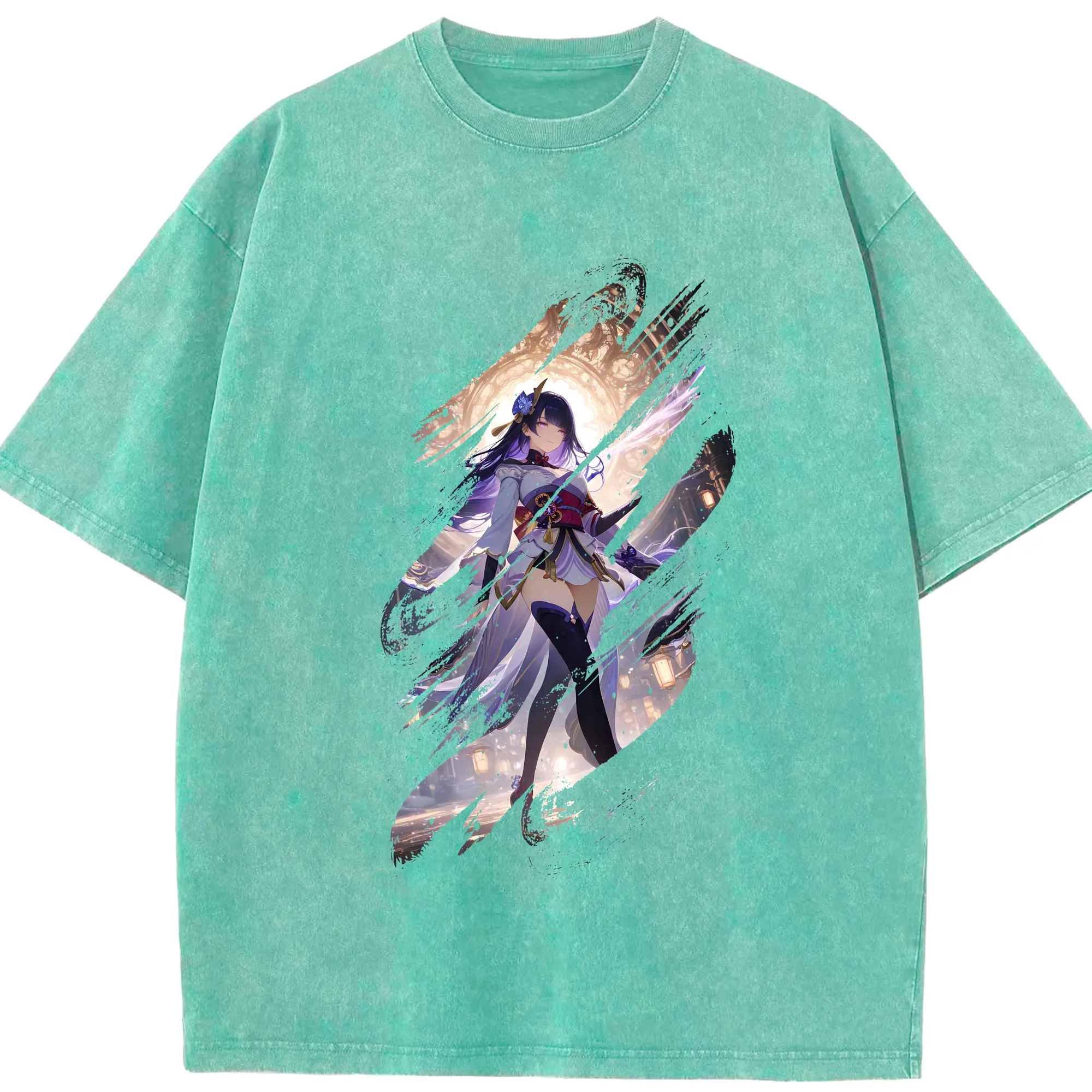 原 神 グッズ 雷電将軍 - 綿100% ヴィンテージ風 半袖Tシャツ ・ 背面プリント ・ 柔らか肌触り ・ 通気性 快適 ・ スポーツ カジュアル 外出用