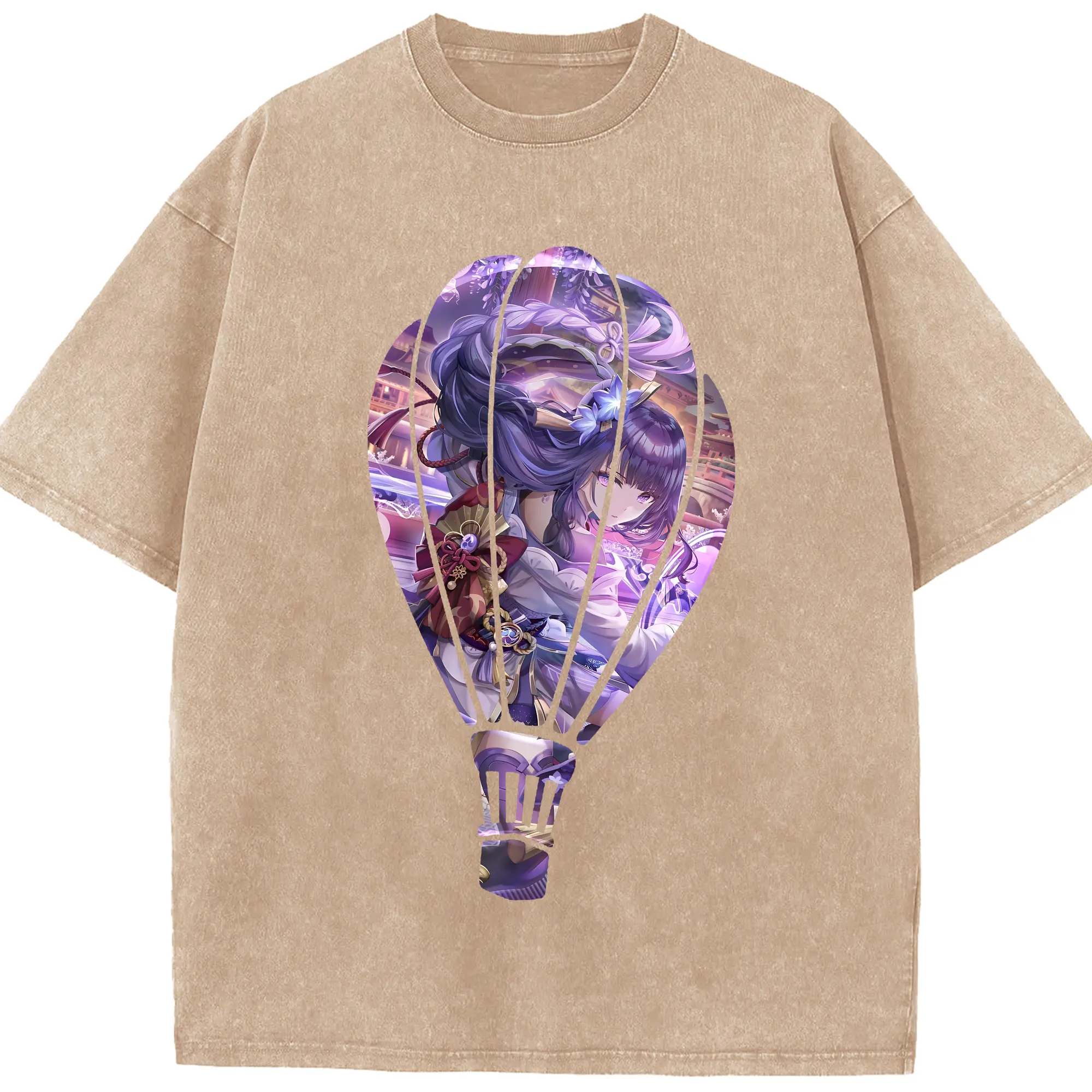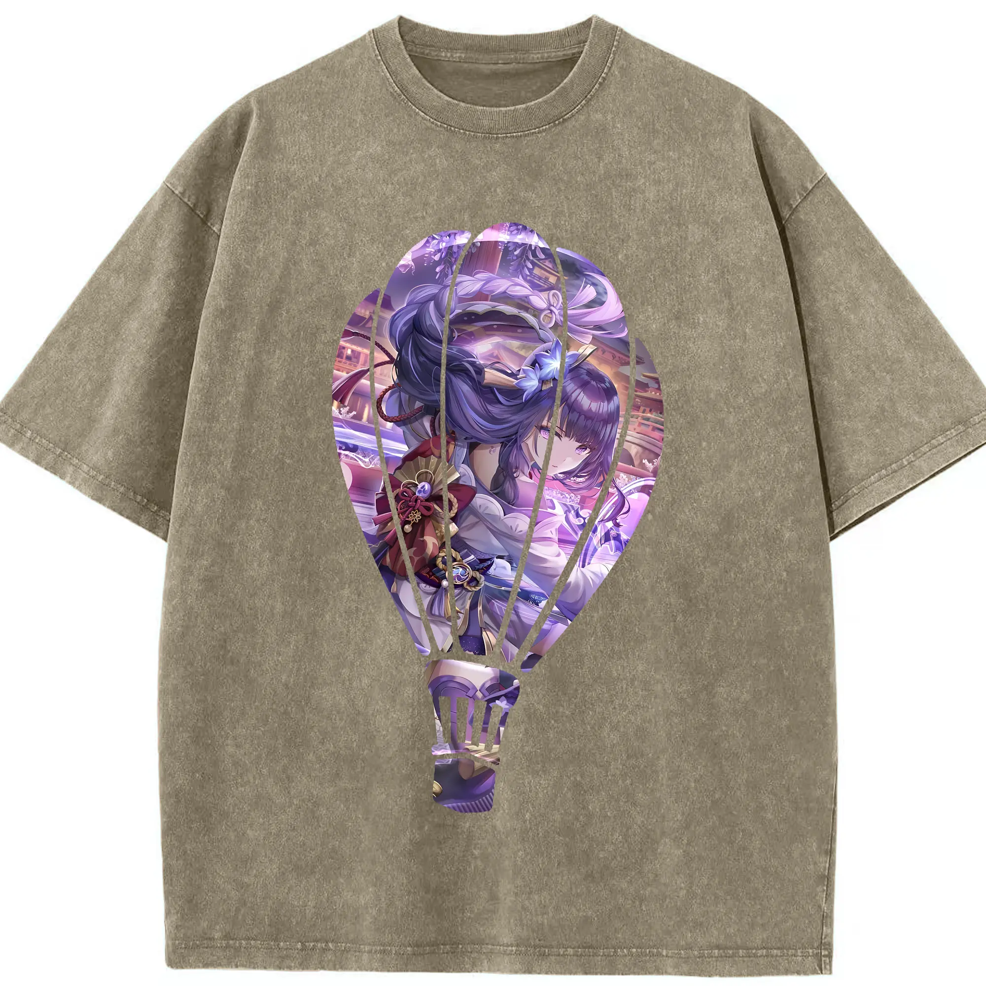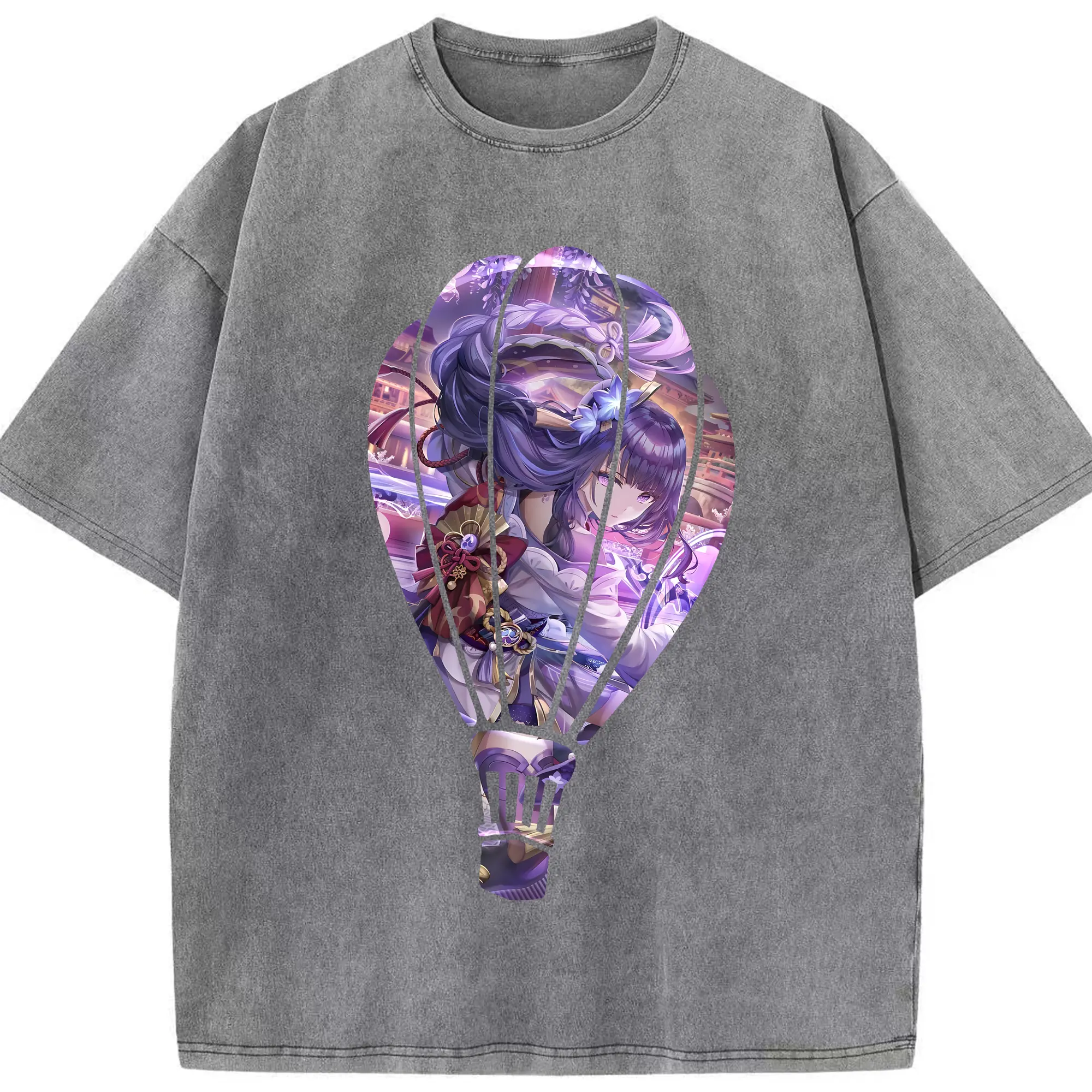 原 神 グッズ 雷電将軍 - 綿100% ヴィンテージ風 半袖Tシャツ ・ 背面プリント ・ 柔らか肌触り ・ 通気性 快適 ・ スポーツ カジュアル 外出用