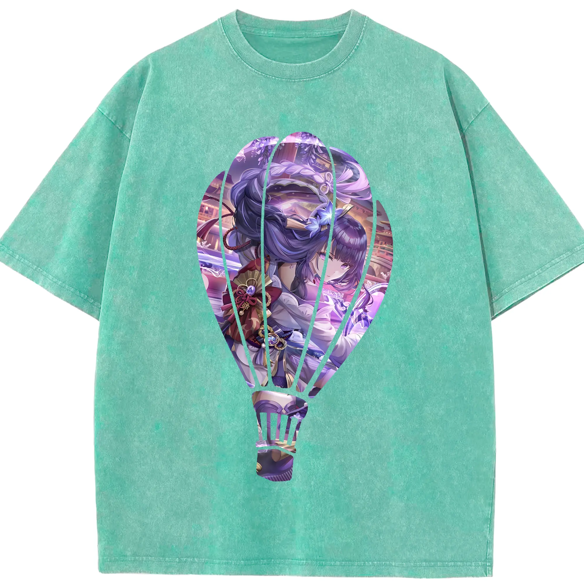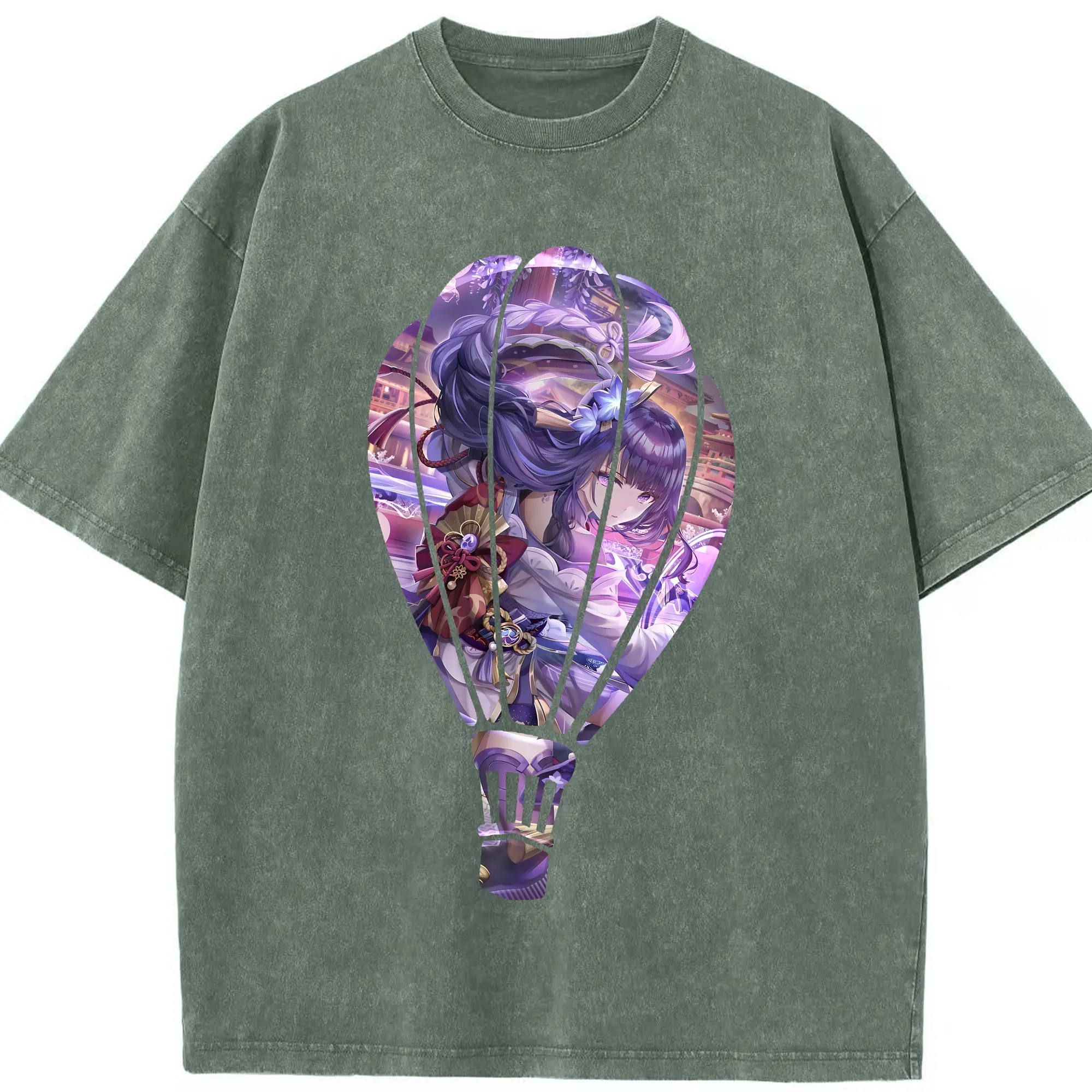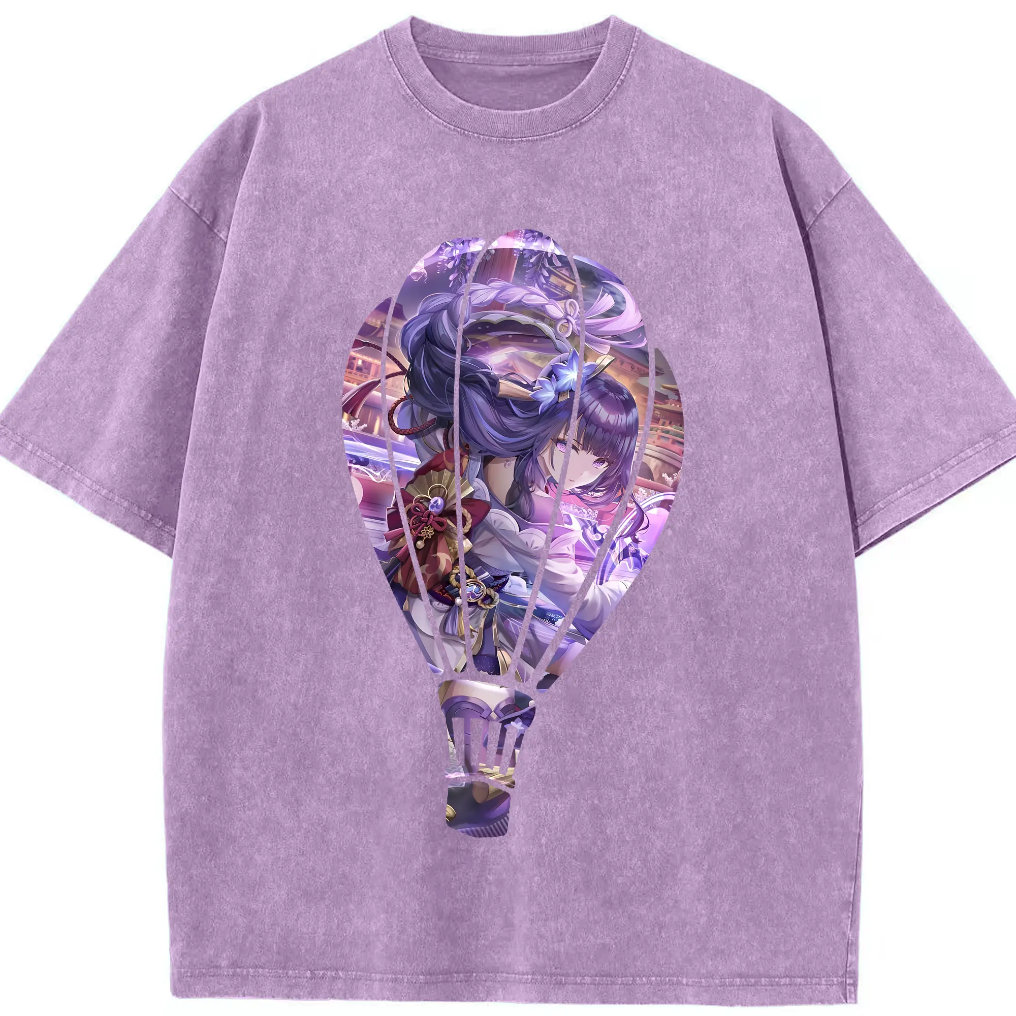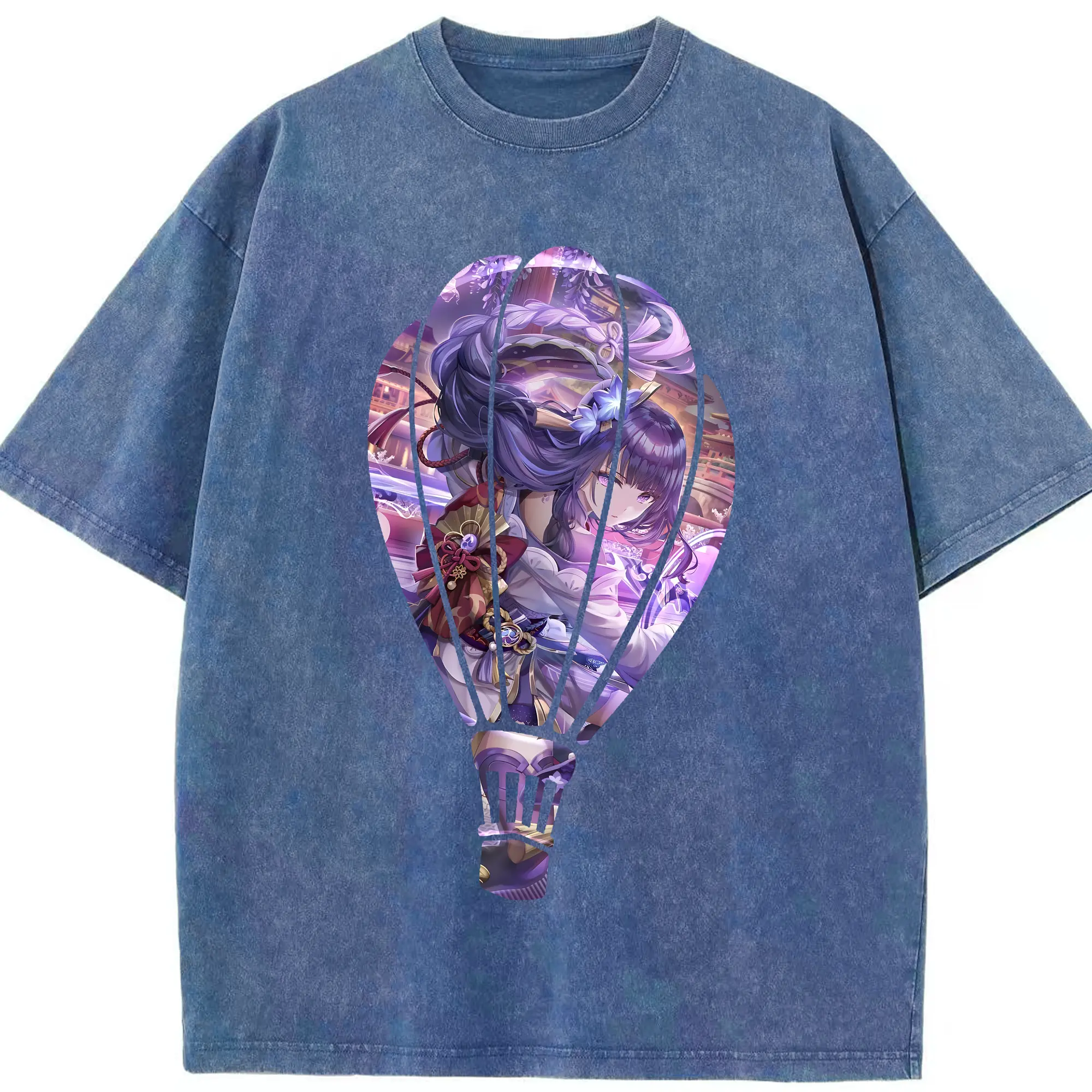 原 神 グッズ 雷電将軍 - 綿100% ヴィンテージ風 半袖Tシャツ ・ 背面プリント ・ 柔らか肌触り ・ 通気性 快適 ・ スポーツ カジュアル 外出用