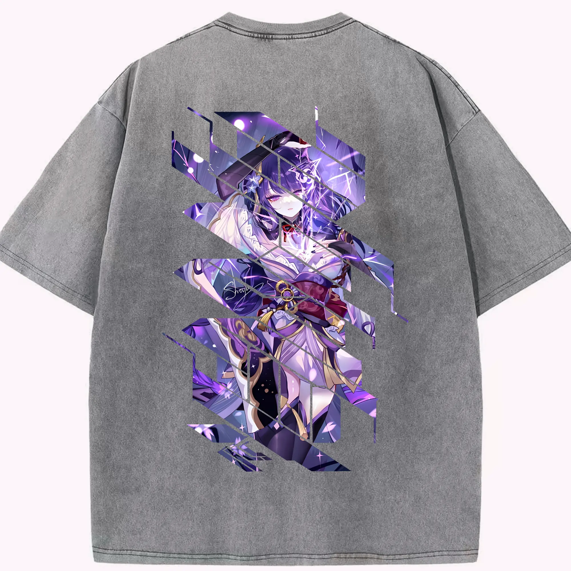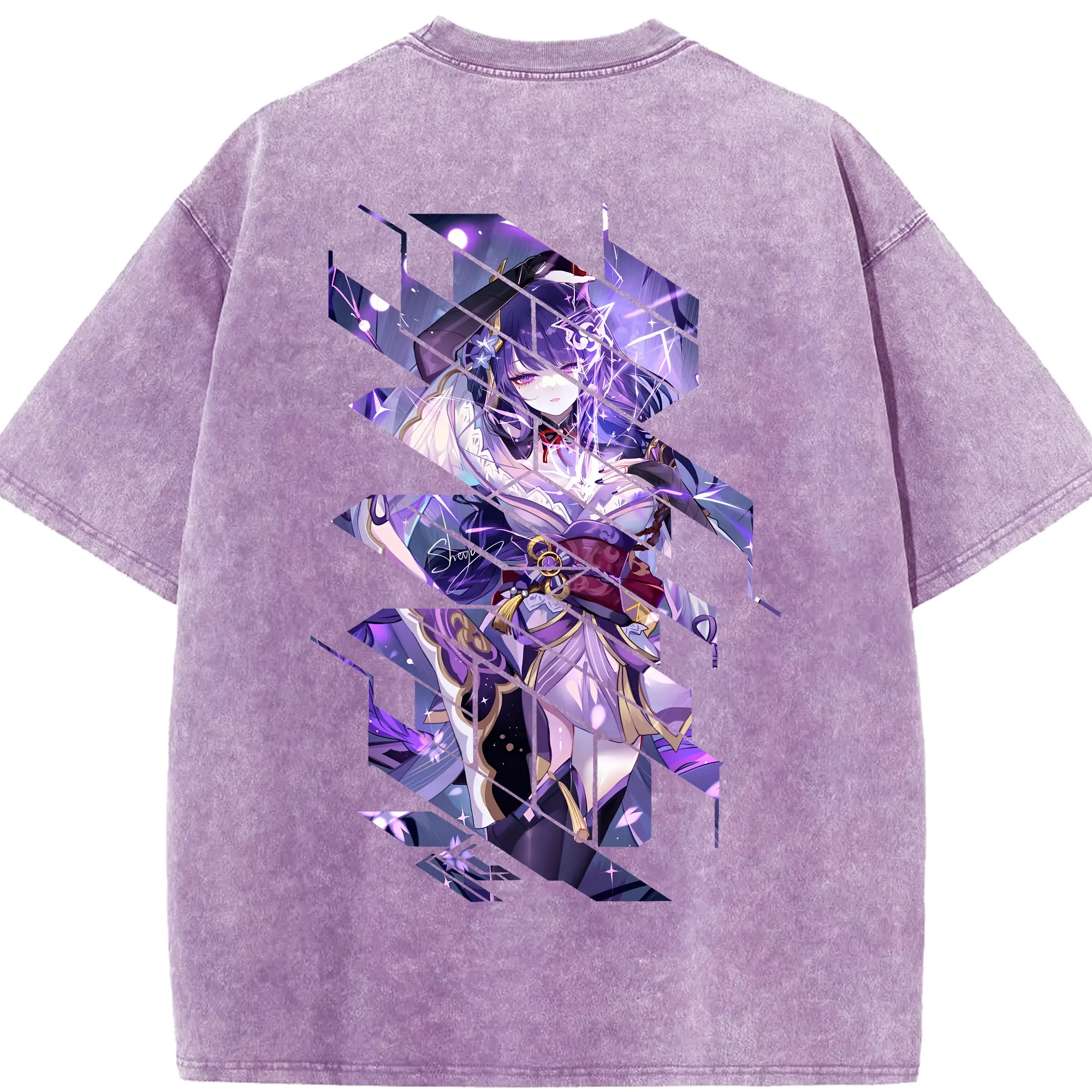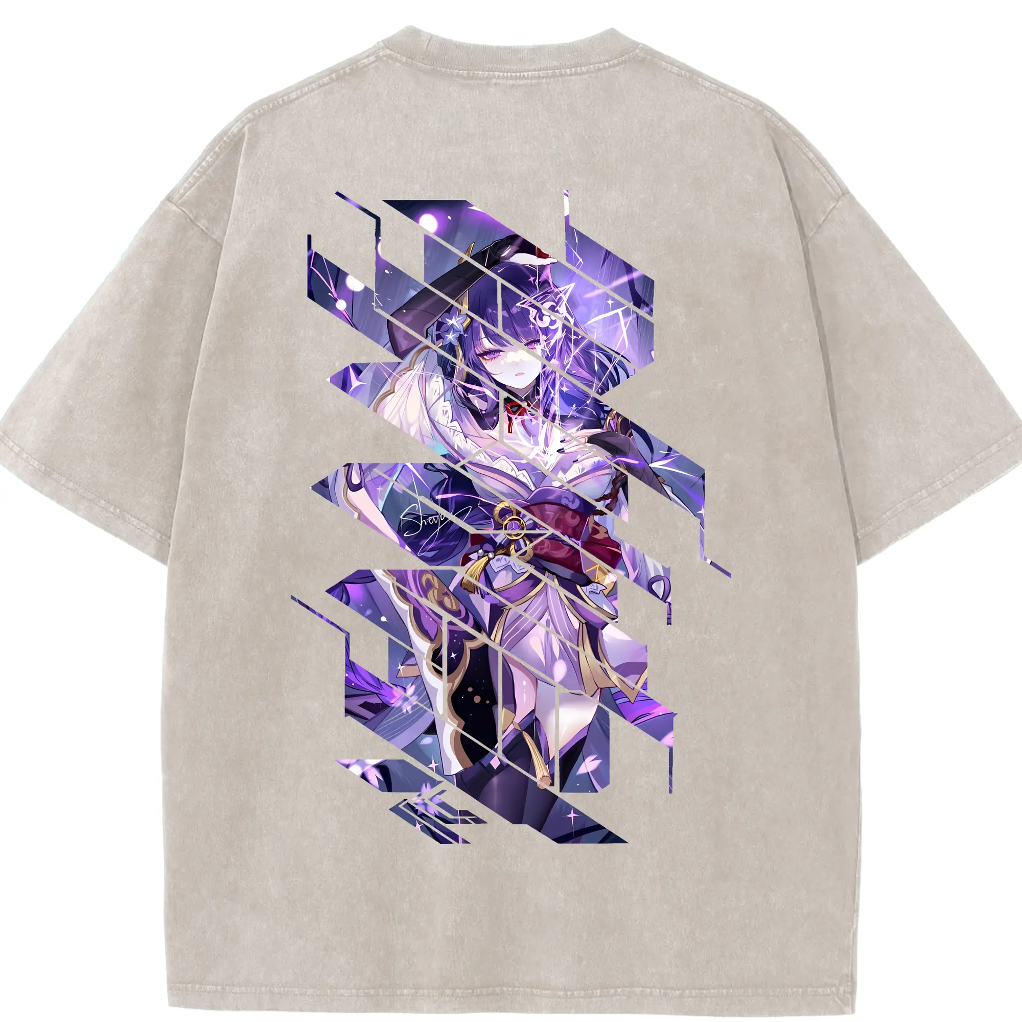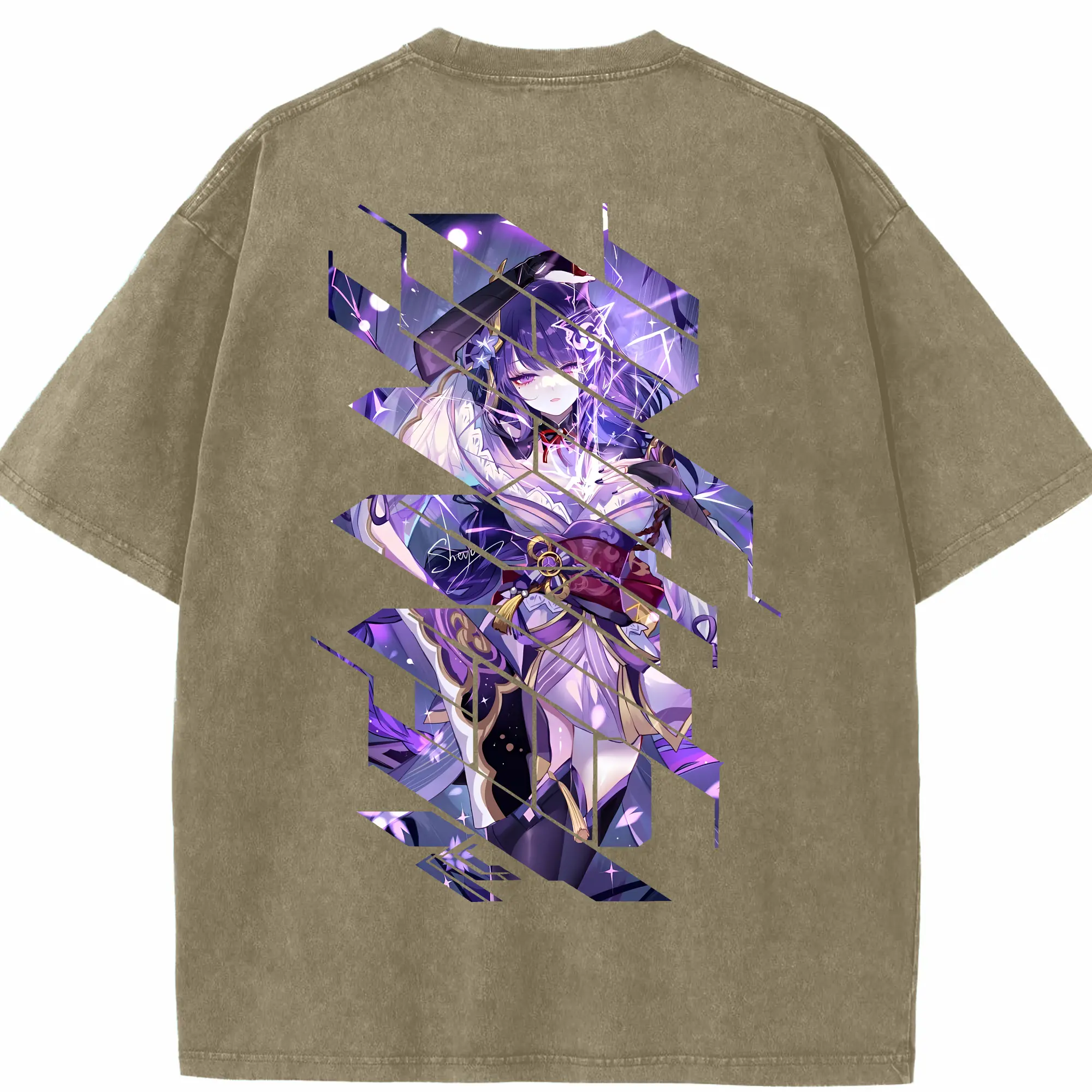 原 神 グッズ 雷電将軍 - 綿100% ヴィンテージ風 半袖Tシャツ ・ フロントプリント ・ 柔らか肌触り ・ 通気性 快適 ・ スポーツ カジュアル 外出用
