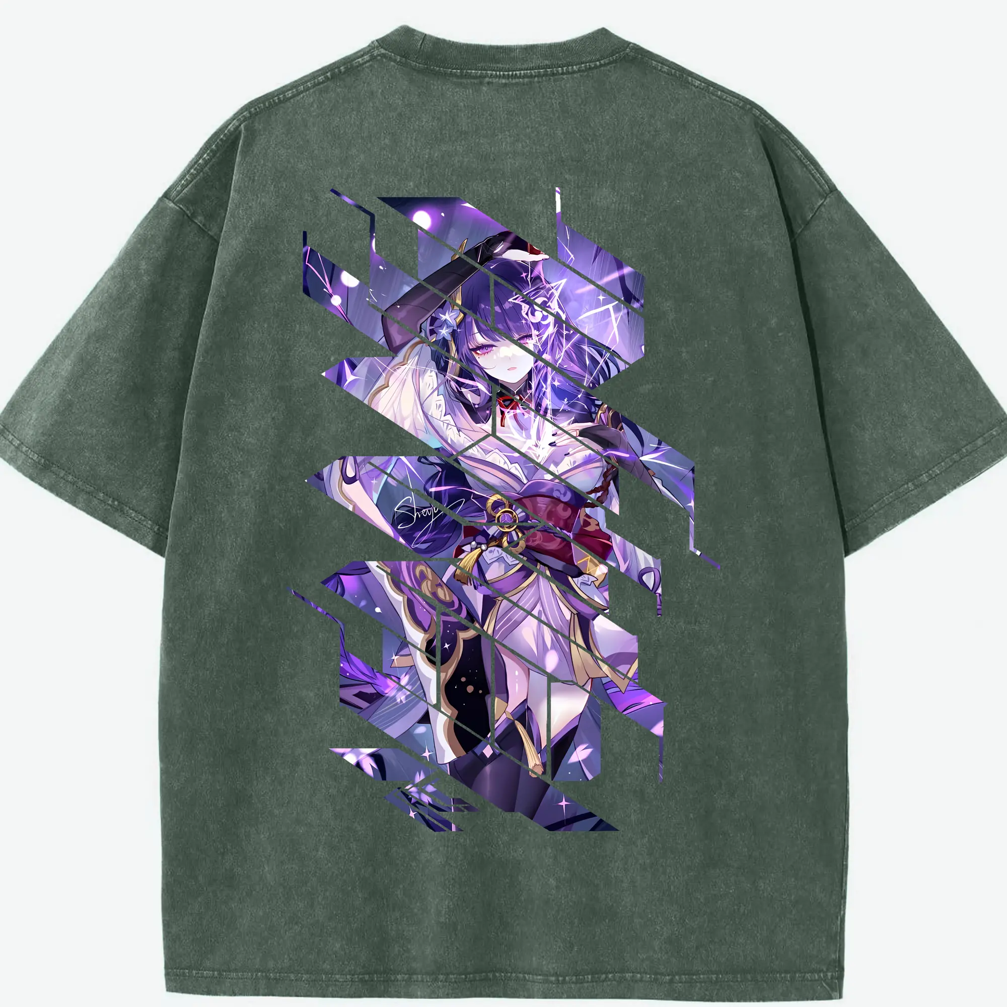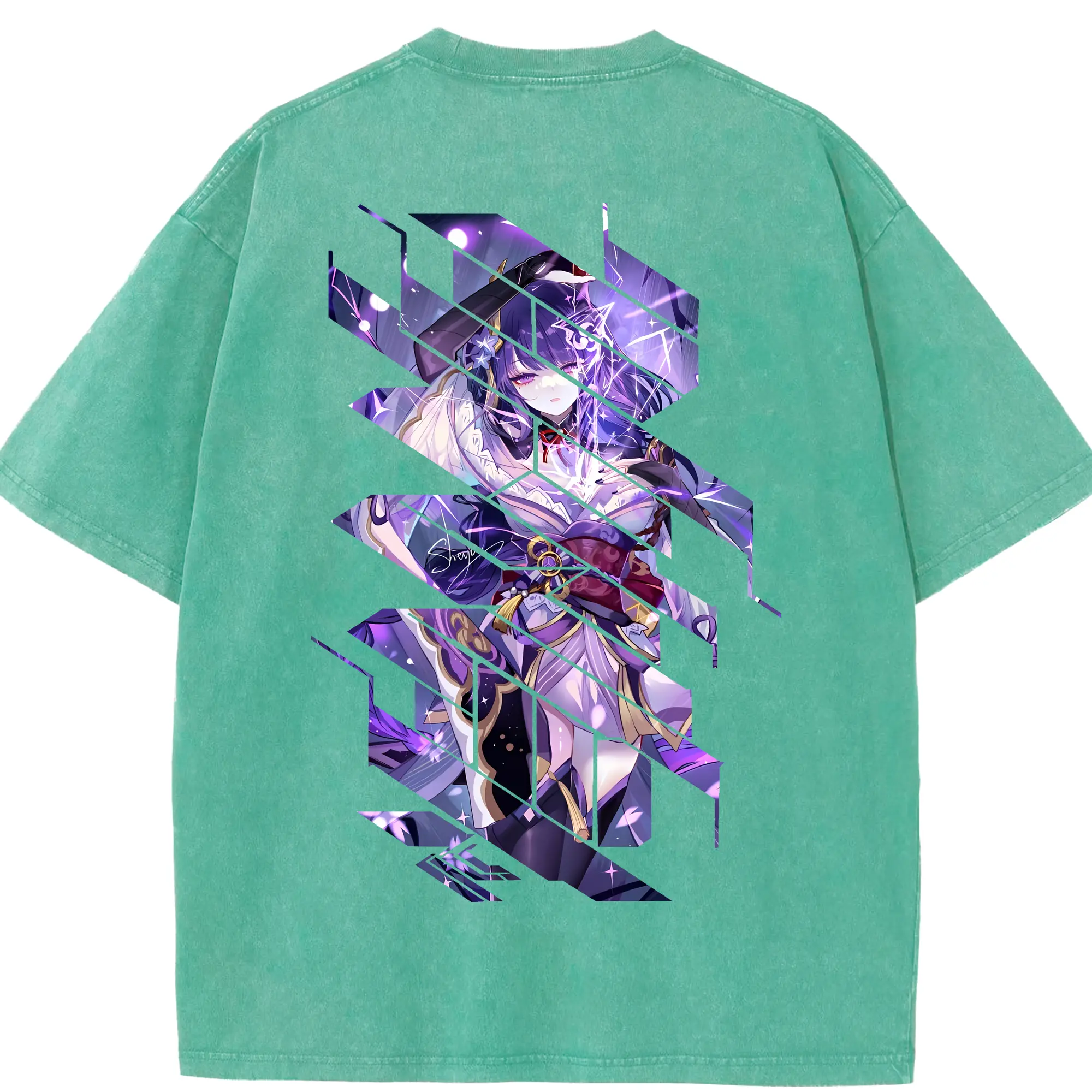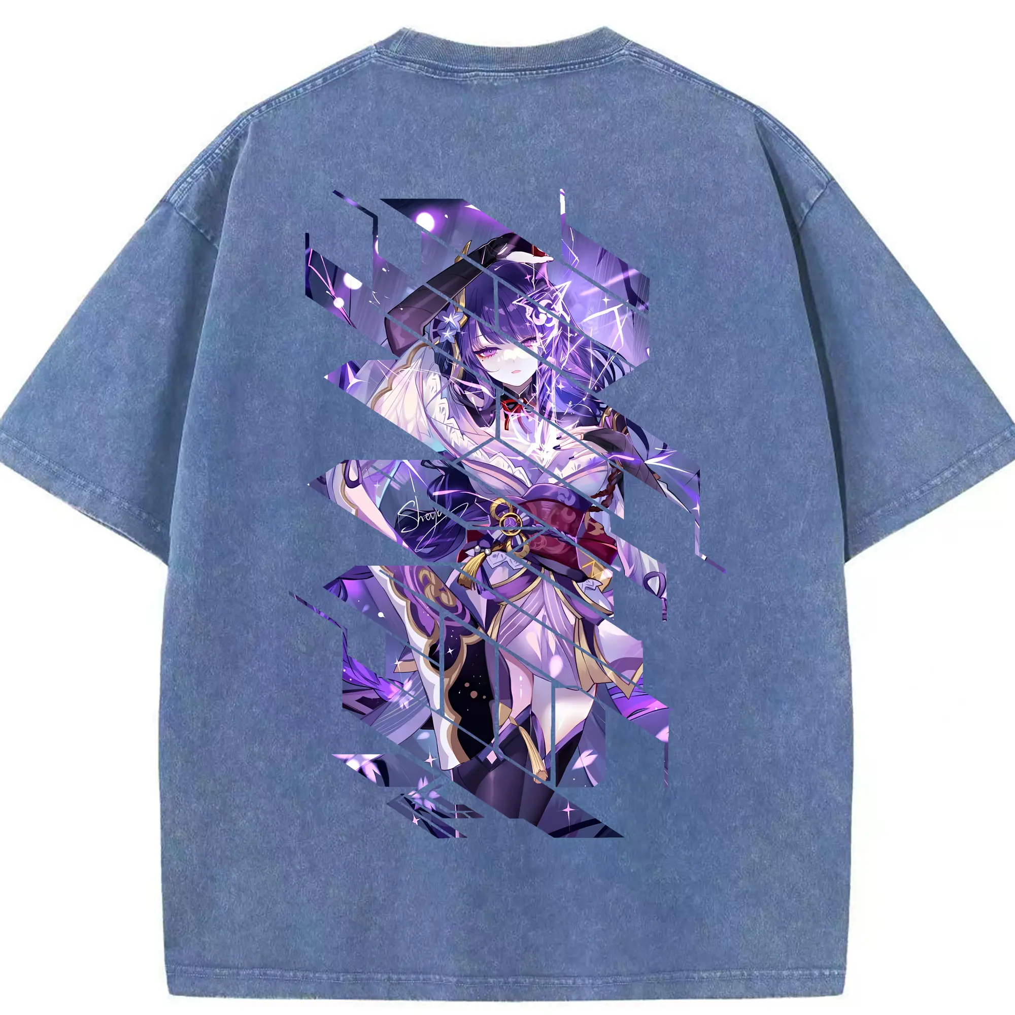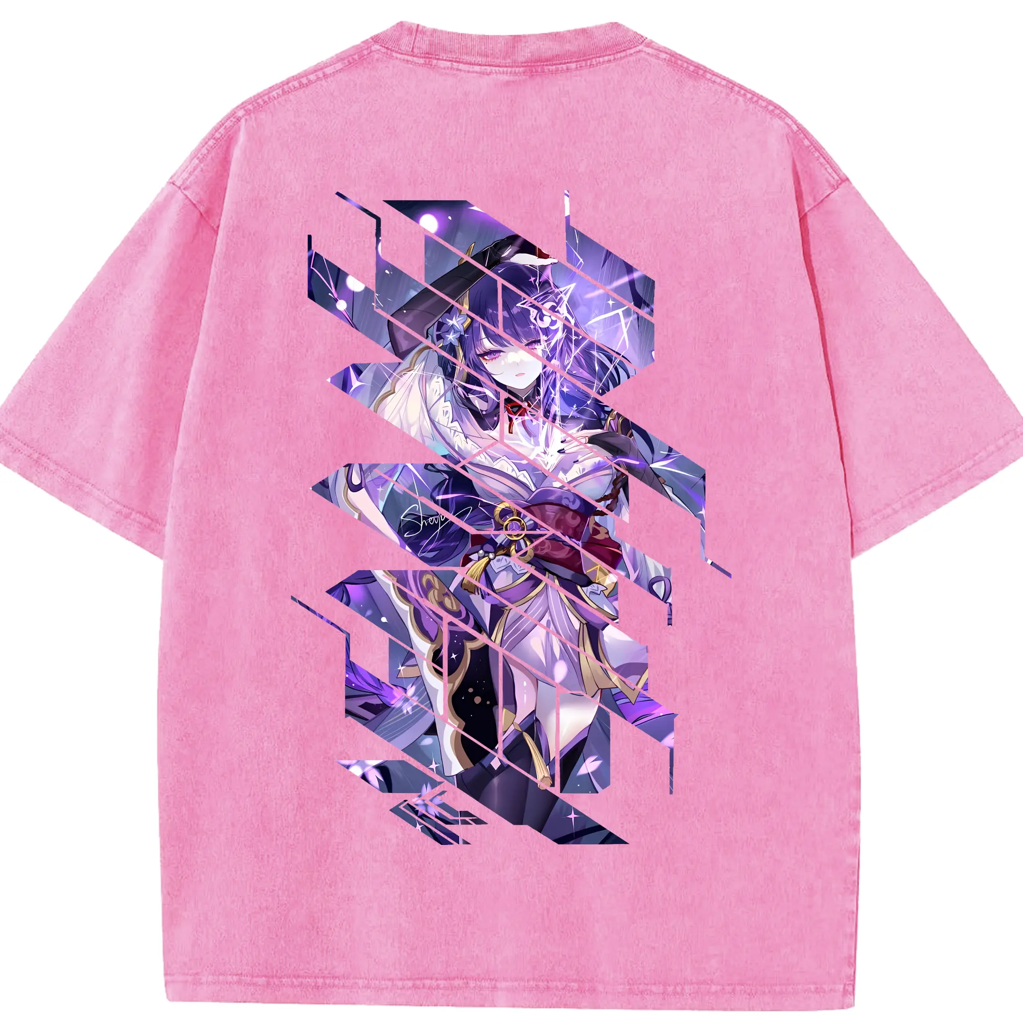 原 神 グッズ 雷電将軍 - 綿100% ヴィンテージ風 半袖Tシャツ ・ フロントプリント ・ 柔らか肌触り ・ 通気性 快適 ・ スポーツ カジュアル 外出用
