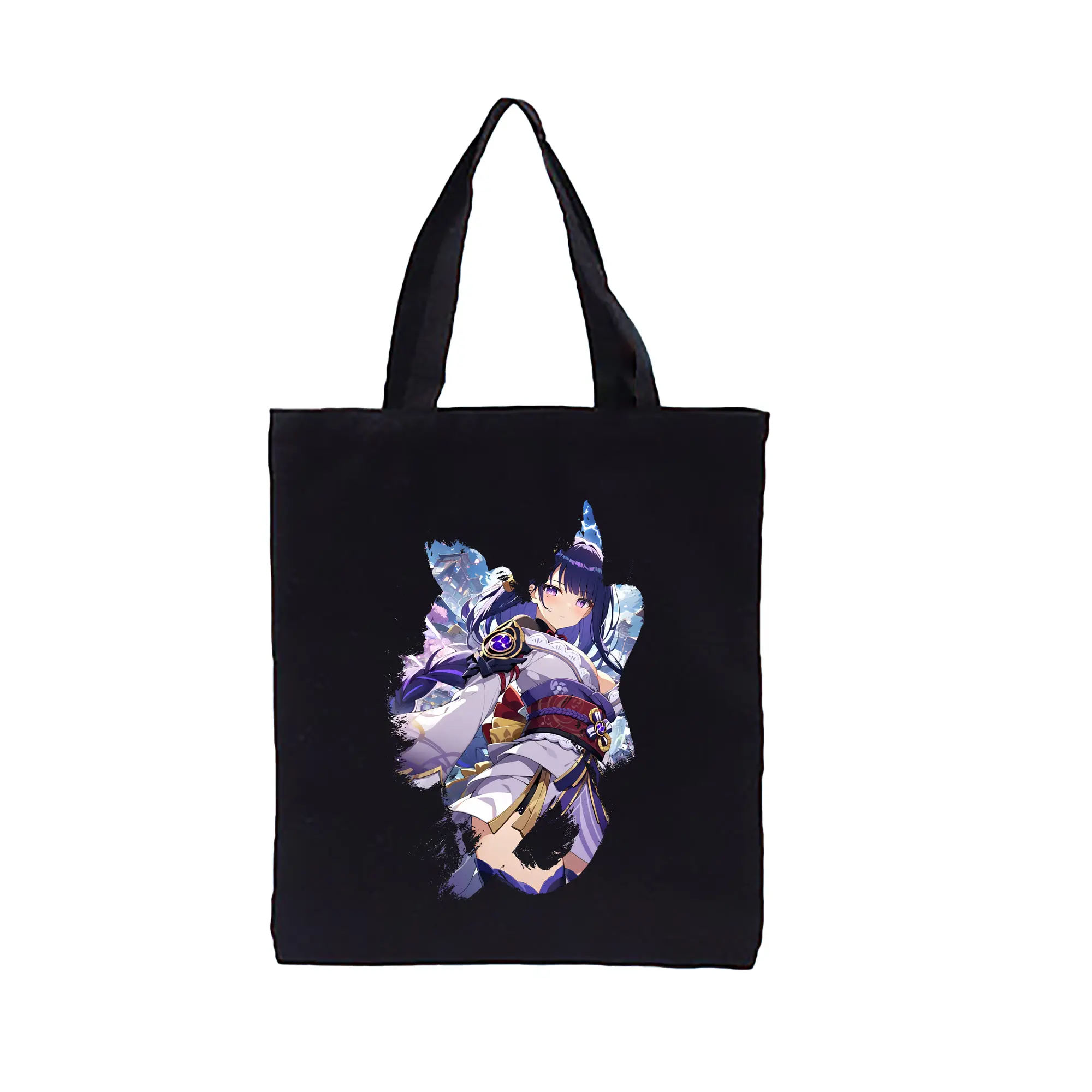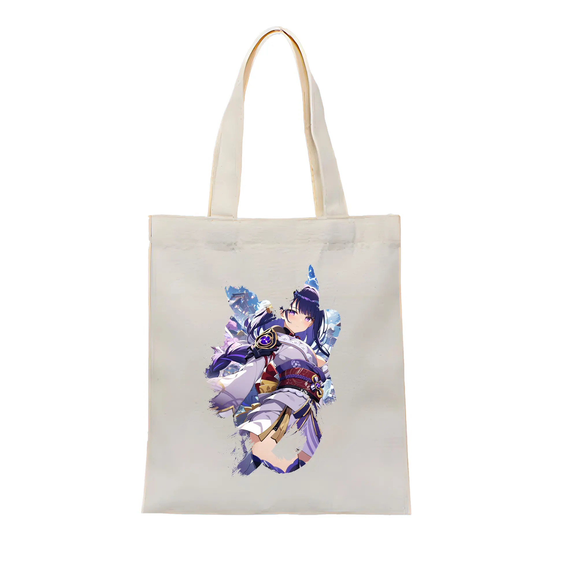 原 神 グッズ 雷電将軍 - 縦型キャンバス手提げバッグ(トートバッグ) ・ キャンバス素材 ・ ショッピング用 ・ 軽量 丈夫 お手入れ簡単