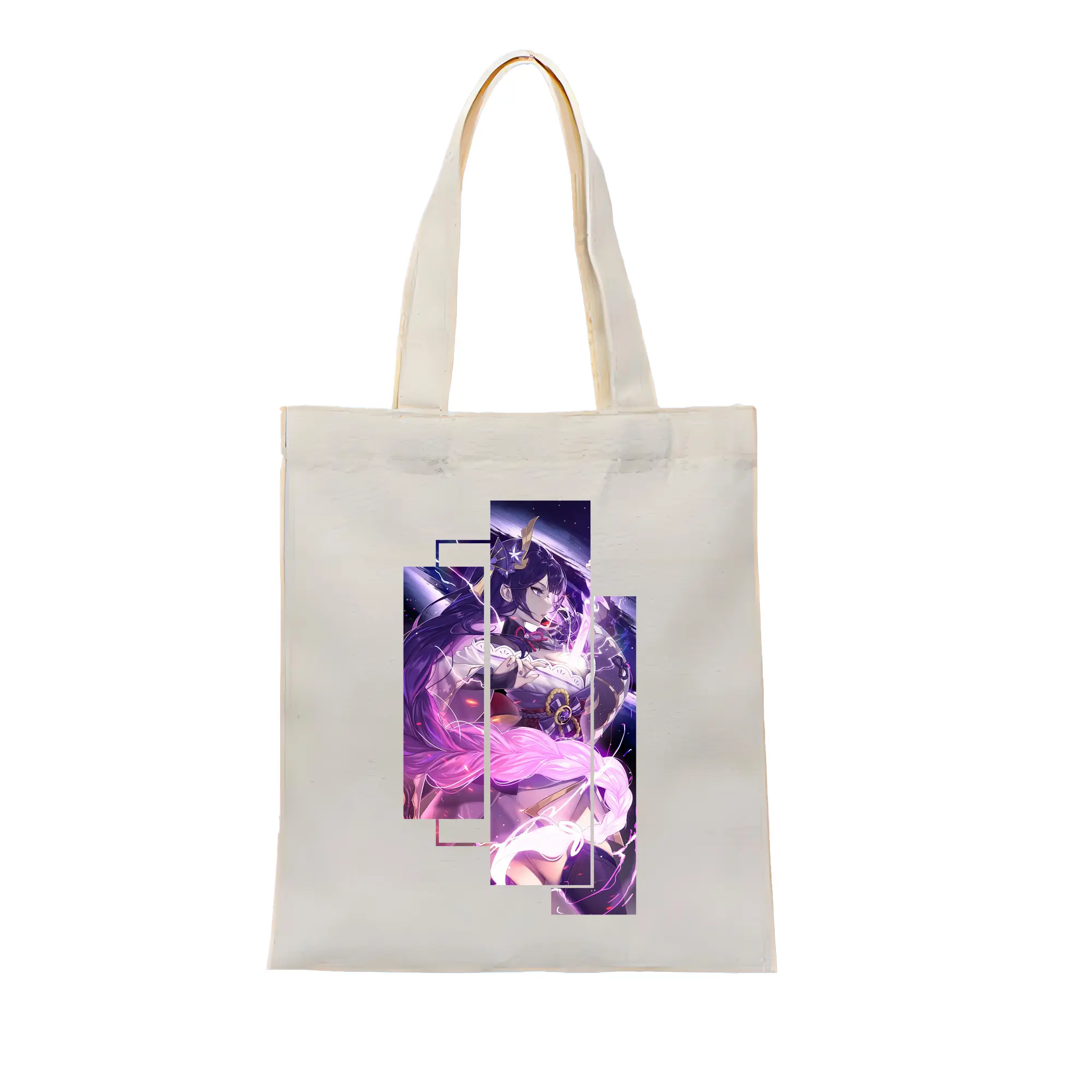 原 神 グッズ 雷電将軍 - 縦型キャンバス手提げバッグ(トートバッグ) ・ キャンバス素材 ・ ショッピング用 ・ 軽量 丈夫 お手入れ簡単
