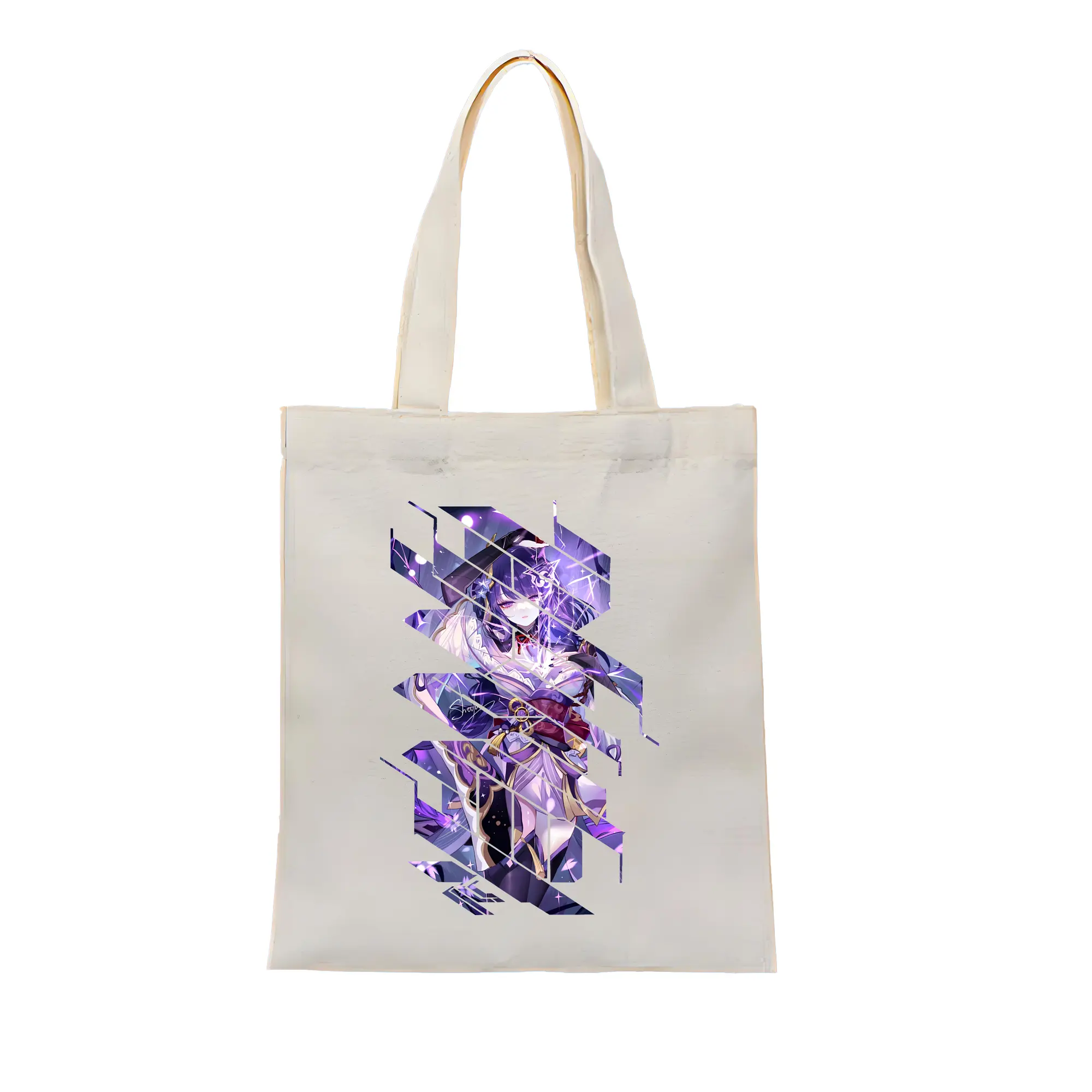 原 神 グッズ 雷電将軍 - 縦型キャンバス手提げバッグ(トートバッグ) ・ キャンバス素材 ・ ショッピング用 ・ 軽量 丈夫 お手入れ簡単