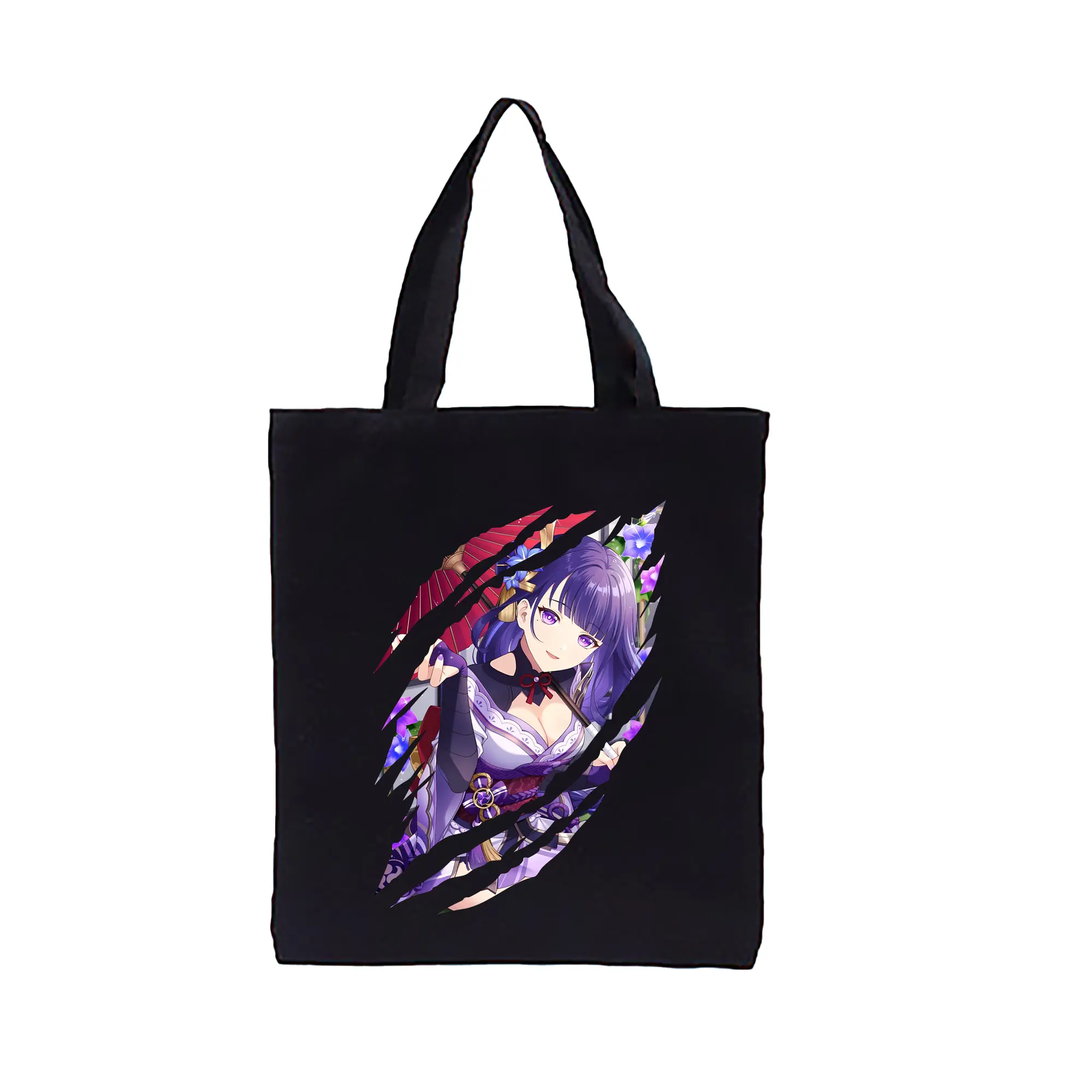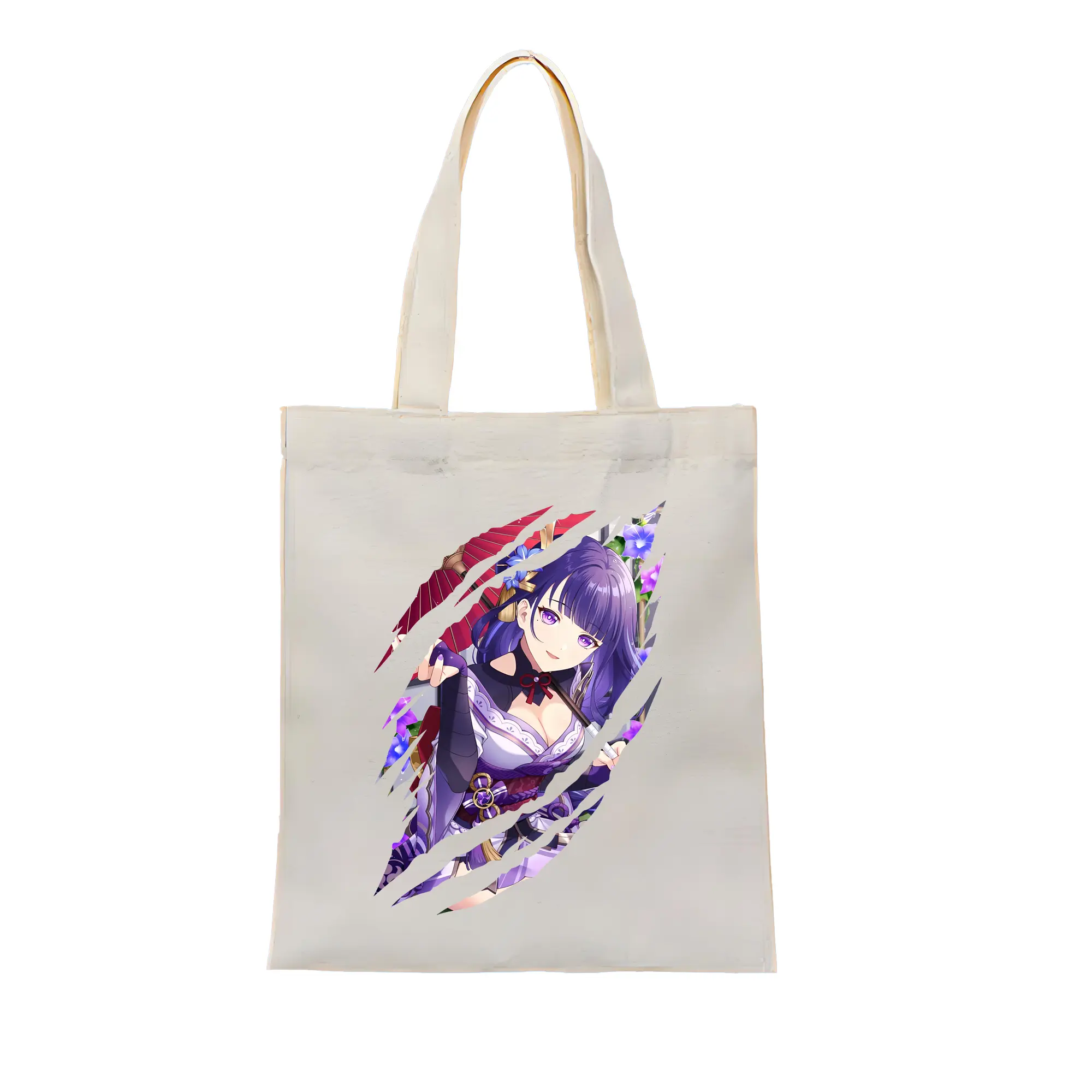 原 神 グッズ 雷電将軍 - 縦型キャンバス手提げバッグ(トートバッグ) ・ キャンバス素材 ・ ショッピング用 ・ 軽量 丈夫 お手入れ簡単