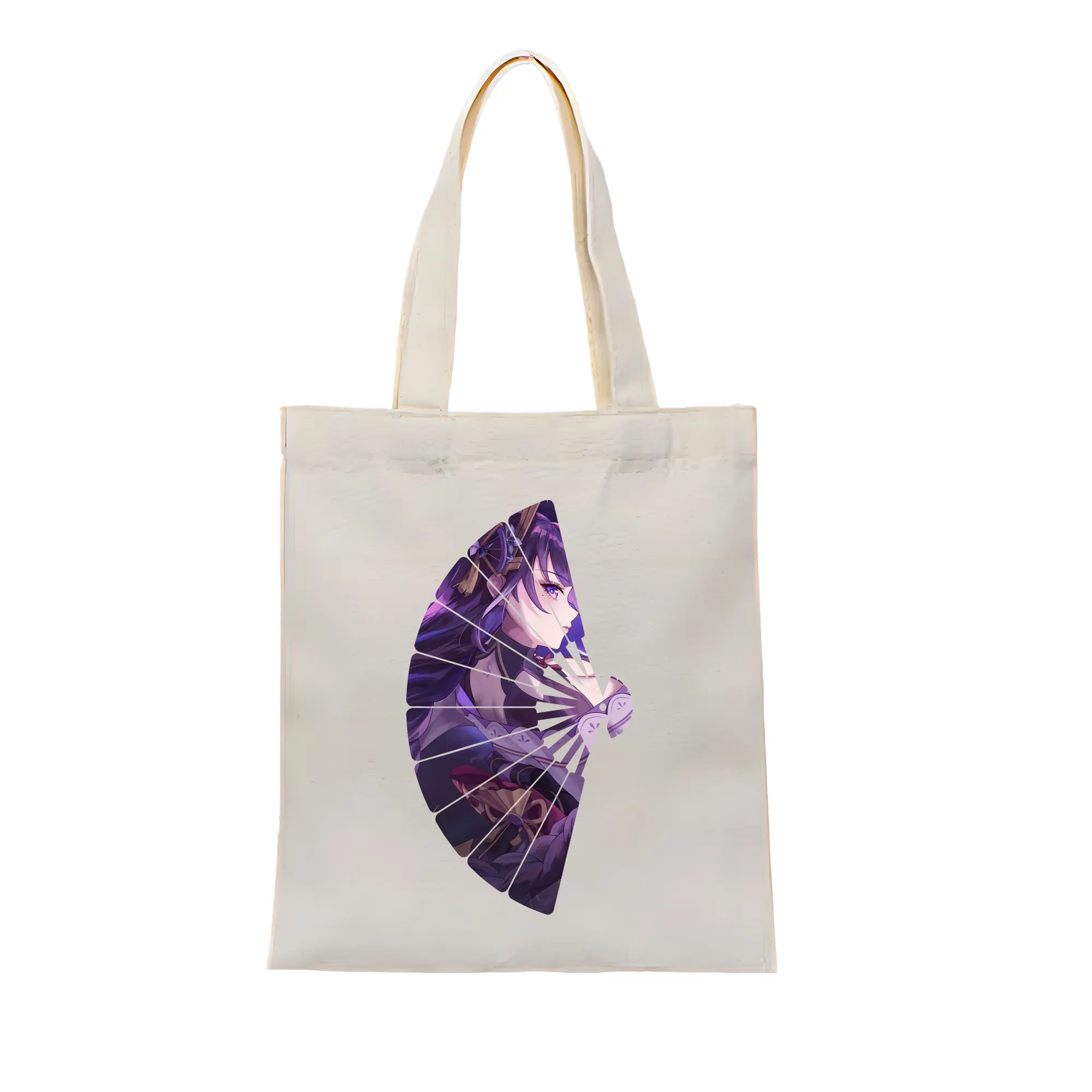 原 神 グッズ 雷電将軍 - 縦型キャンバス手提げバッグ(トートバッグ) ・ キャンバス素材 ・ ショッピング用 ・ 軽量 丈夫 お手入れ簡単