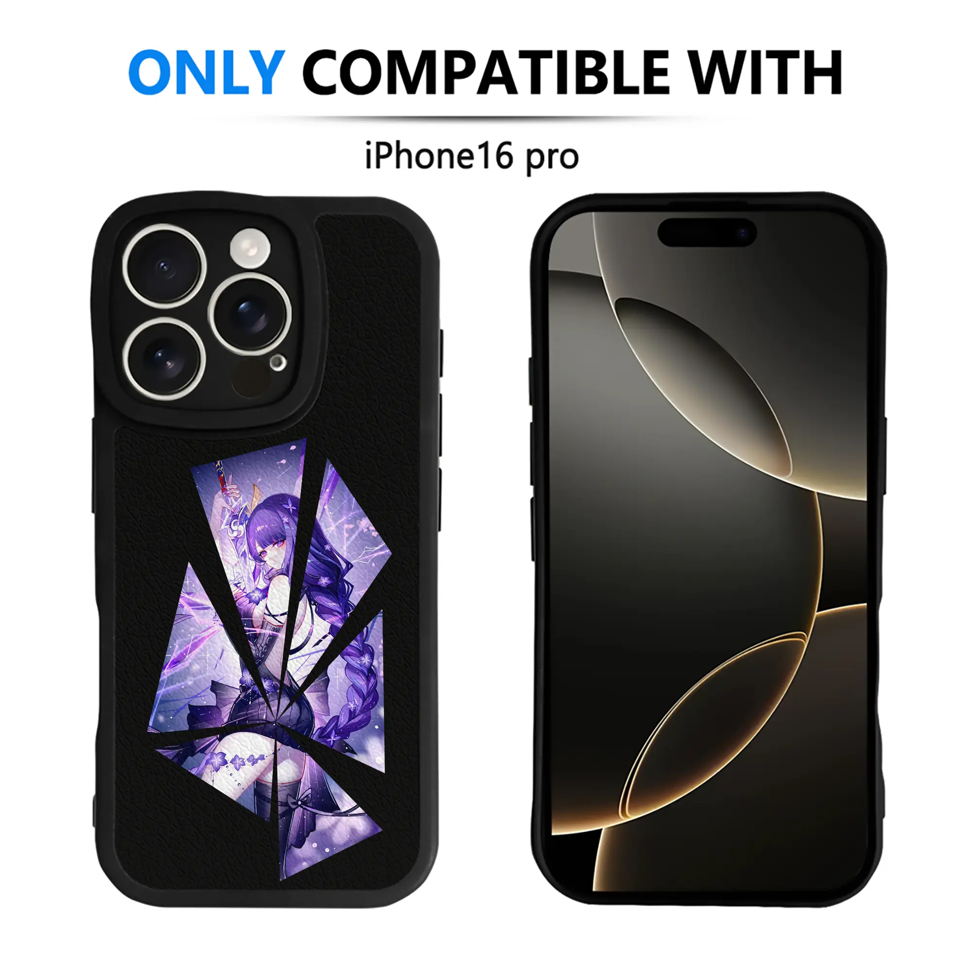 原 神 グッズ 雷電将軍 - IPhone 16シリーズ対応 ・ シリコンスマホケース ・ レザー調 ・ 高精度フィット ・ 耐衝撃 ・ ワイヤレス充電対応 ・ 精密カット