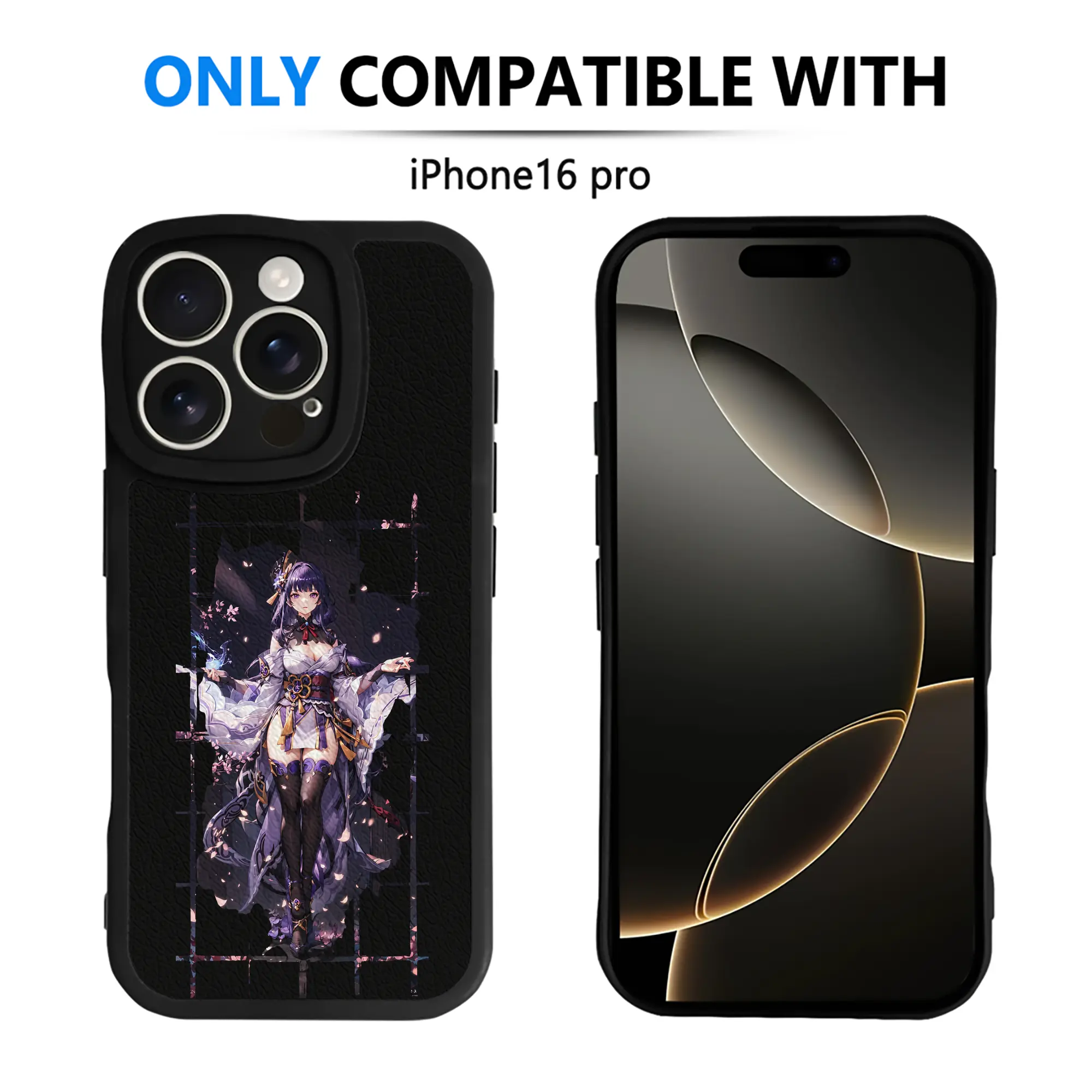 原 神 グッズ 雷電将軍 - IPhone 16シリーズ対応 ・ シリコンスマホケース ・ レザー調 ・ 高精度フィット ・ 耐衝撃 ・ ワイヤレス充電対応 ・ 精密カット