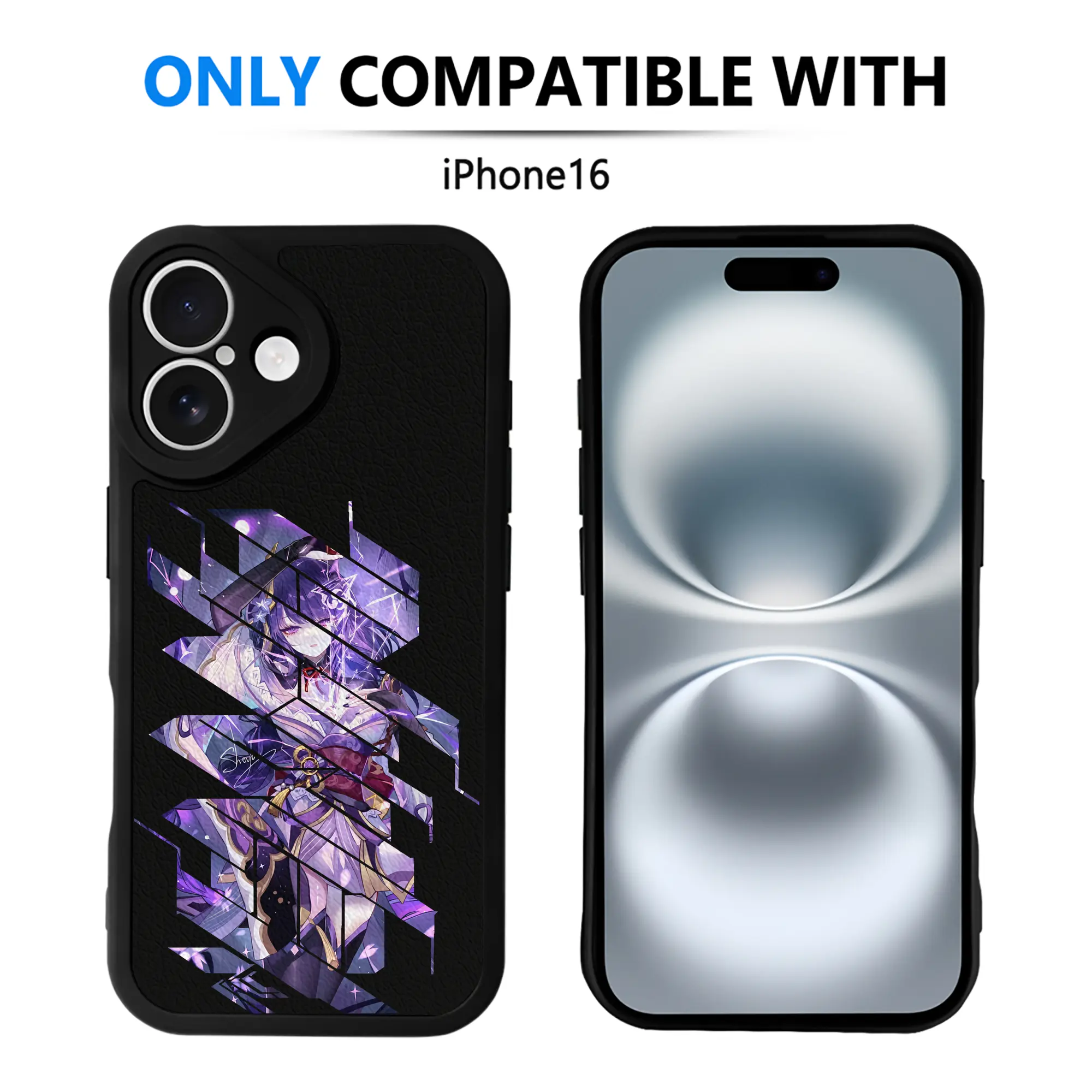 原 神 グッズ 雷電将軍 - IPhone 16シリーズ対応 ・ シリコンスマホケース ・ レザー調 ・ 高精度フィット ・ 耐衝撃 ・ ワイヤレス充電対応 ・ 精密カット