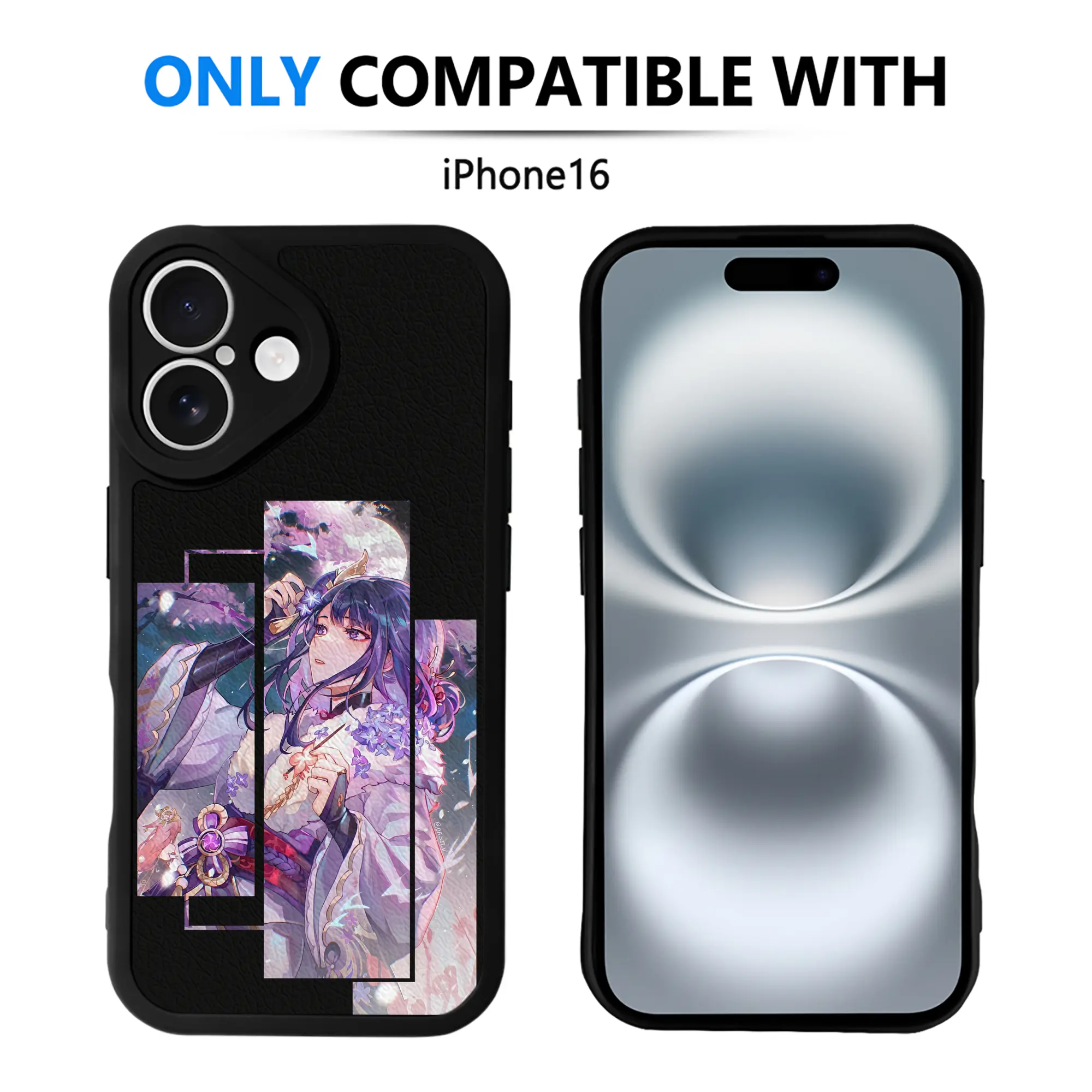 原 神 グッズ 雷電将軍 - IPhone 16シリーズ対応 ・ シリコンスマホケース ・ レザー調 ・ 高精度フィット ・ 耐衝撃 ・ ワイヤレス充電対応 ・ 精密カット