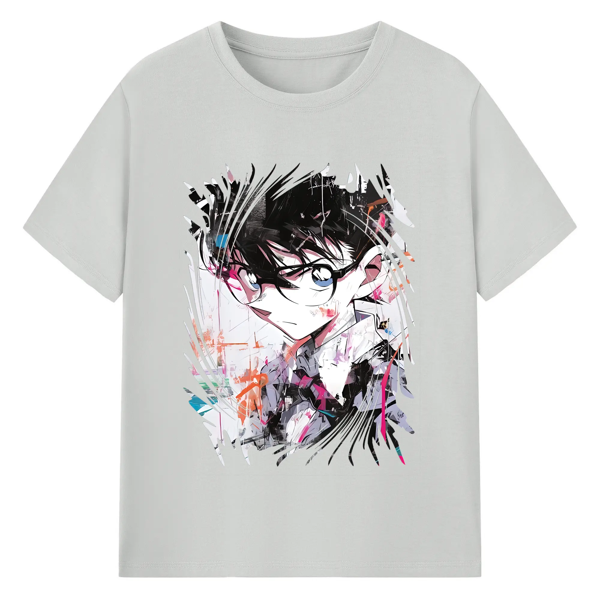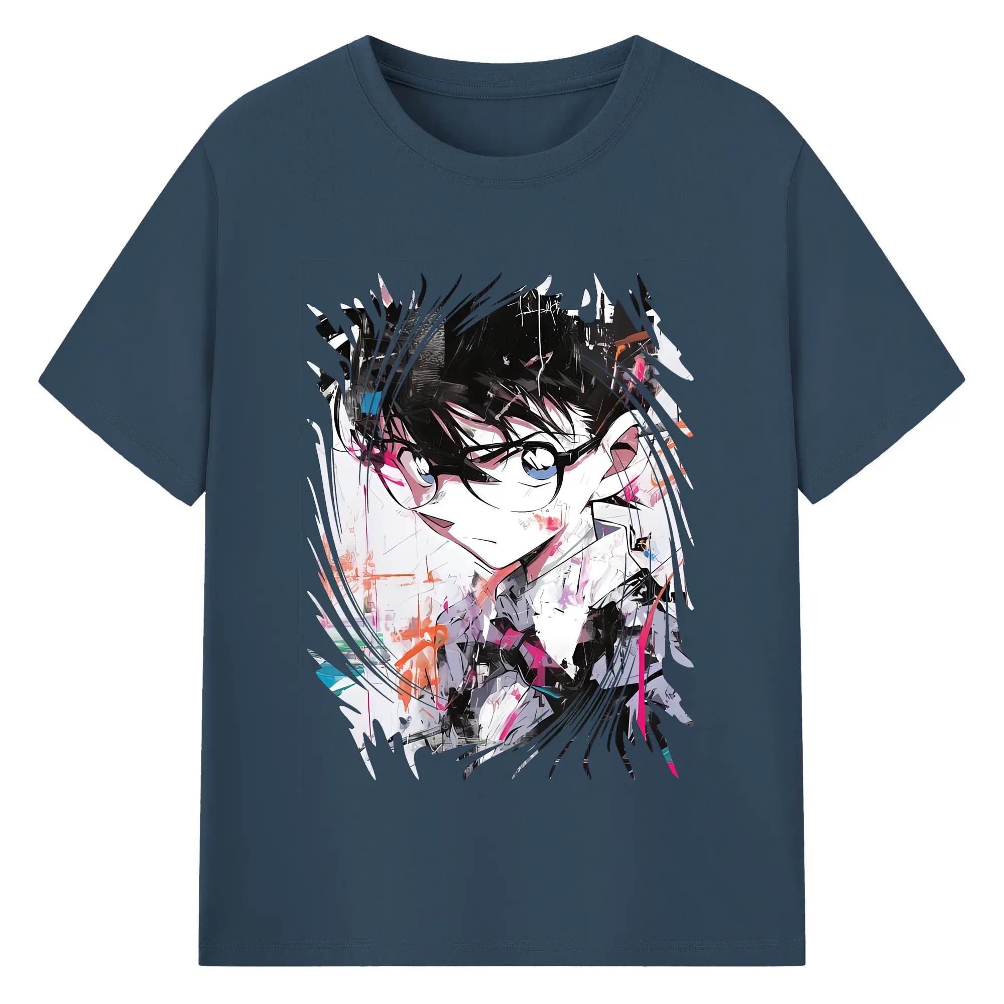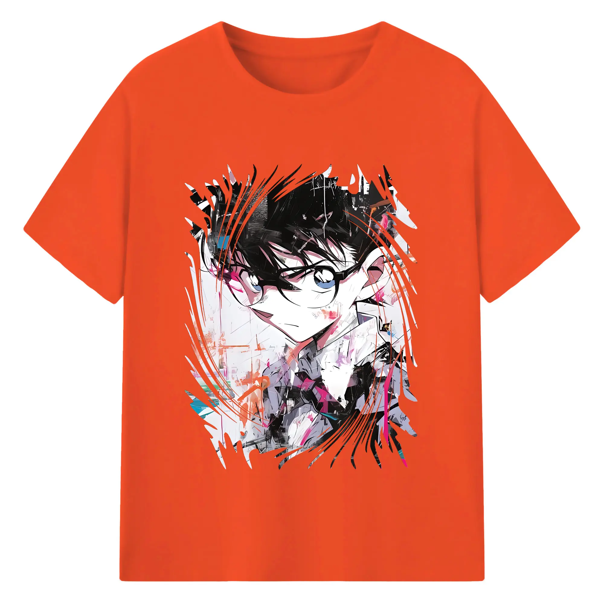 名探偵コナン グッズ 江戸川 コナン - 綿100% 半袖Tシャツ ・ フロントプリント ・ 快適 通気性 ・ 日常使い 散歩 スポーツ用