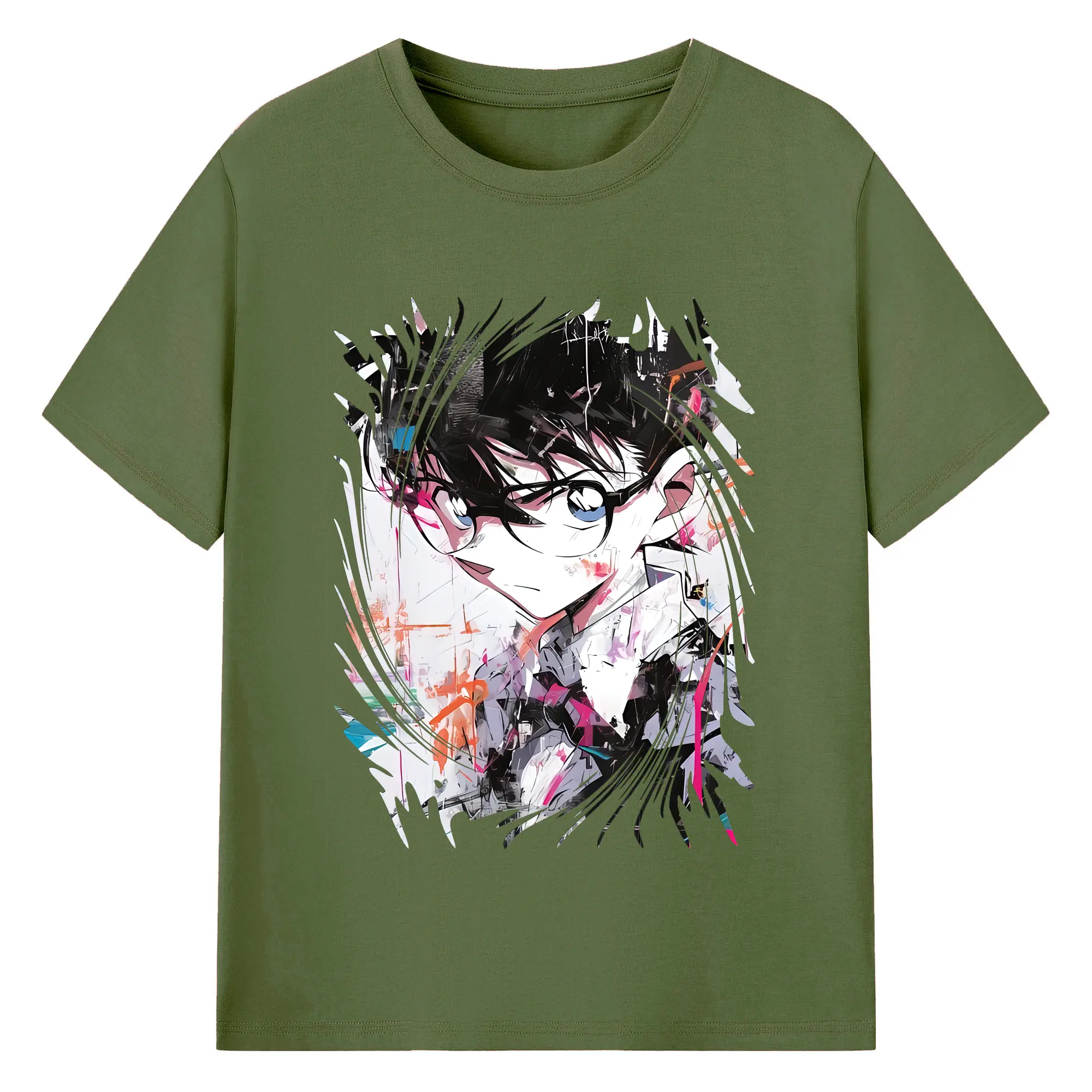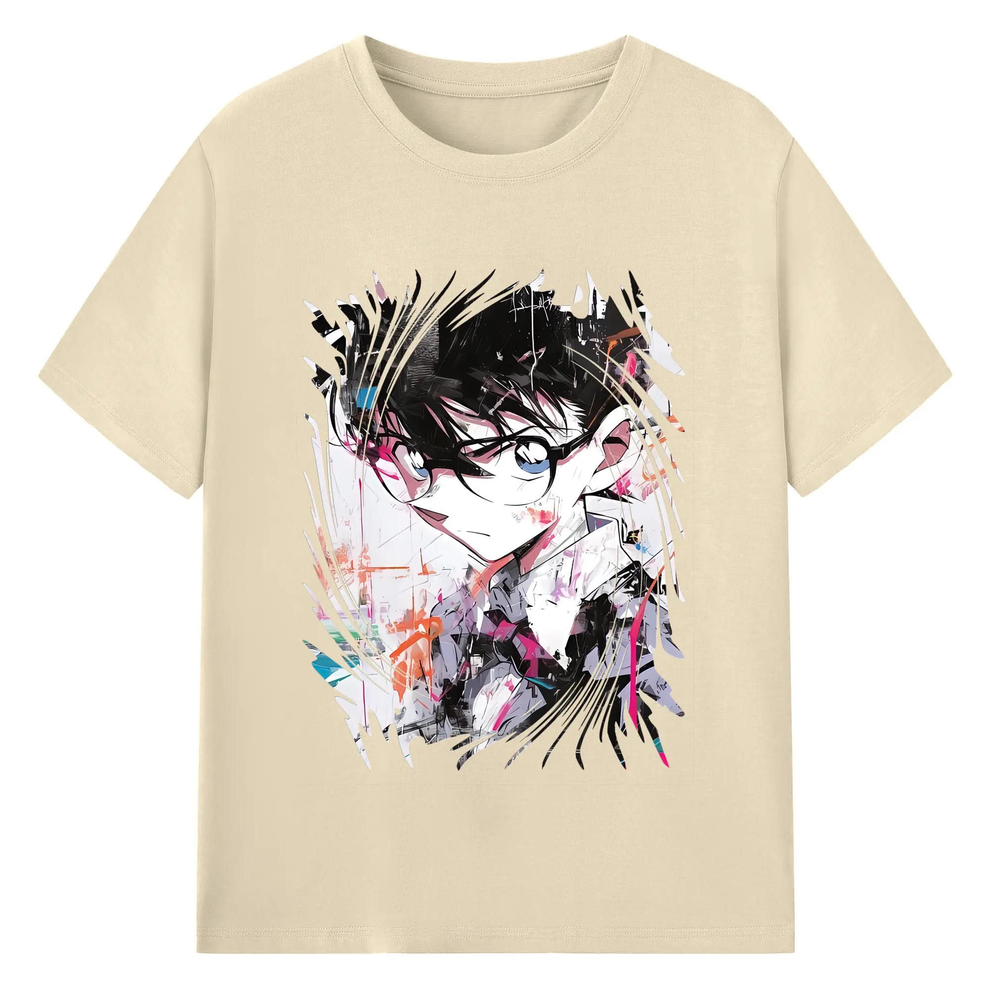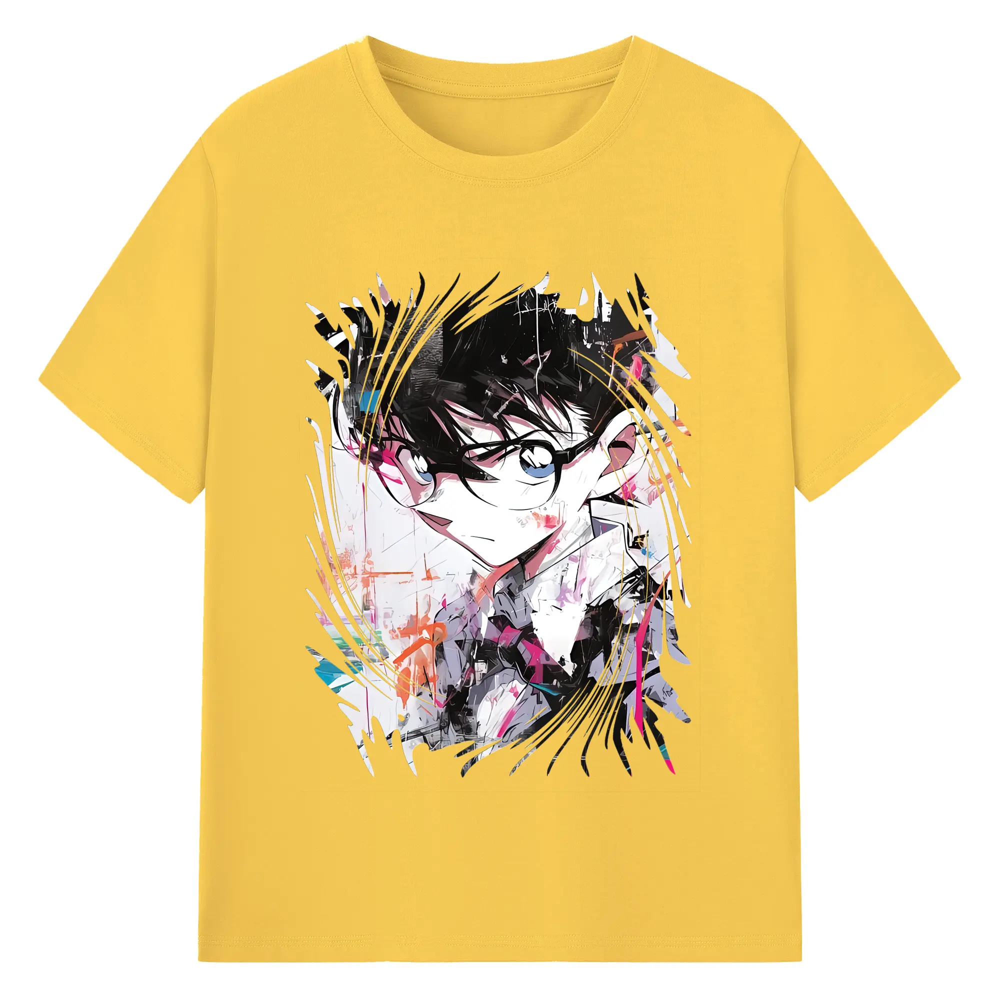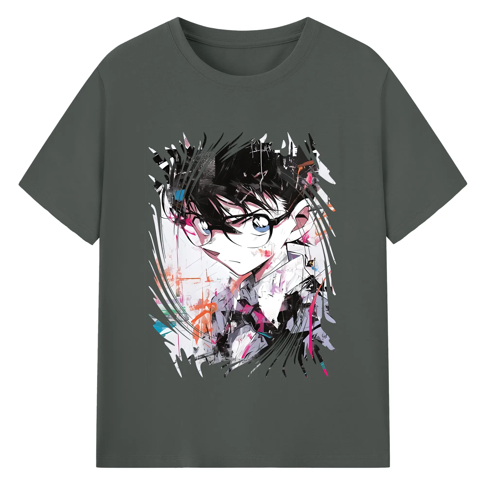 名探偵コナン グッズ 江戸川 コナン - 綿100% 半袖Tシャツ ・ フロントプリント ・ 快適 通気性 ・ 日常使い 散歩 スポーツ用