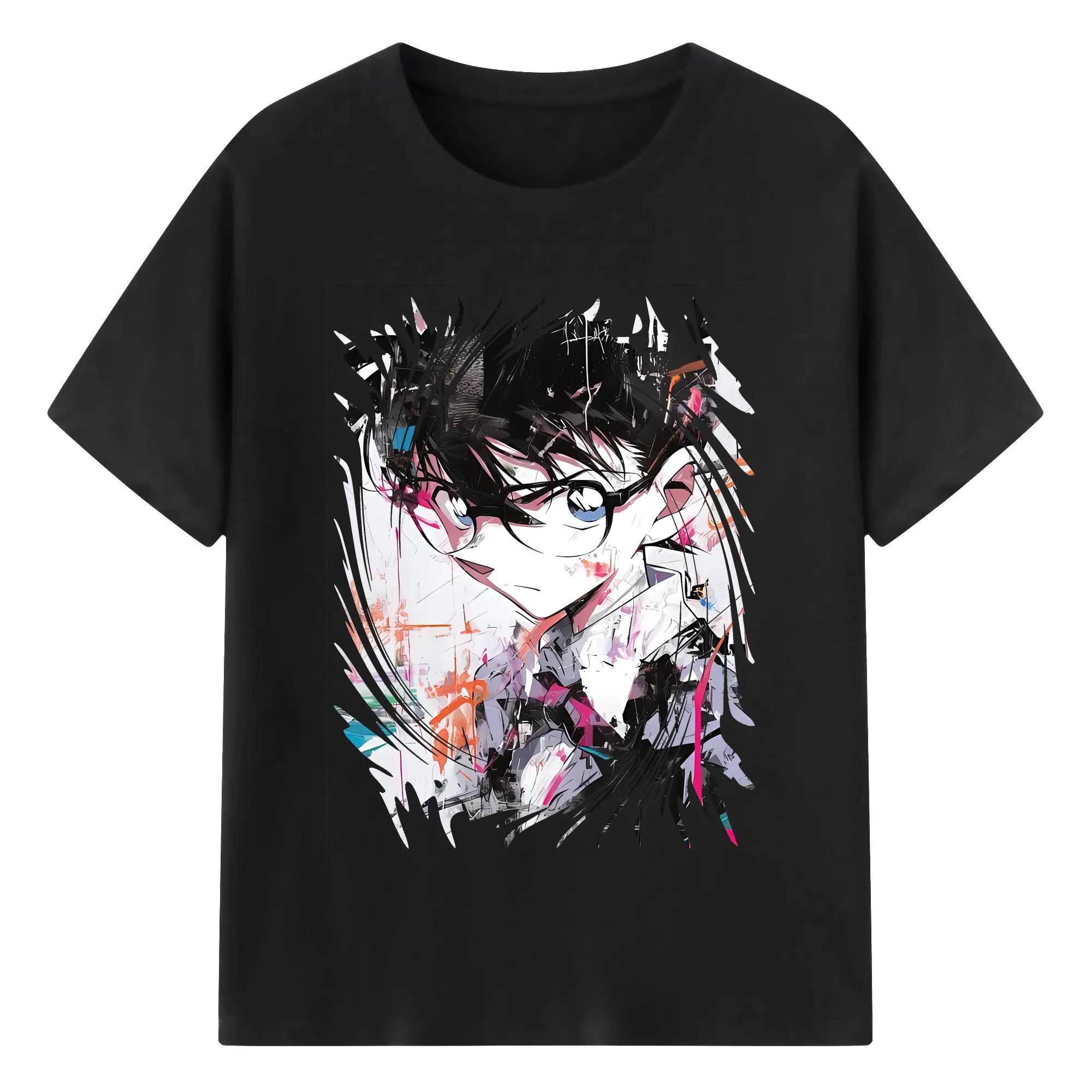 名探偵コナン グッズ 江戸川 コナン - 綿100% 半袖Tシャツ ・ バックプリント ・ 快適 通気性 ・ 日常使い 散歩 スポーツ用
