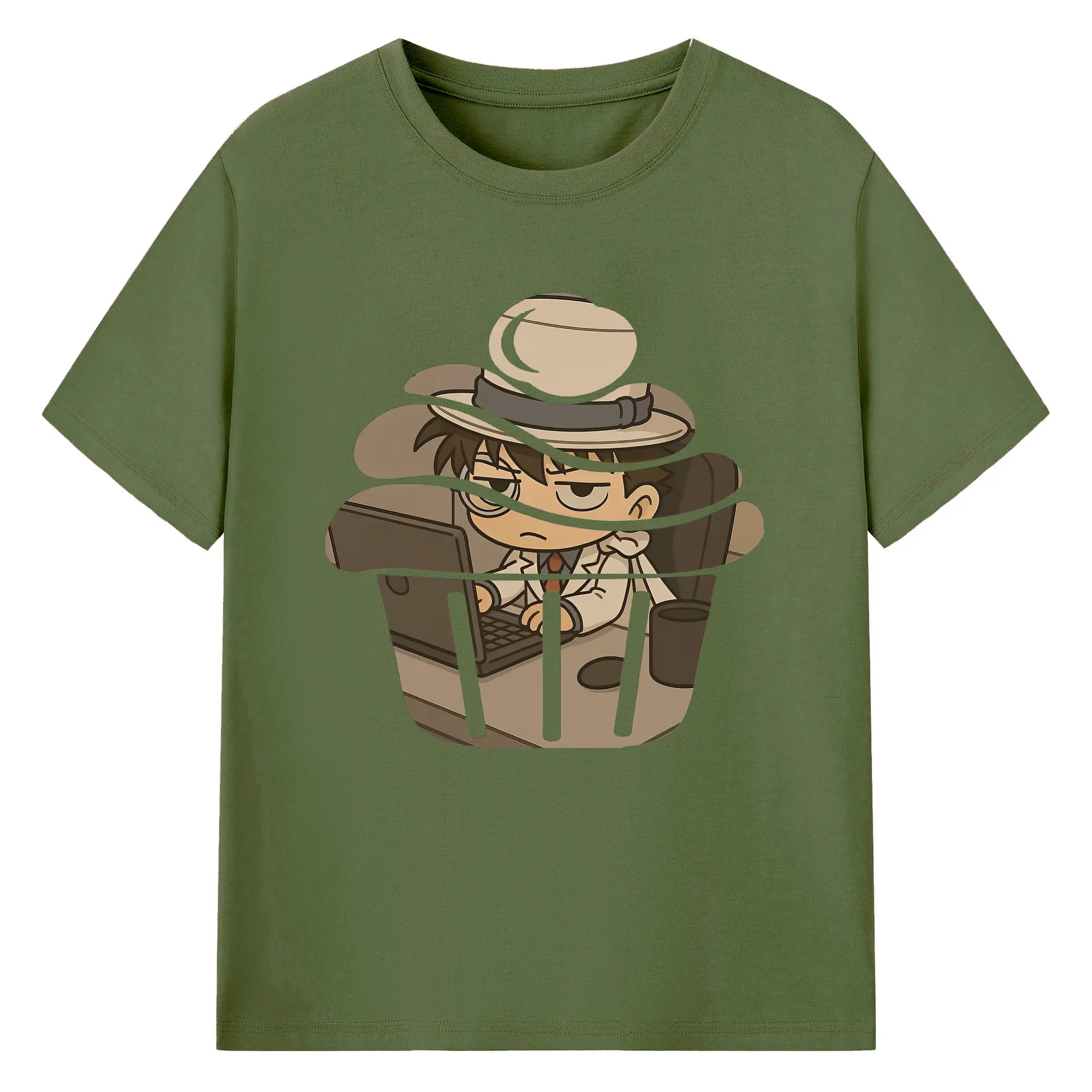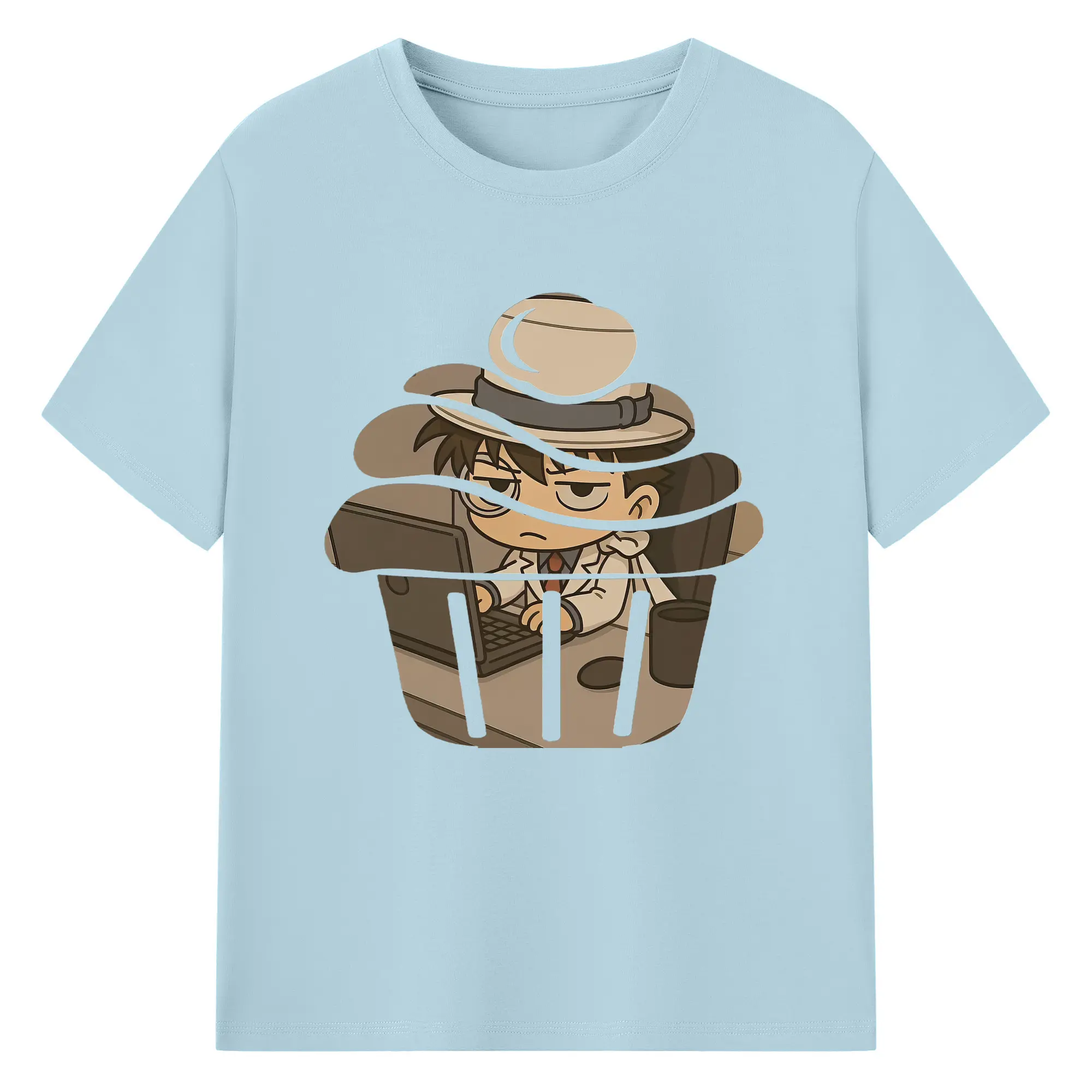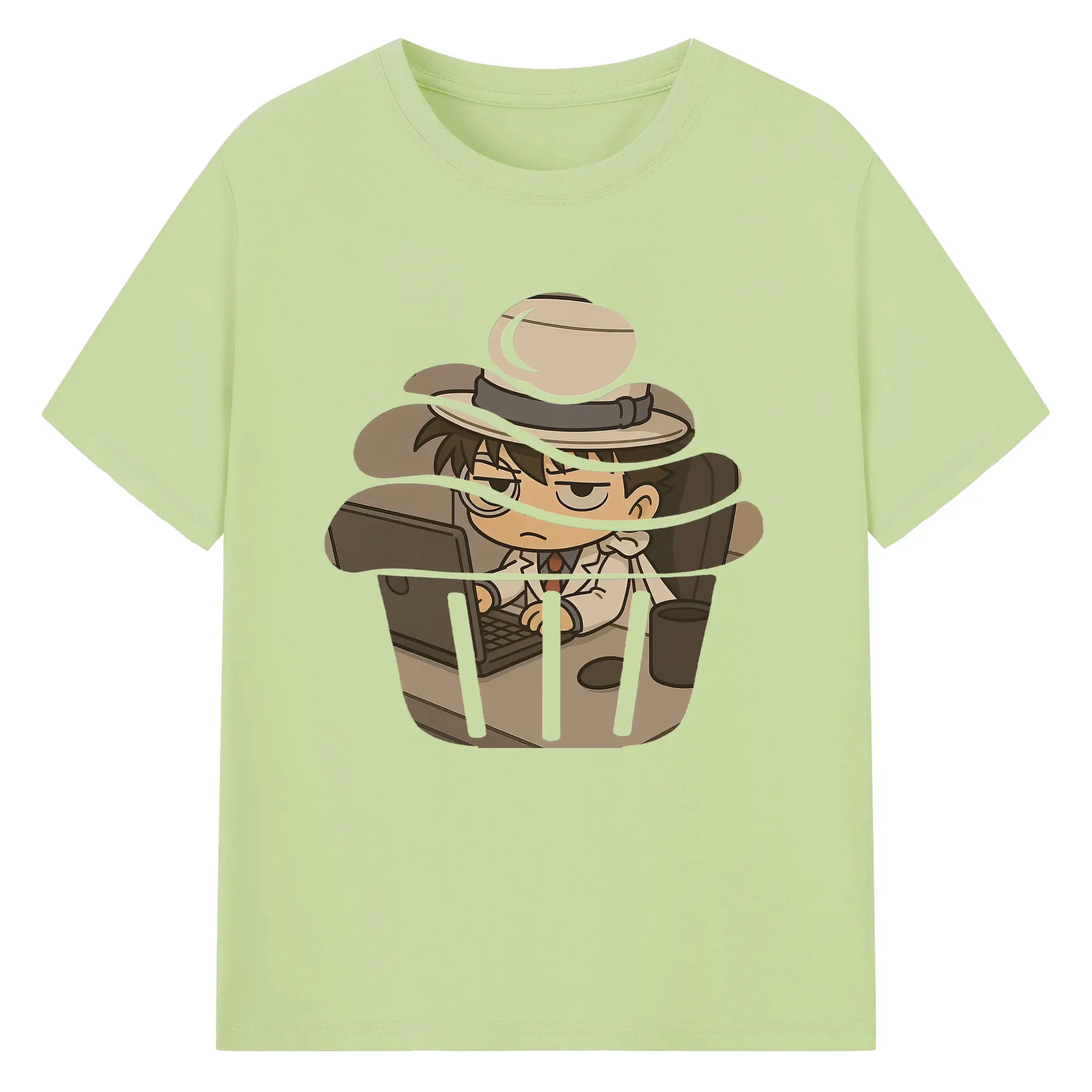 名探偵コナン グッズ 江戸川 コナン - 綿100% 半袖Tシャツ ・ バックプリント ・ 快適 通気性 ・ 日常使い 散歩 スポーツ用