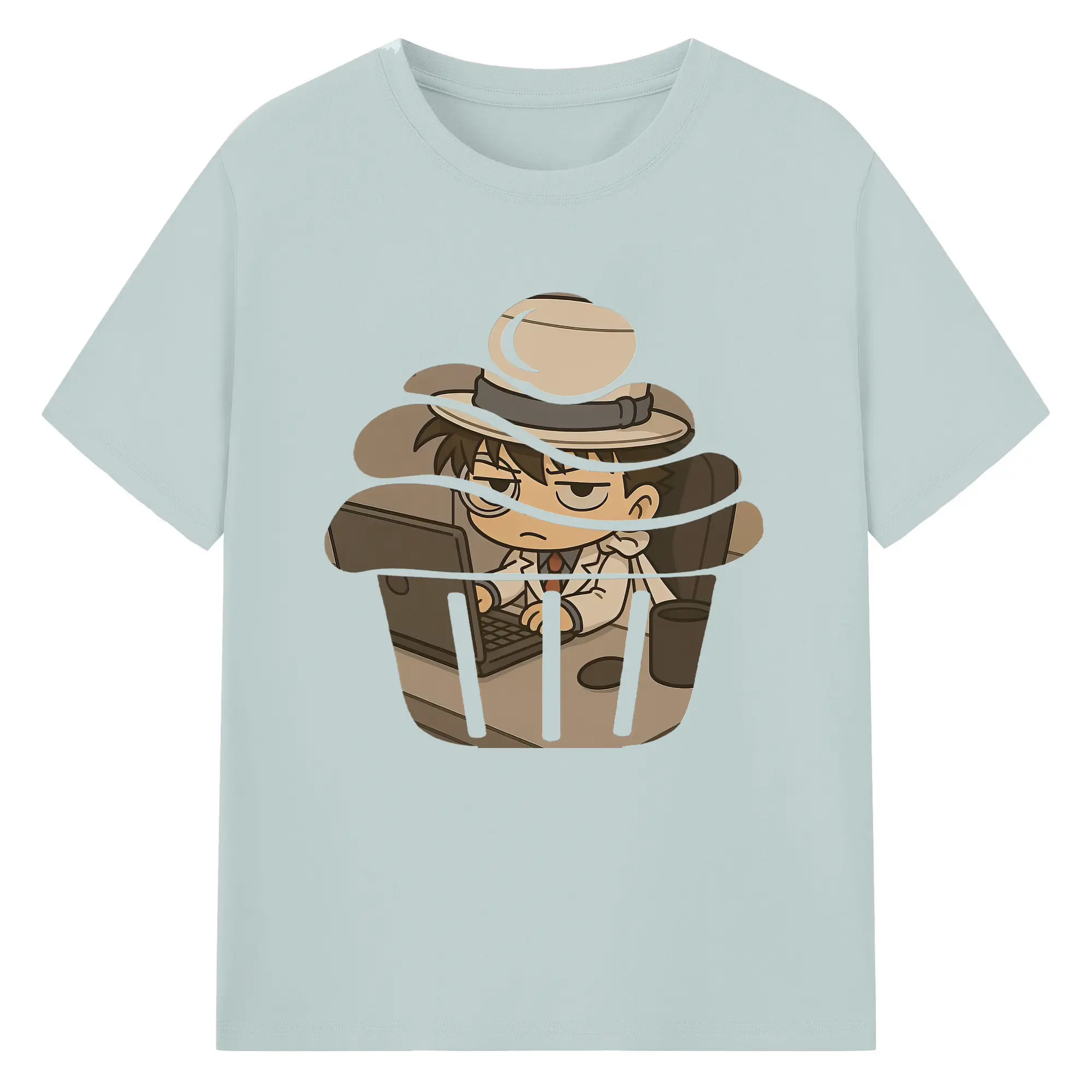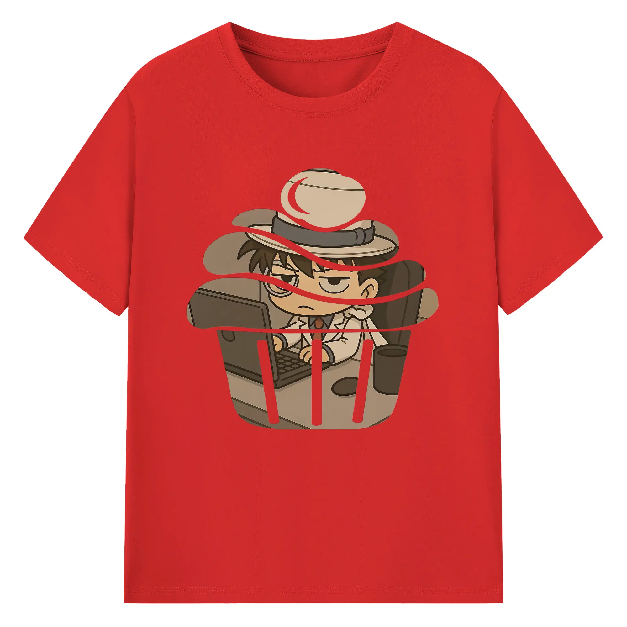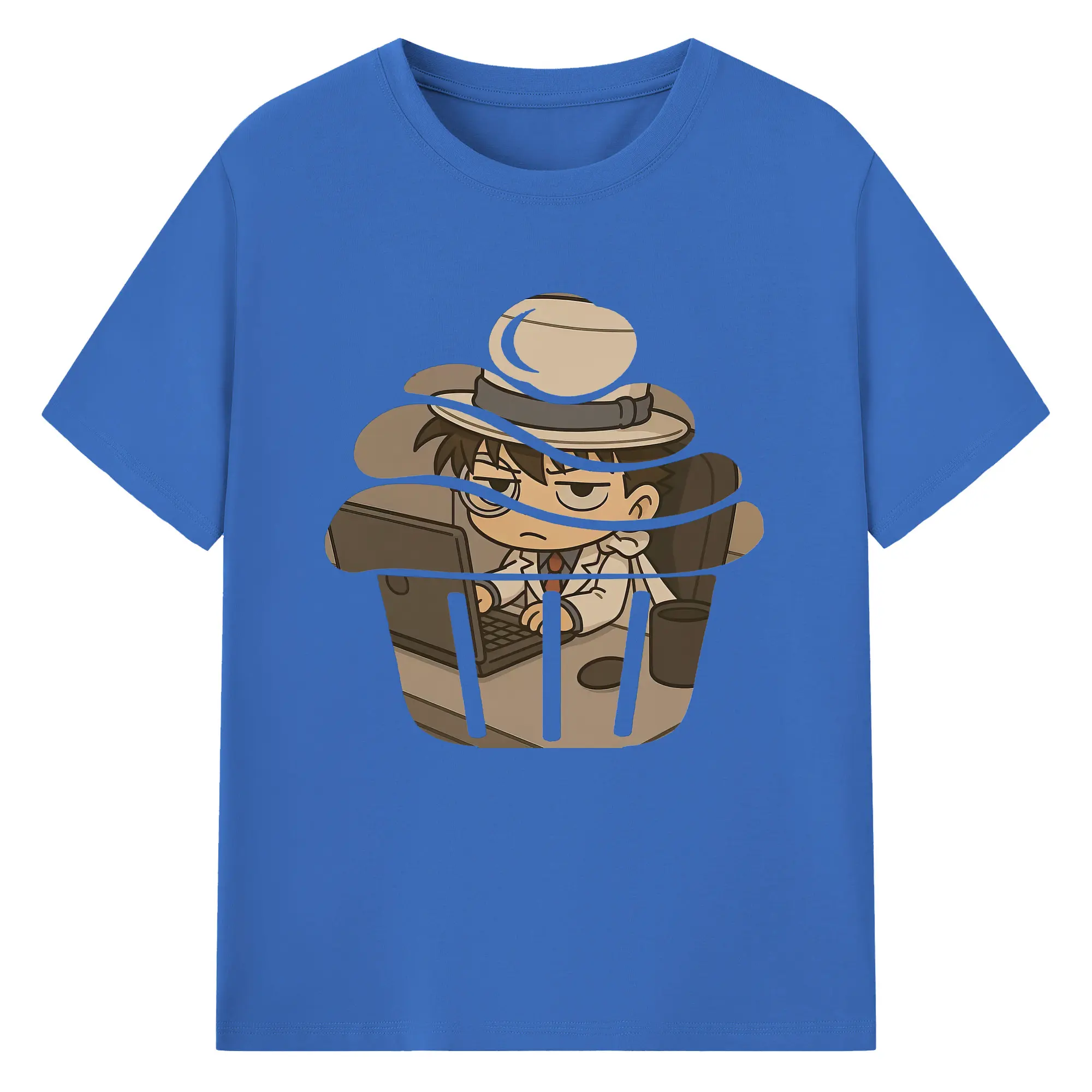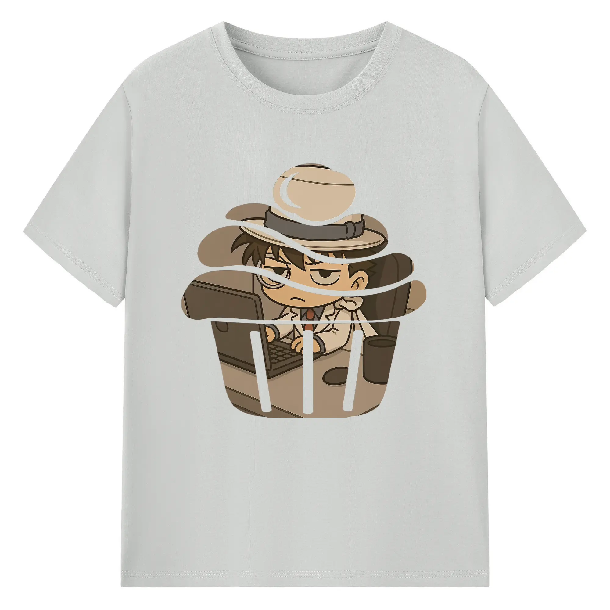 名探偵コナン グッズ 江戸川 コナン - 綿100% 半袖Tシャツ ・ バックプリント ・ 快適 通気性 ・ 日常使い 散歩 スポーツ用