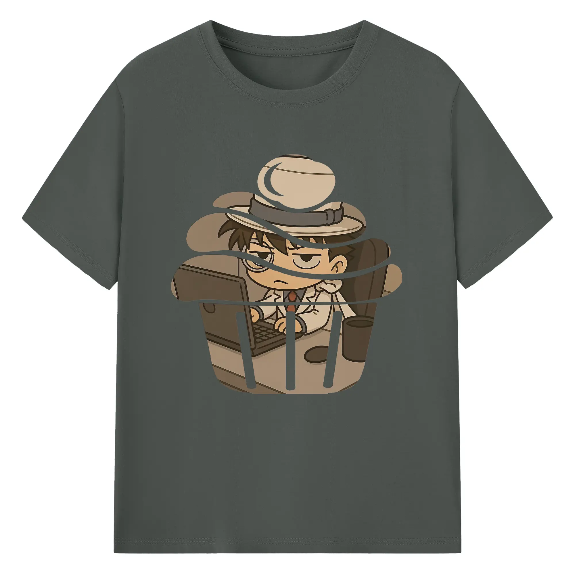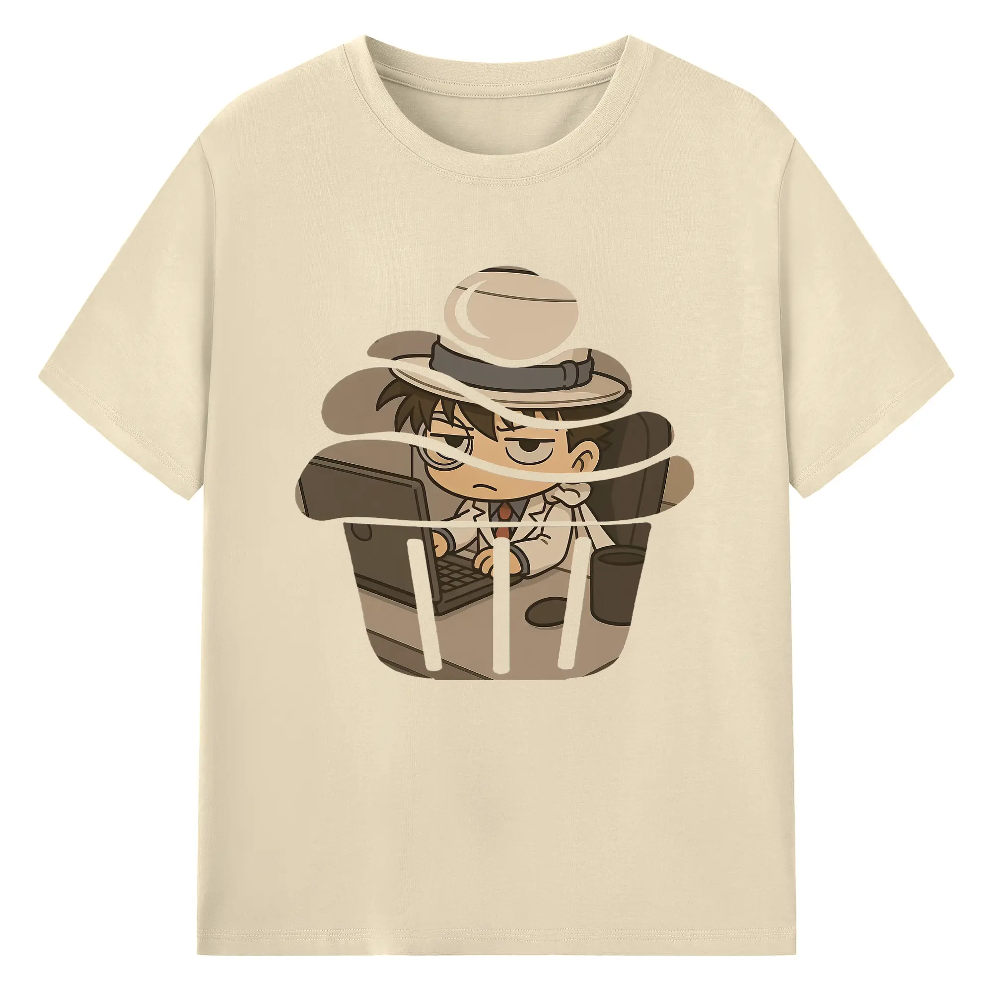 名探偵コナン グッズ 江戸川 コナン - 綿100% ヴィンテージ風 半袖Tシャツ ・ 背面プリント ・ 柔らか肌触り ・ 通気性 快適 ・ スポーツ カジュアル 外出用