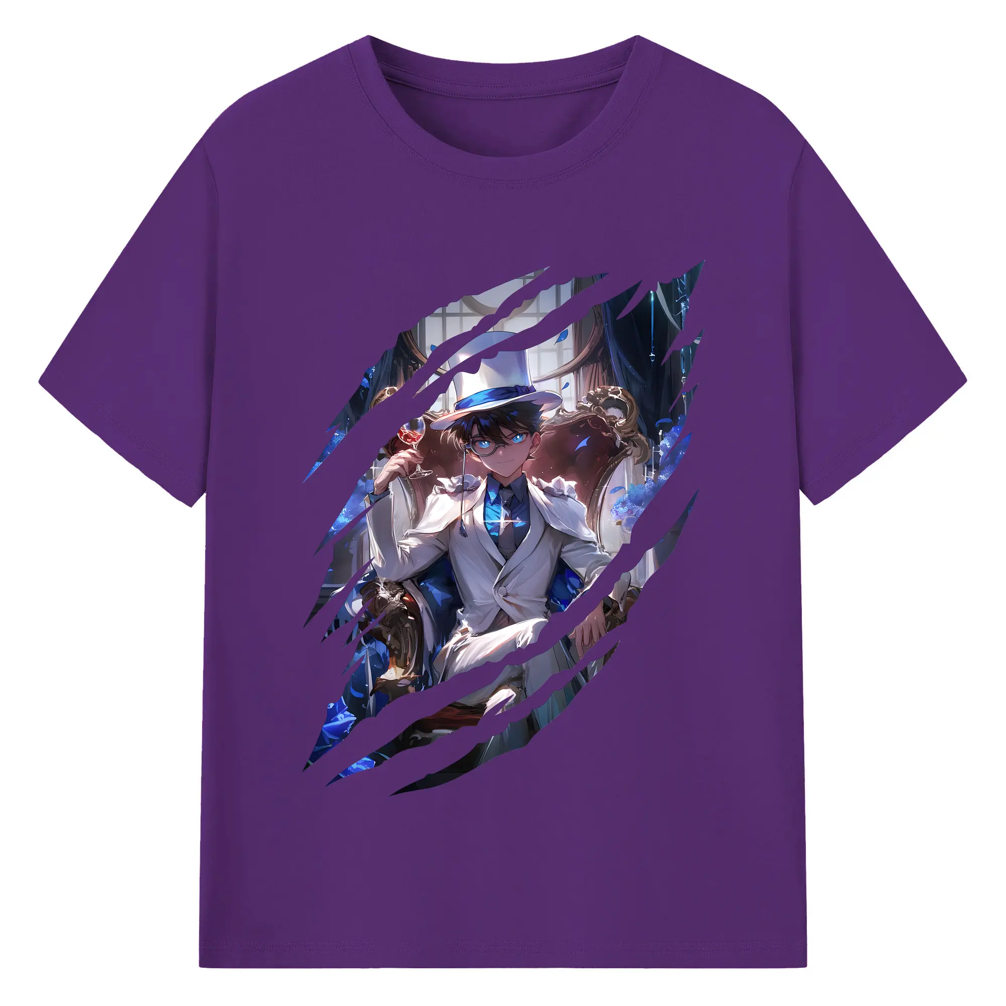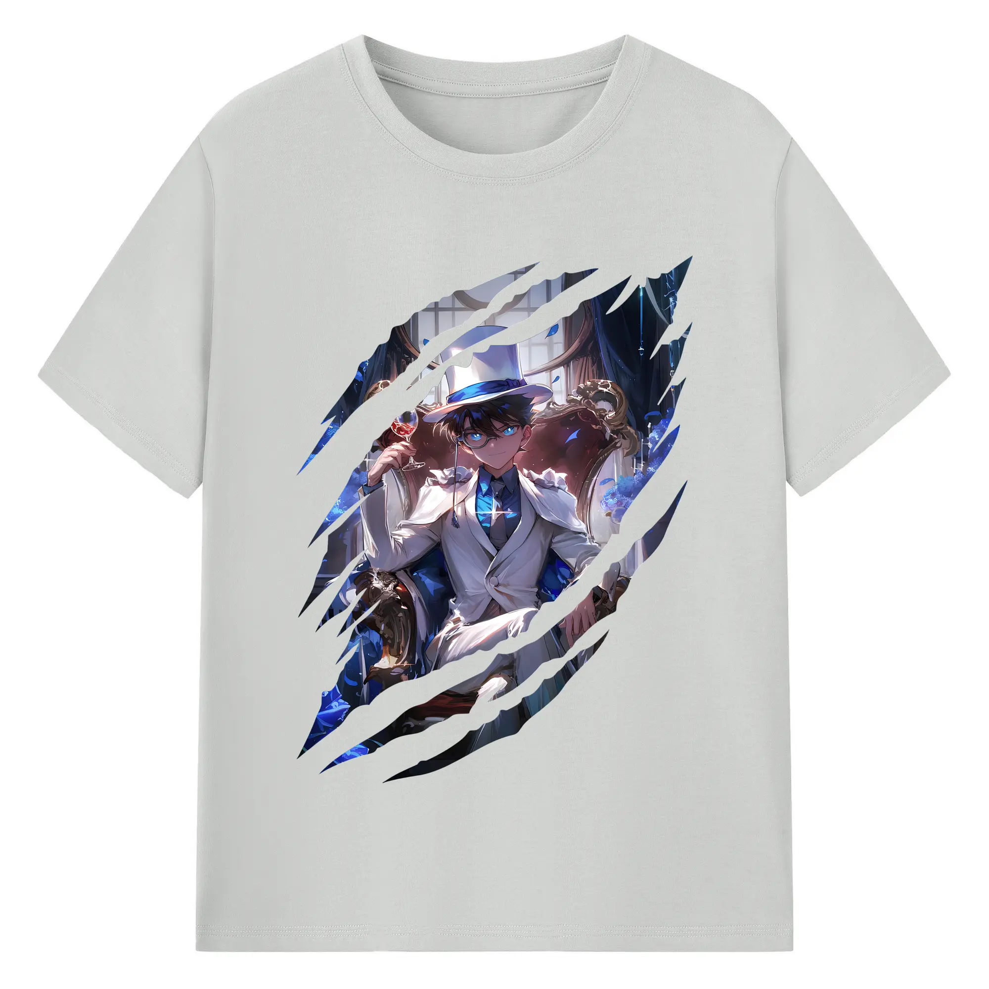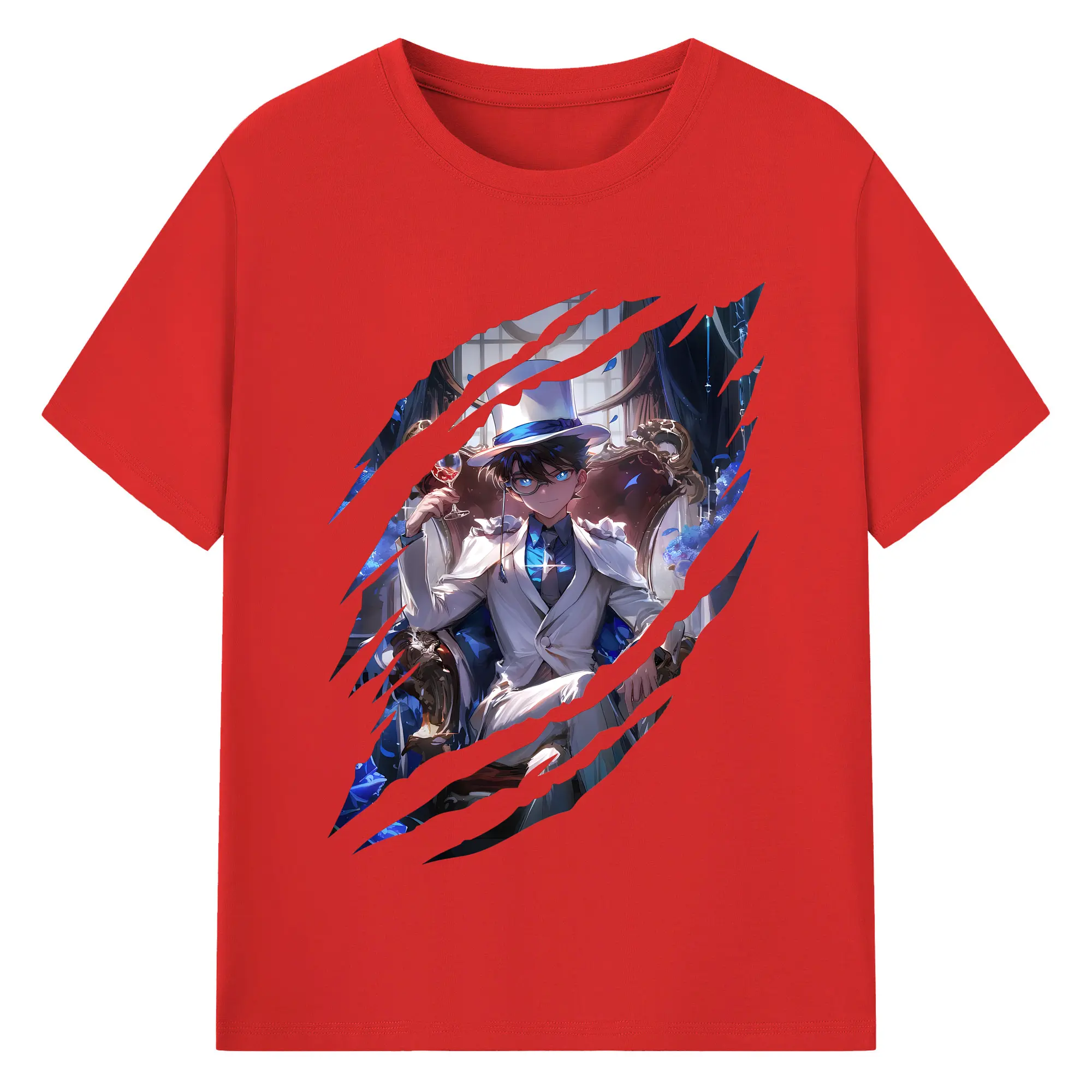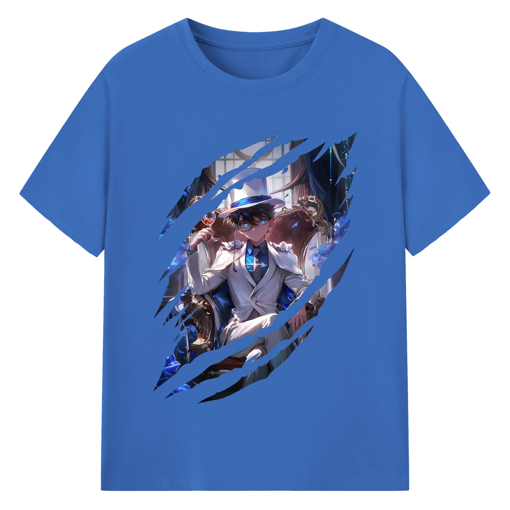 名探偵コナン グッズ 江戸川 コナン - 綿100% 半袖Tシャツ ・ バックプリント ・ 快適 通気性 ・ 日常使い 散歩 スポーツ用