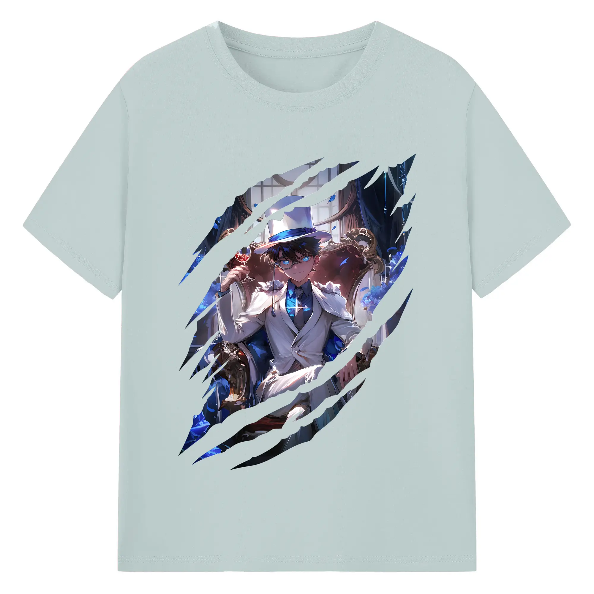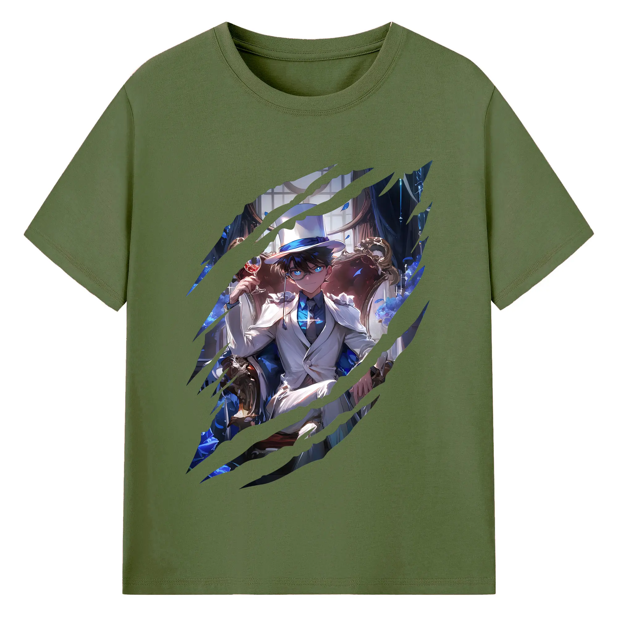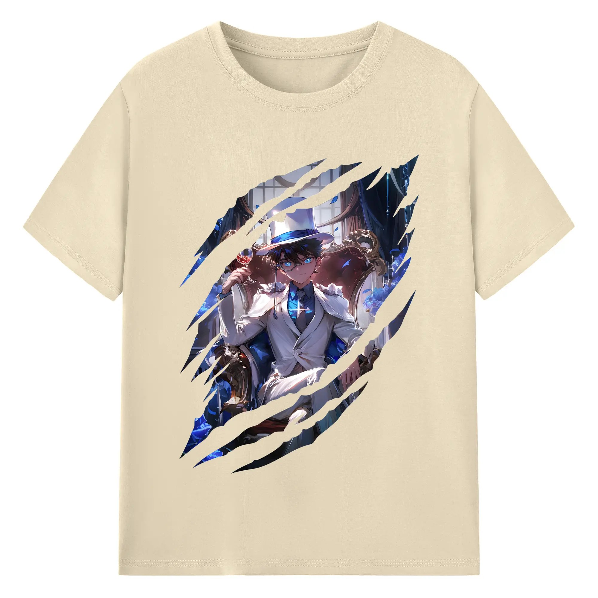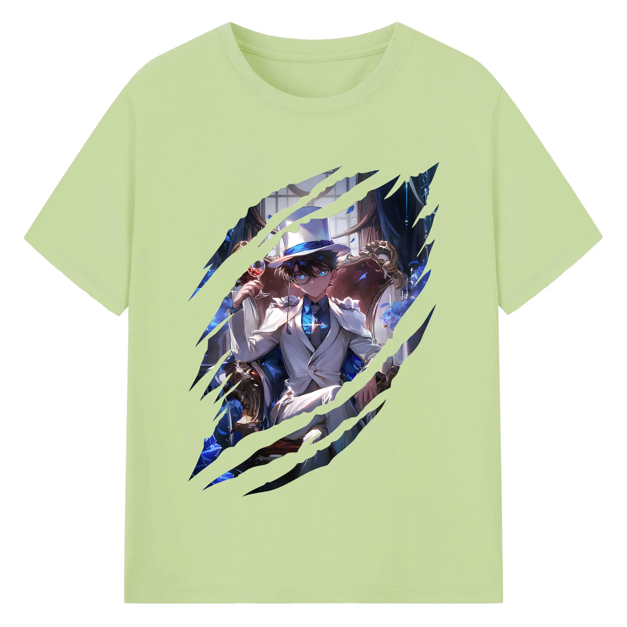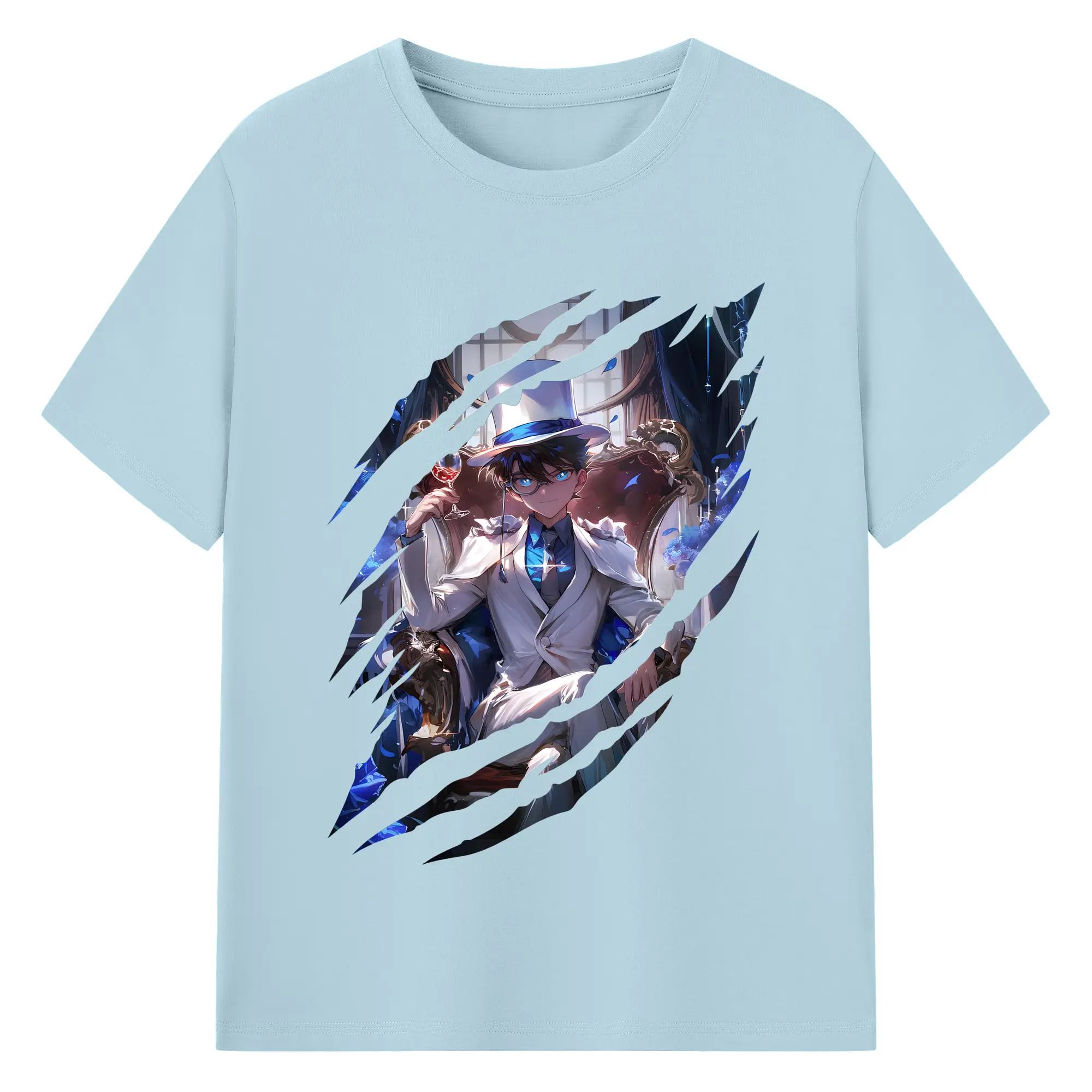 名探偵コナン グッズ 江戸川 コナン - 綿100% 半袖Tシャツ ・ バックプリント ・ 快適 通気性 ・ 日常使い 散歩 スポーツ用