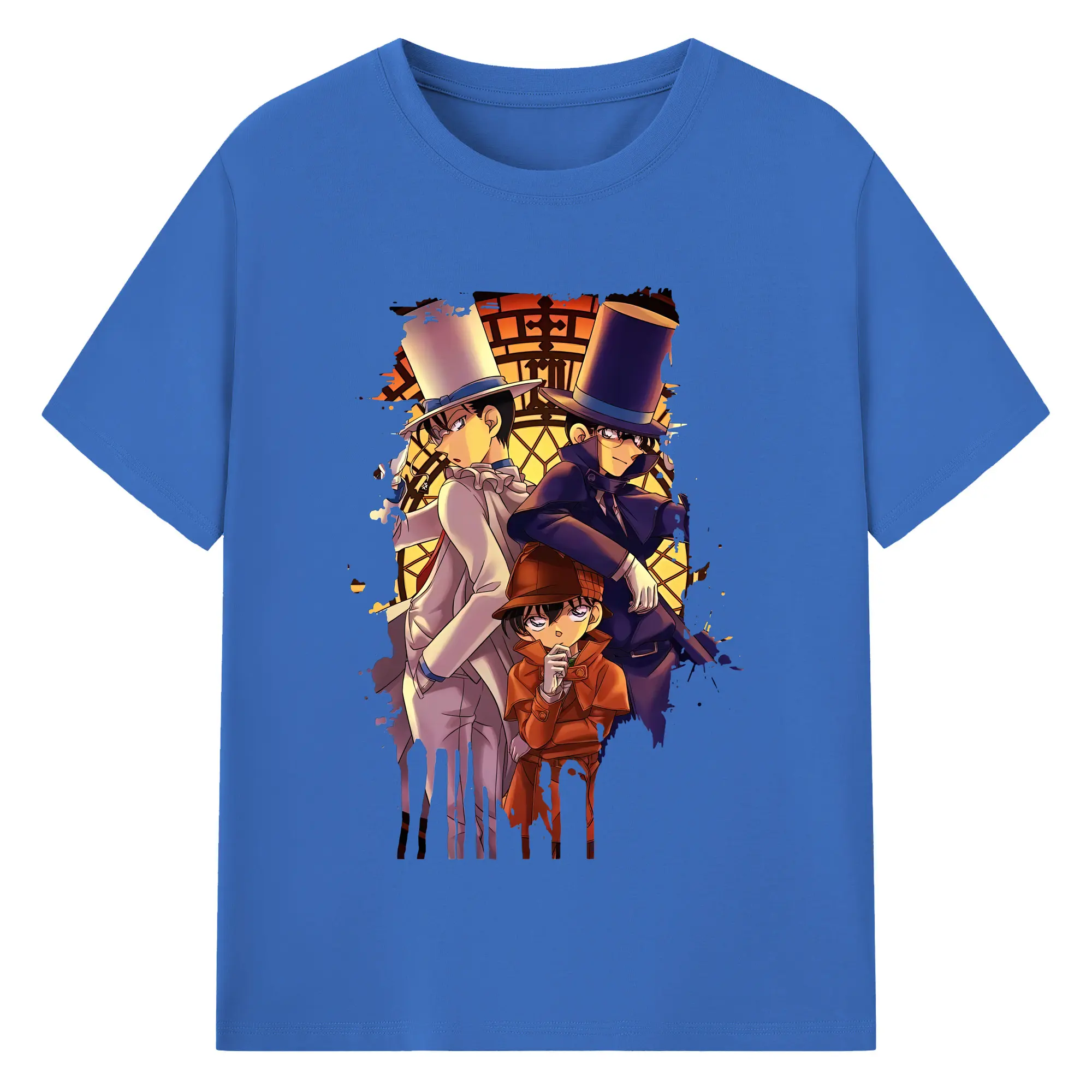 名探偵コナン グッズ 江戸川 コナン - 綿100% 半袖Tシャツ ・ バックプリント ・ 快適 通気性 ・ 日常使い 散歩 スポーツ用