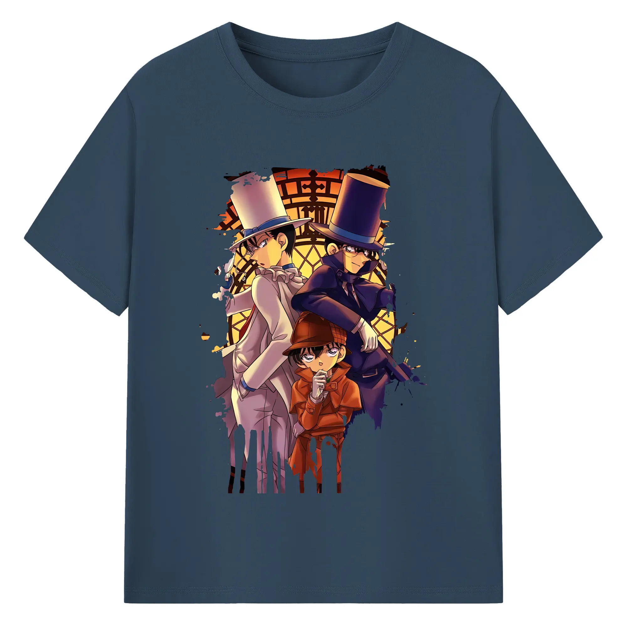 名探偵コナン グッズ 江戸川 コナン - 綿100% ヴィンテージ風 半袖Tシャツ ・ フロントプリント ・ 柔らか肌触り ・ 通気性 快適 ・ スポーツ カジュアル 外出用