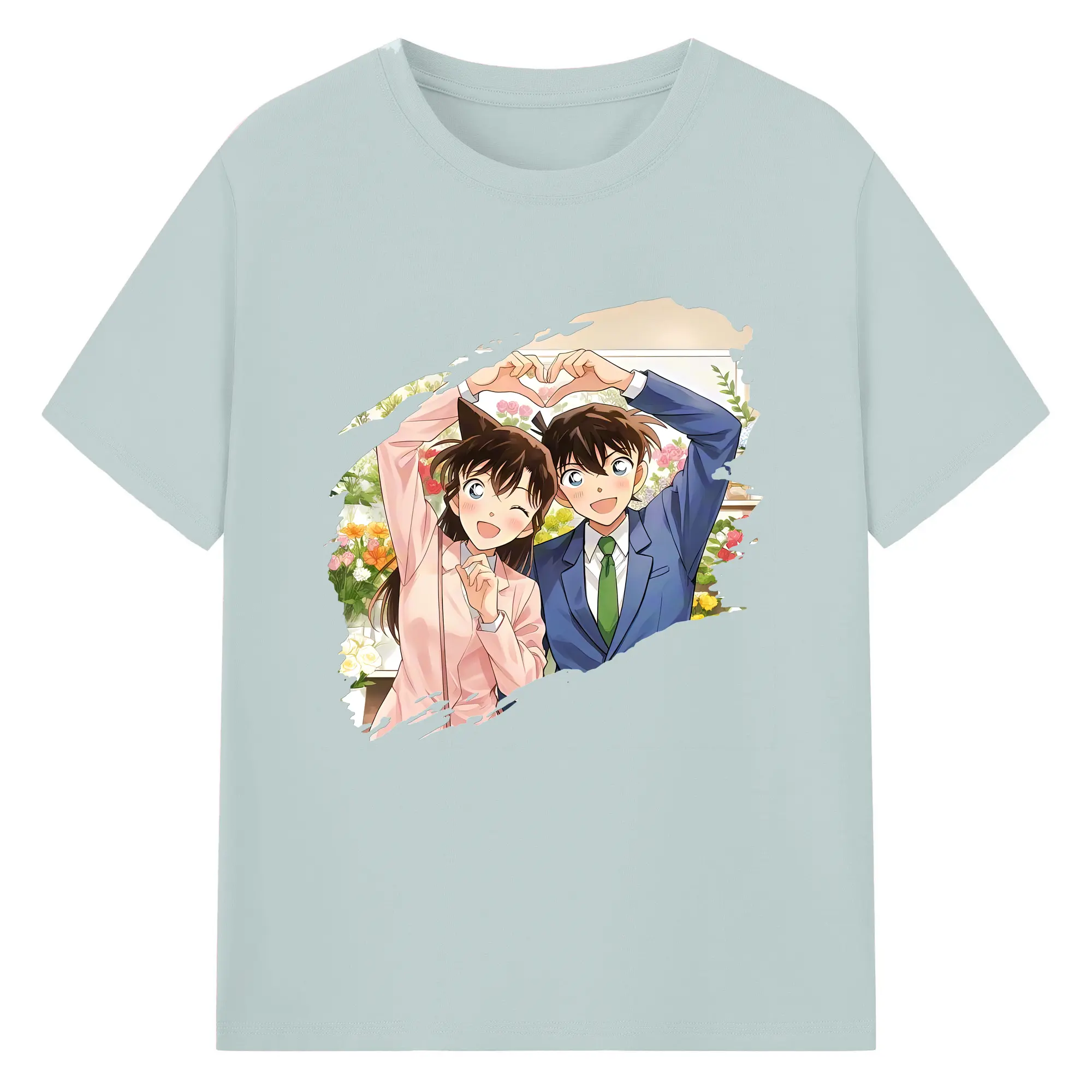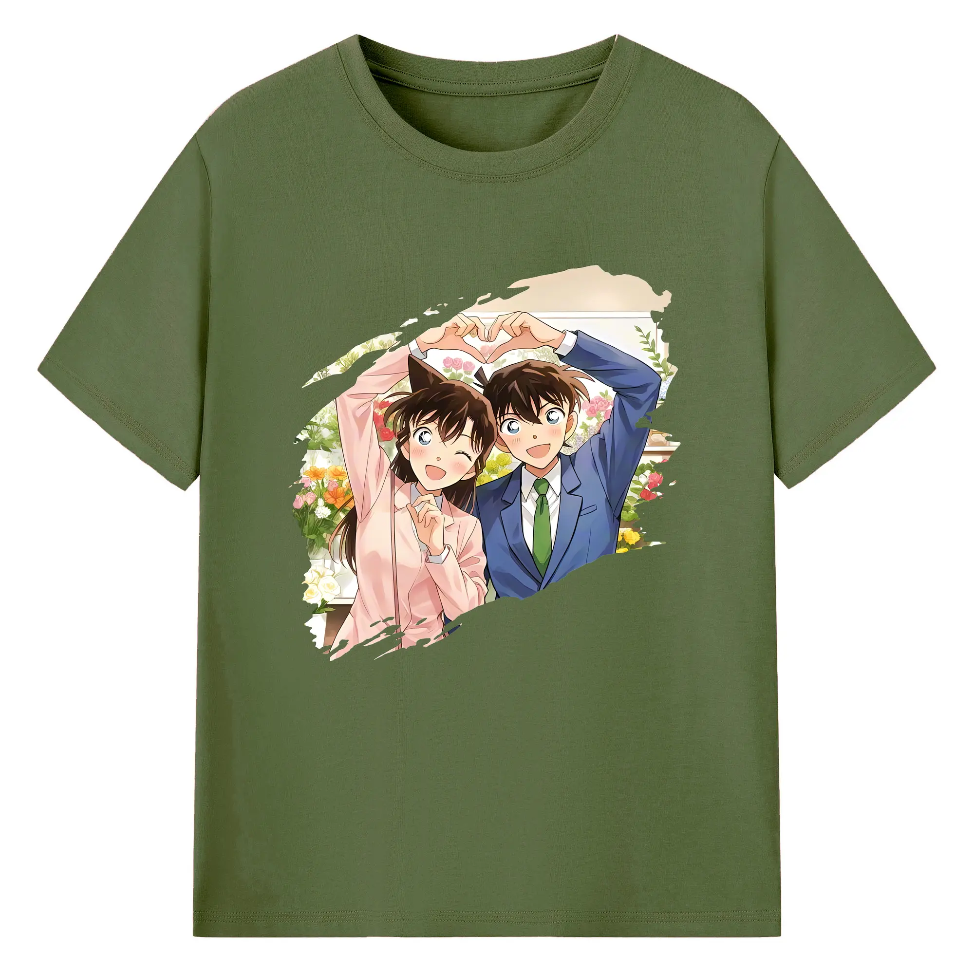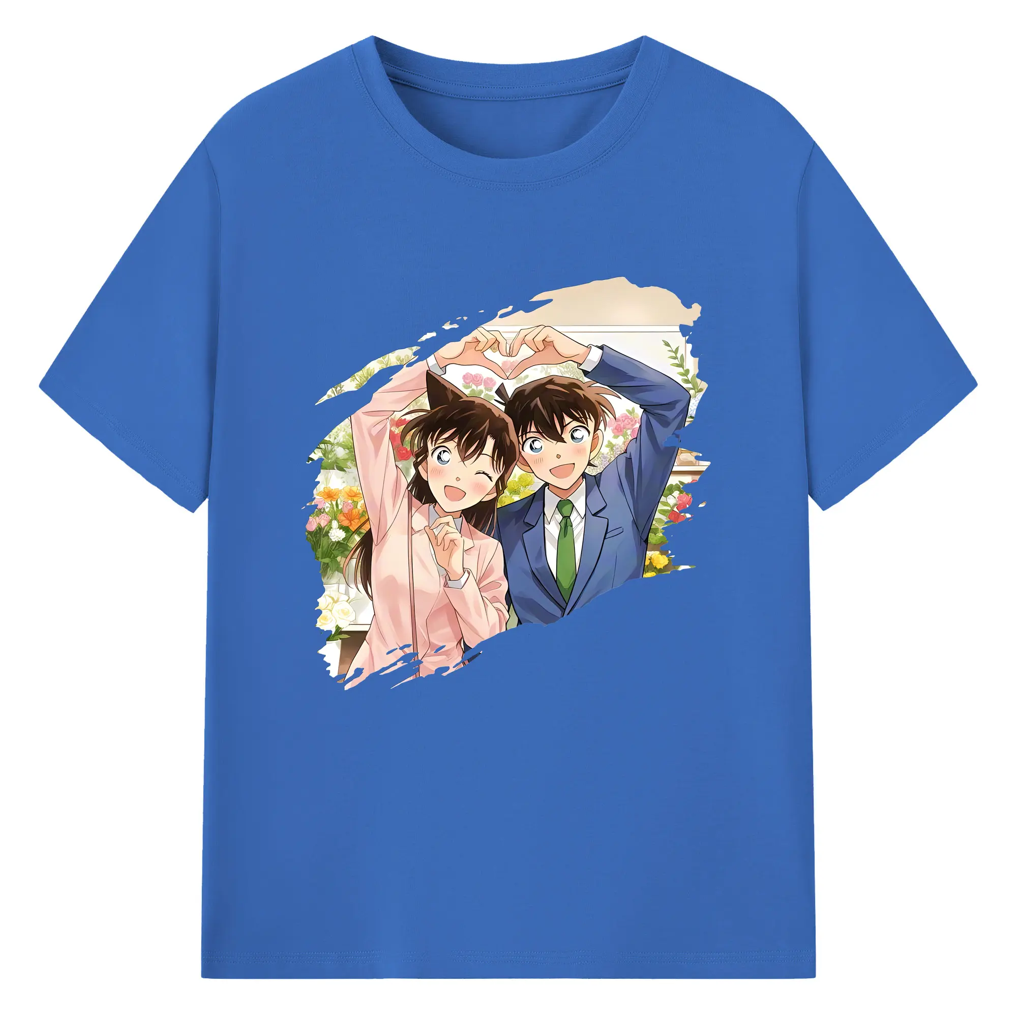 名探偵コナン グッズ 江戸川 コナン - 綿100% 半袖Tシャツ ・ バックプリント ・ 快適 通気性 ・ 日常使い 散歩 スポーツ用