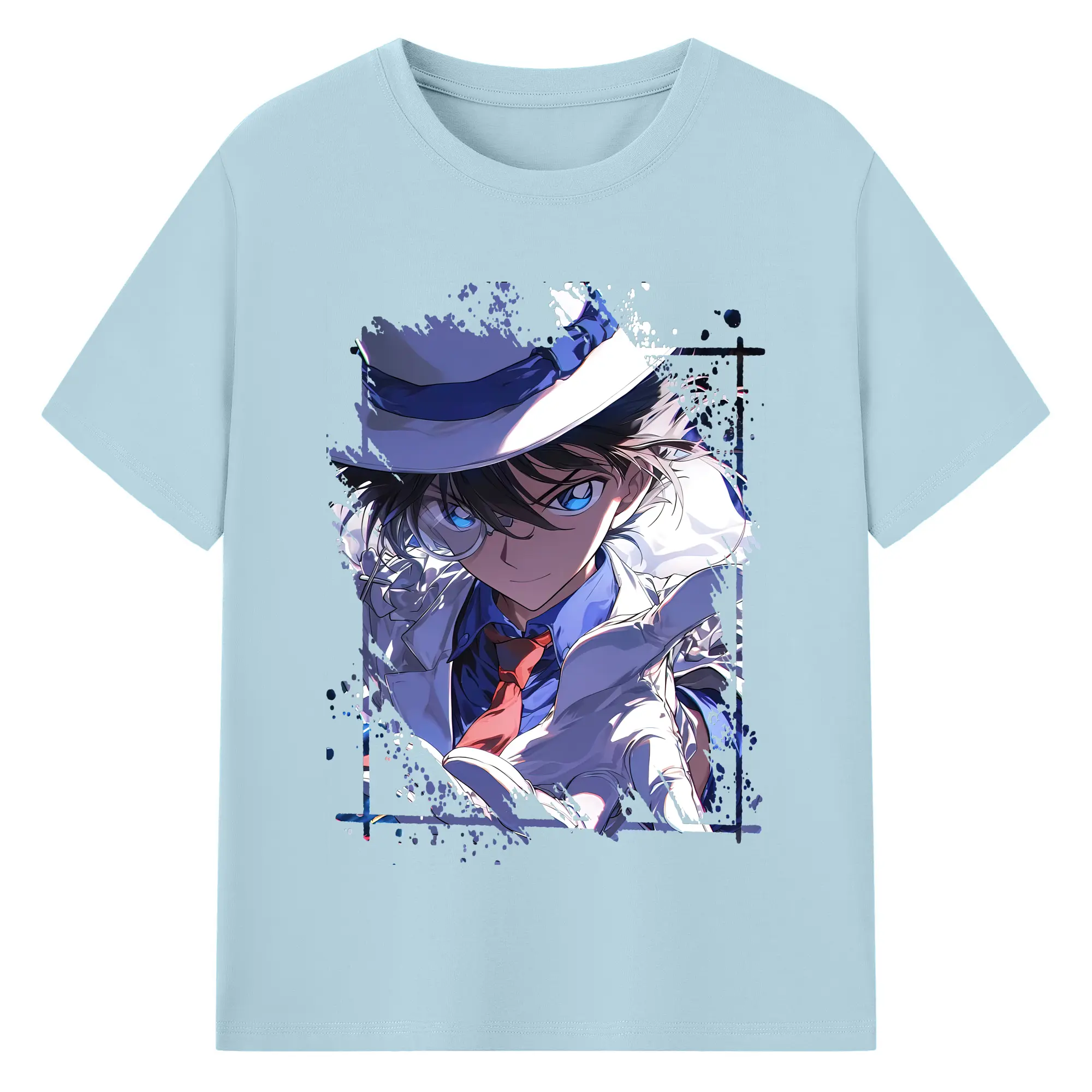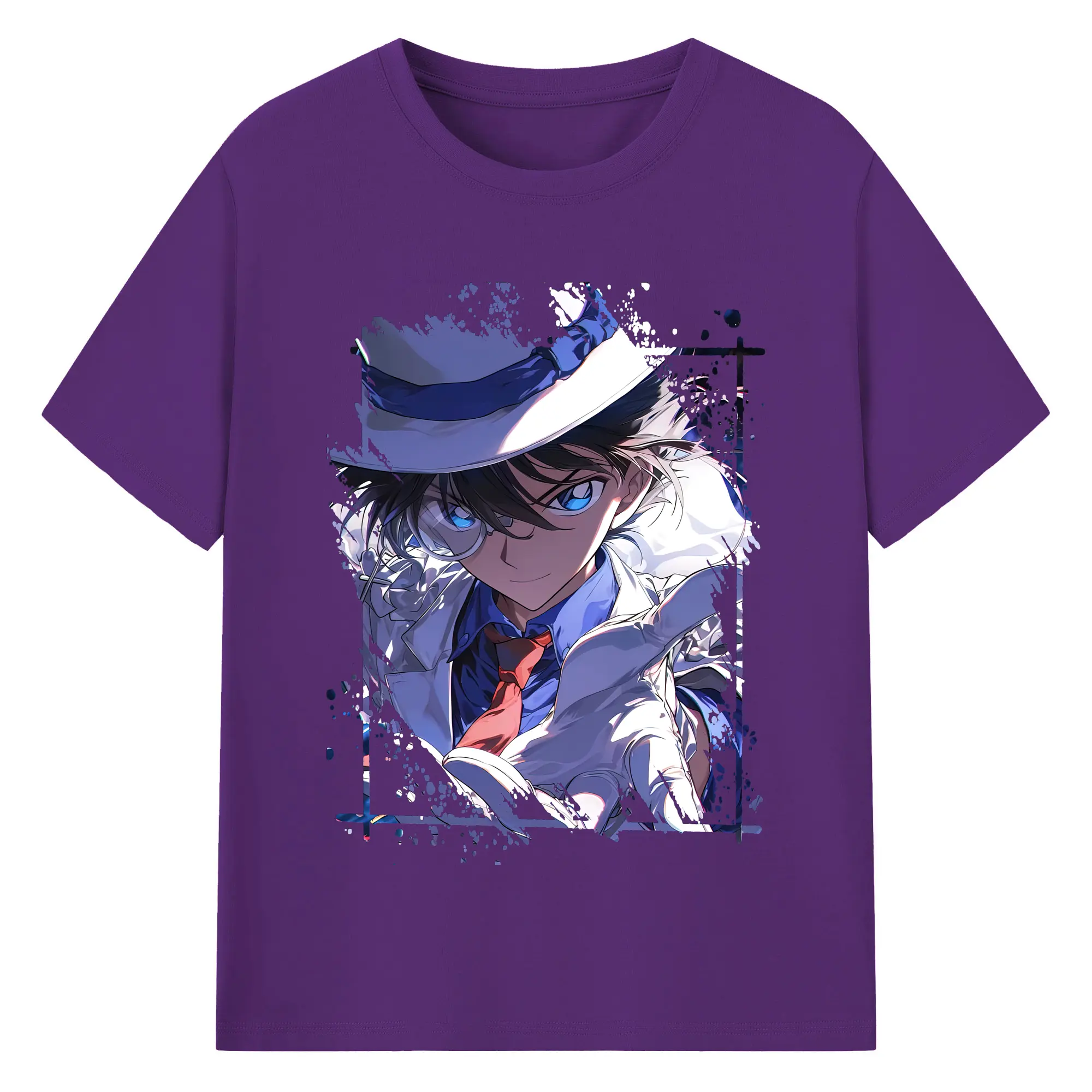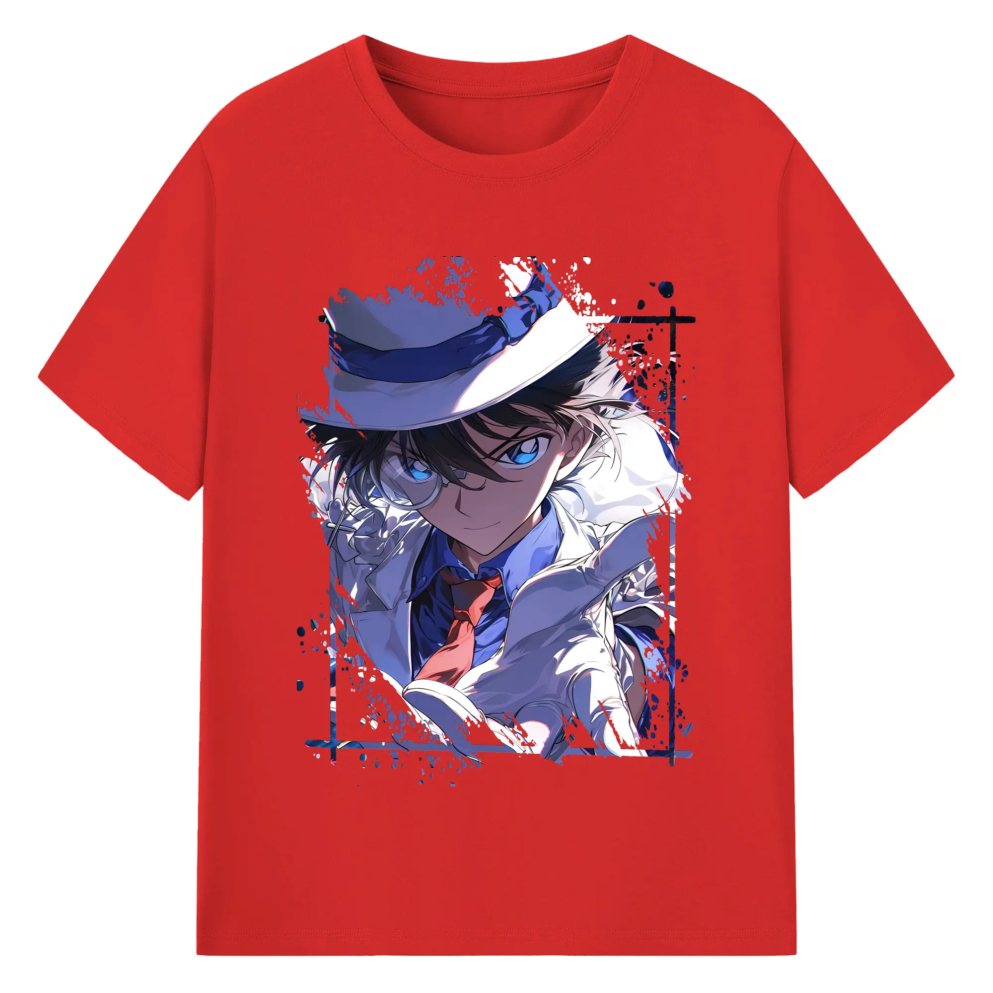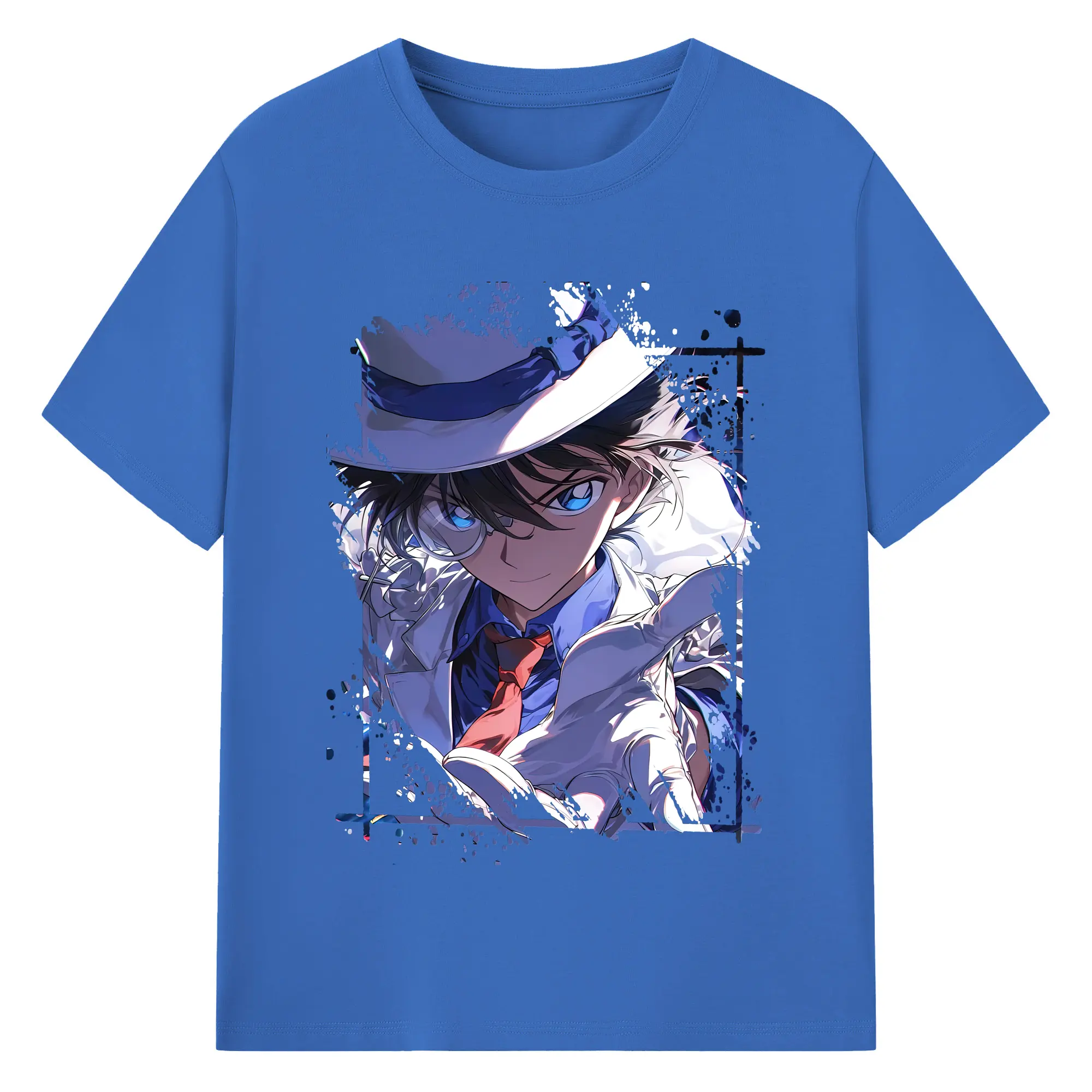 名探偵コナン グッズ 江戸川 コナン - 綿100% 半袖Tシャツ ・ バックプリント ・ 快適 通気性 ・ 日常使い 散歩 スポーツ用
