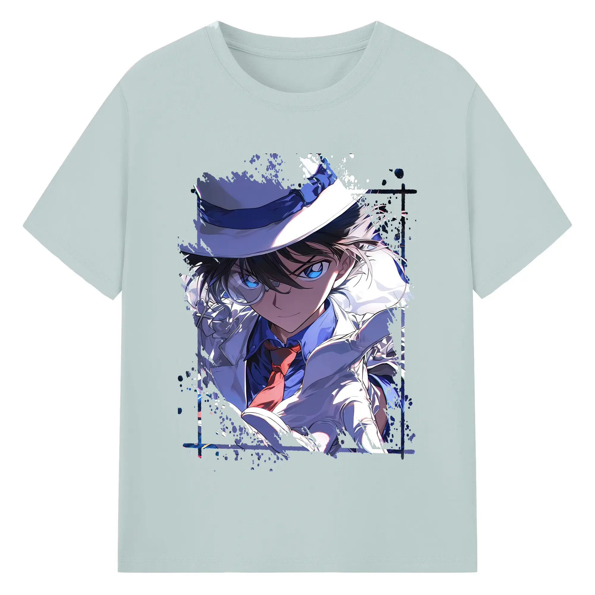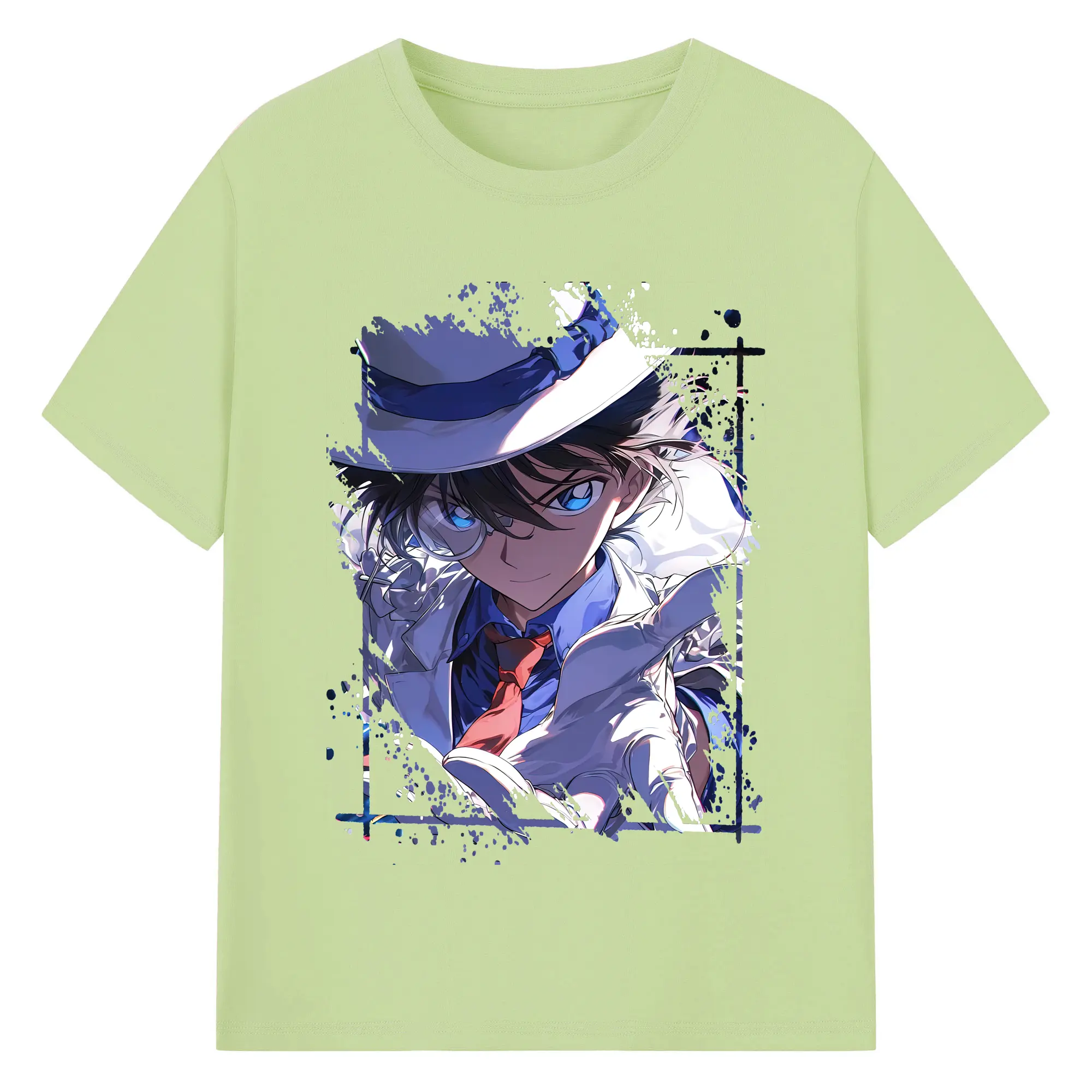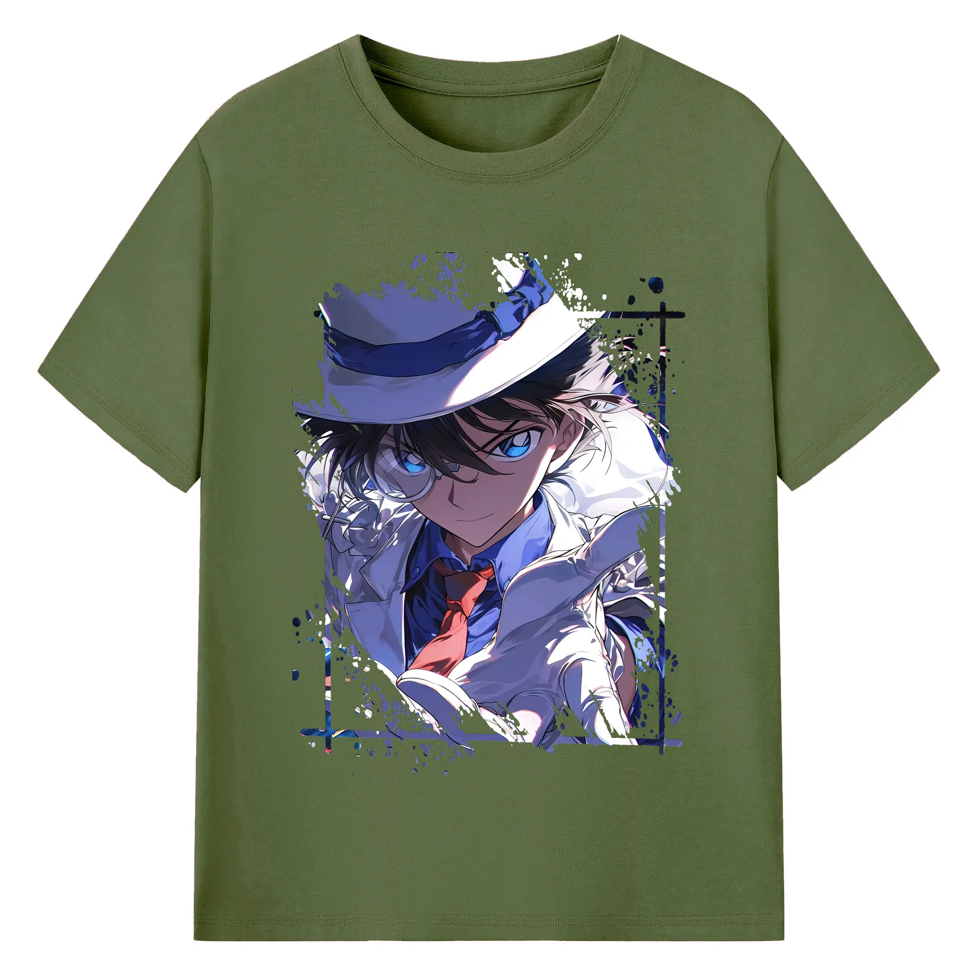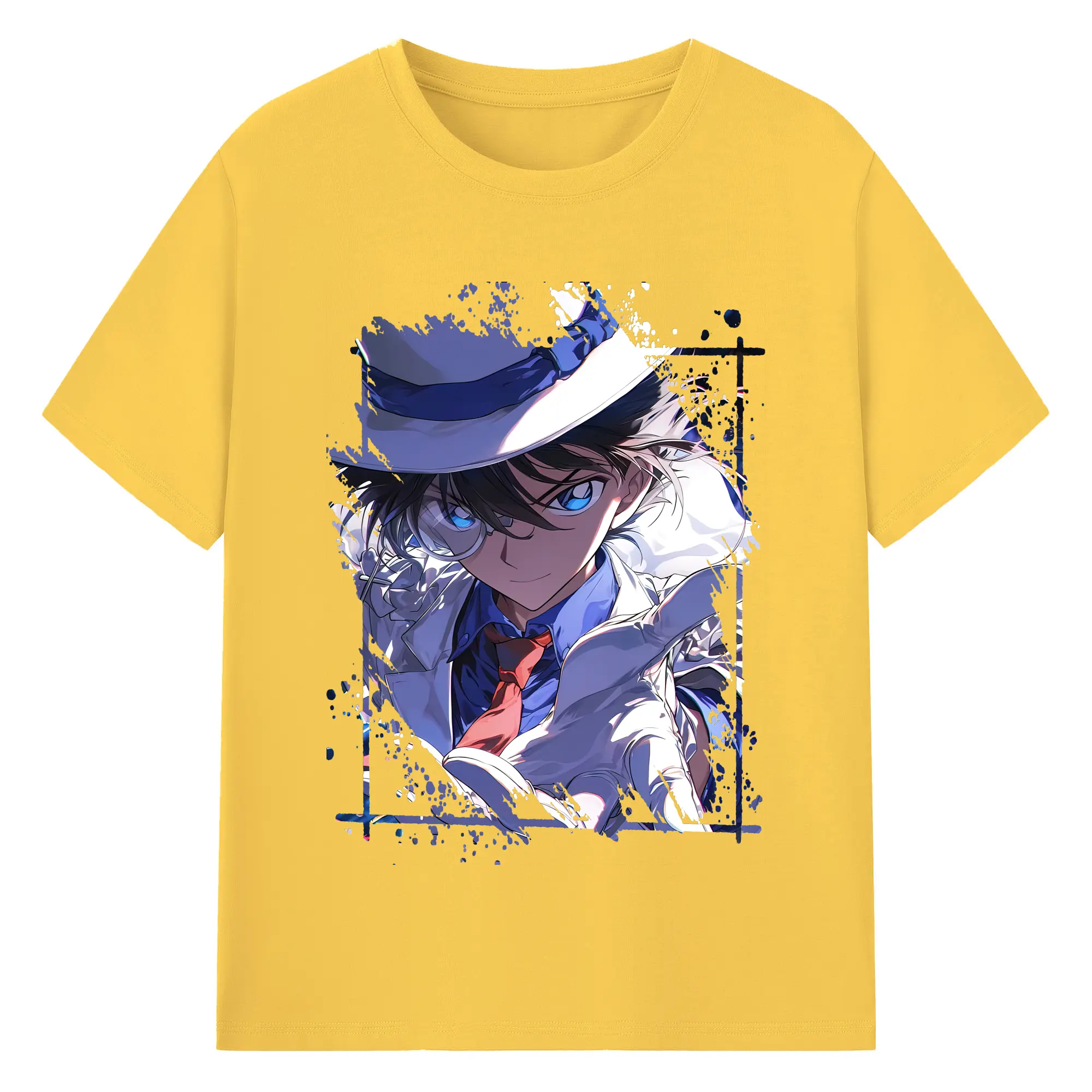 名探偵コナン グッズ 江戸川 コナン - 綿100% 半袖Tシャツ ・ バックプリント ・ 快適 通気性 ・ 日常使い 散歩 スポーツ用