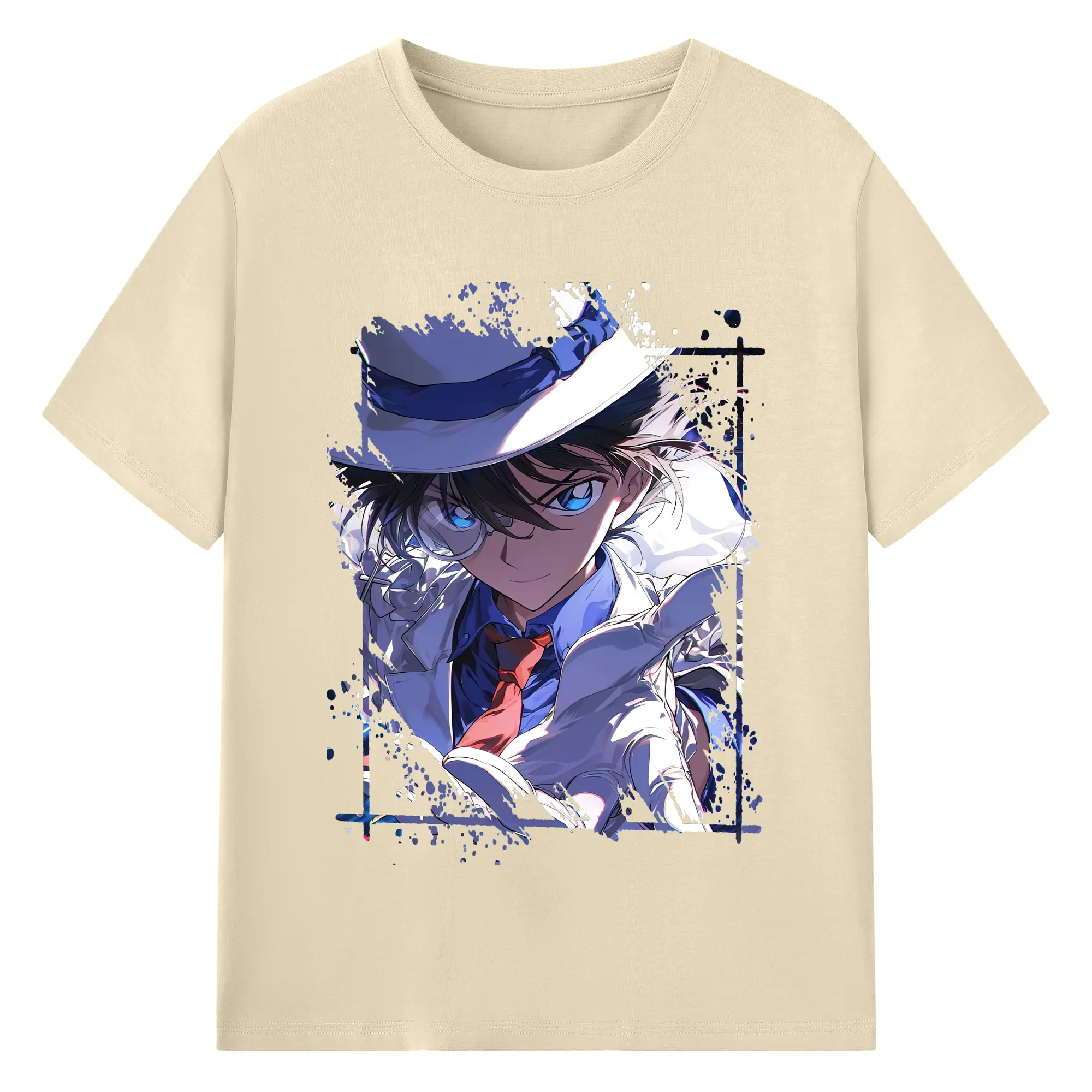名探偵コナン グッズ 江戸川 コナン - 綿100% ヴィンテージ風 半袖Tシャツ ・ フロントプリント ・ 柔らか肌触り ・ 通気性 快適 ・ スポーツ カジュアル 外出用