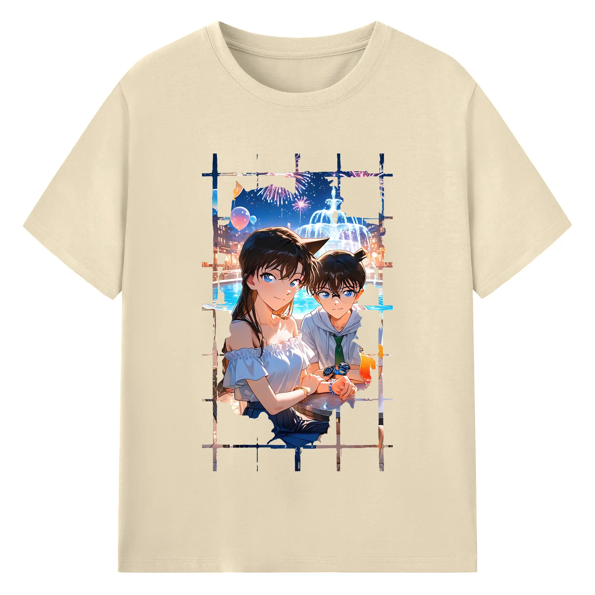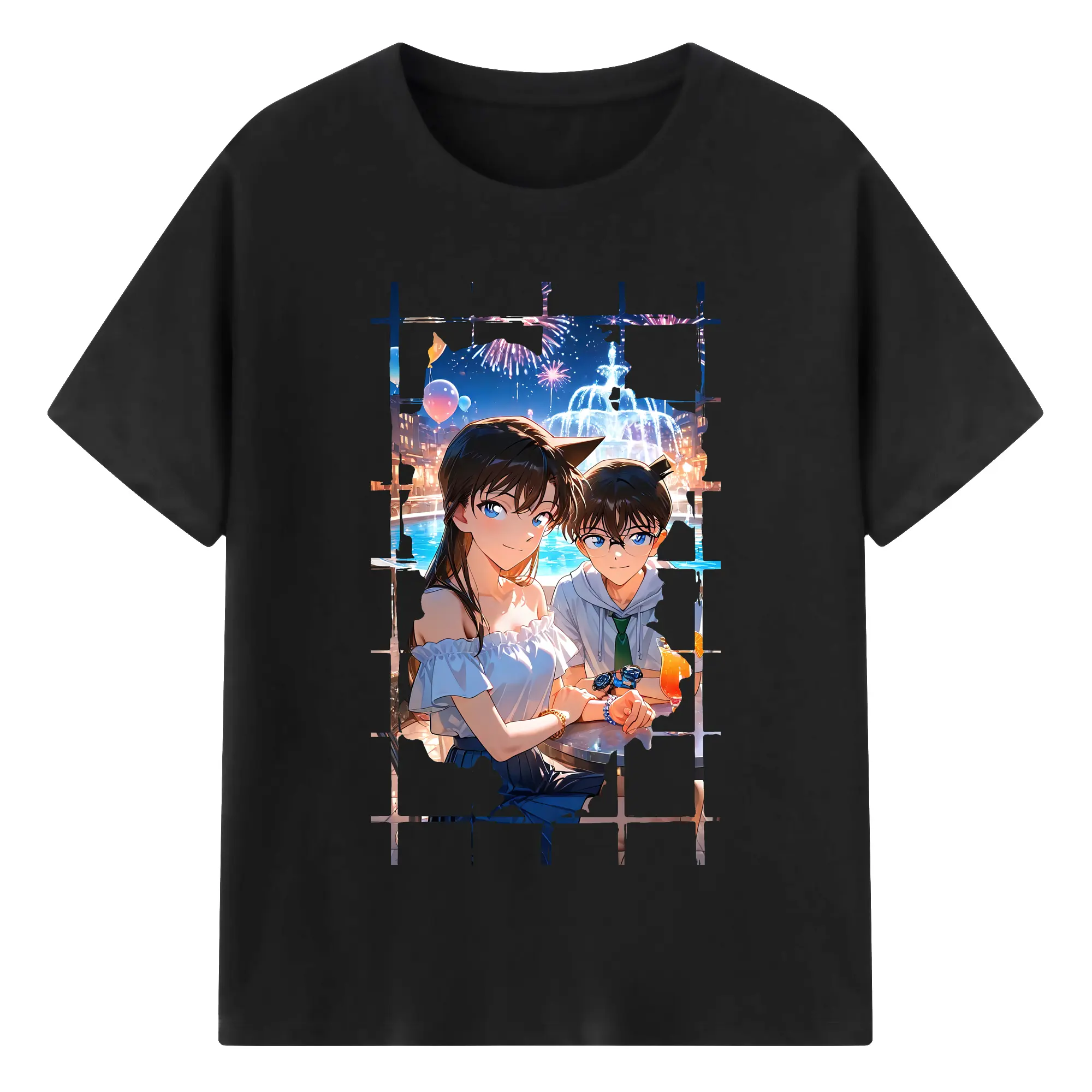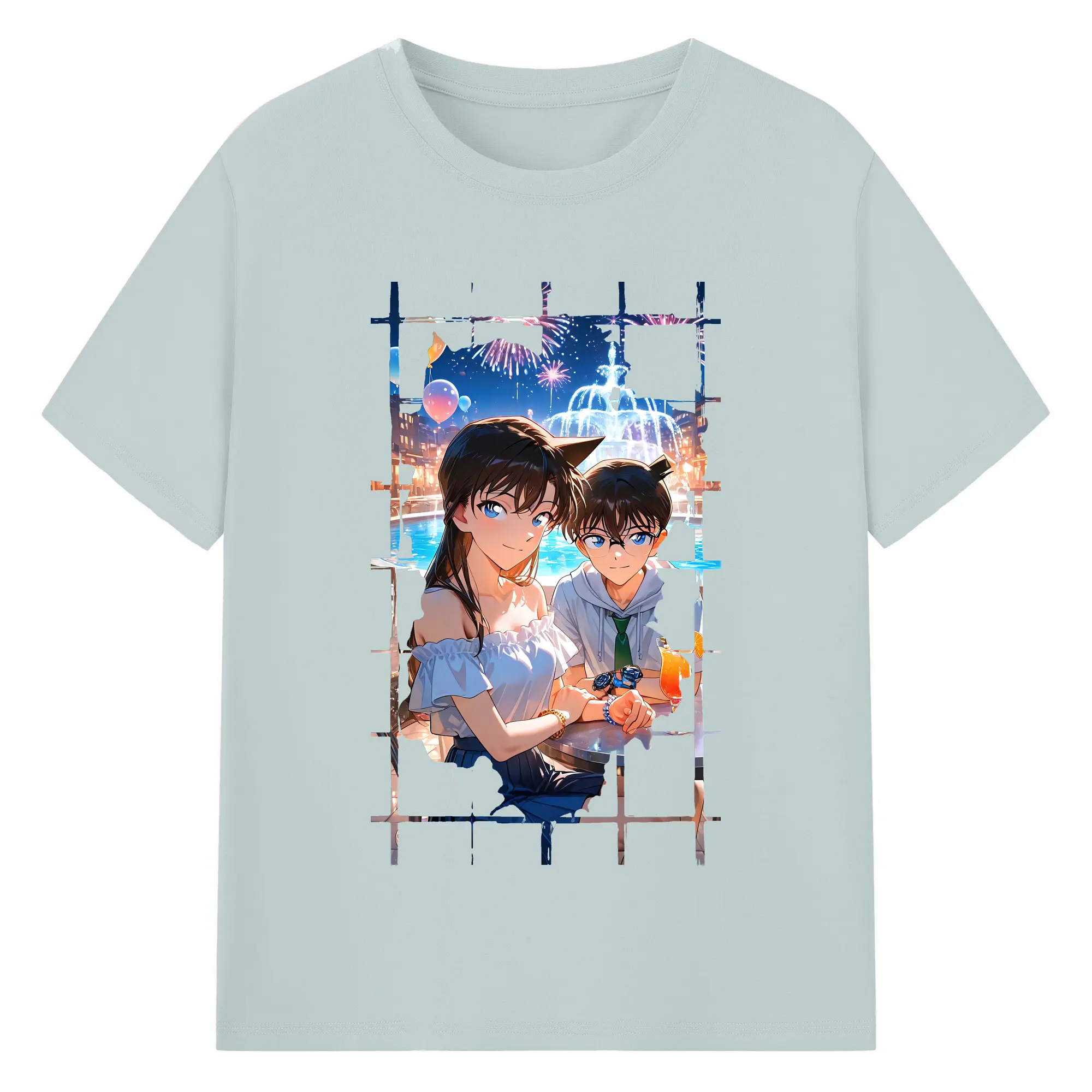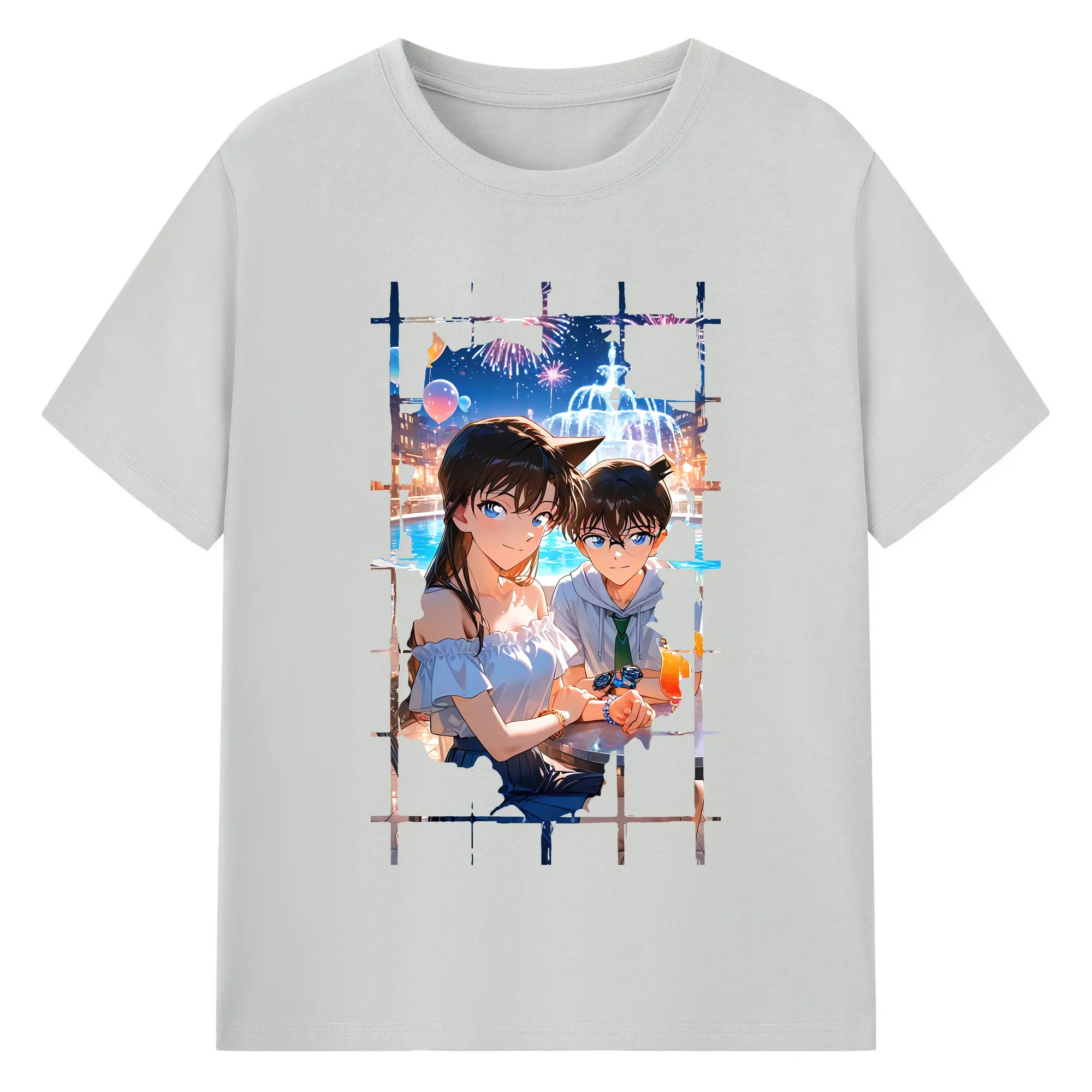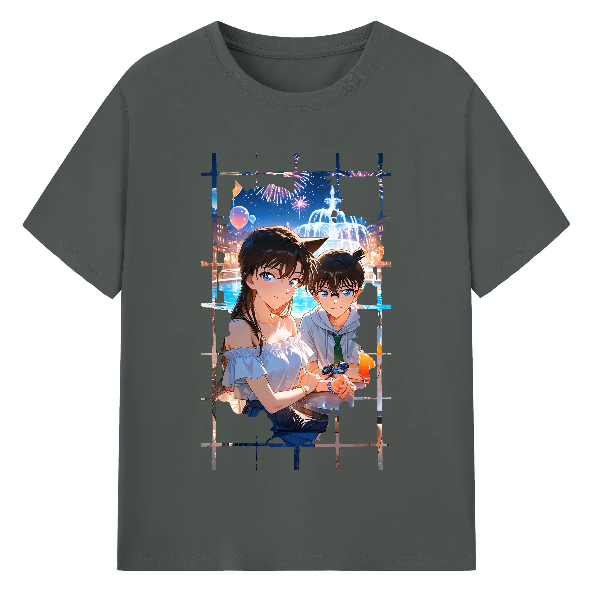 名探偵コナン グッズ 江戸川 コナン - 綿100% 半袖Tシャツ ・ バックプリント ・ 快適 通気性 ・ 日常使い 散歩 スポーツ用