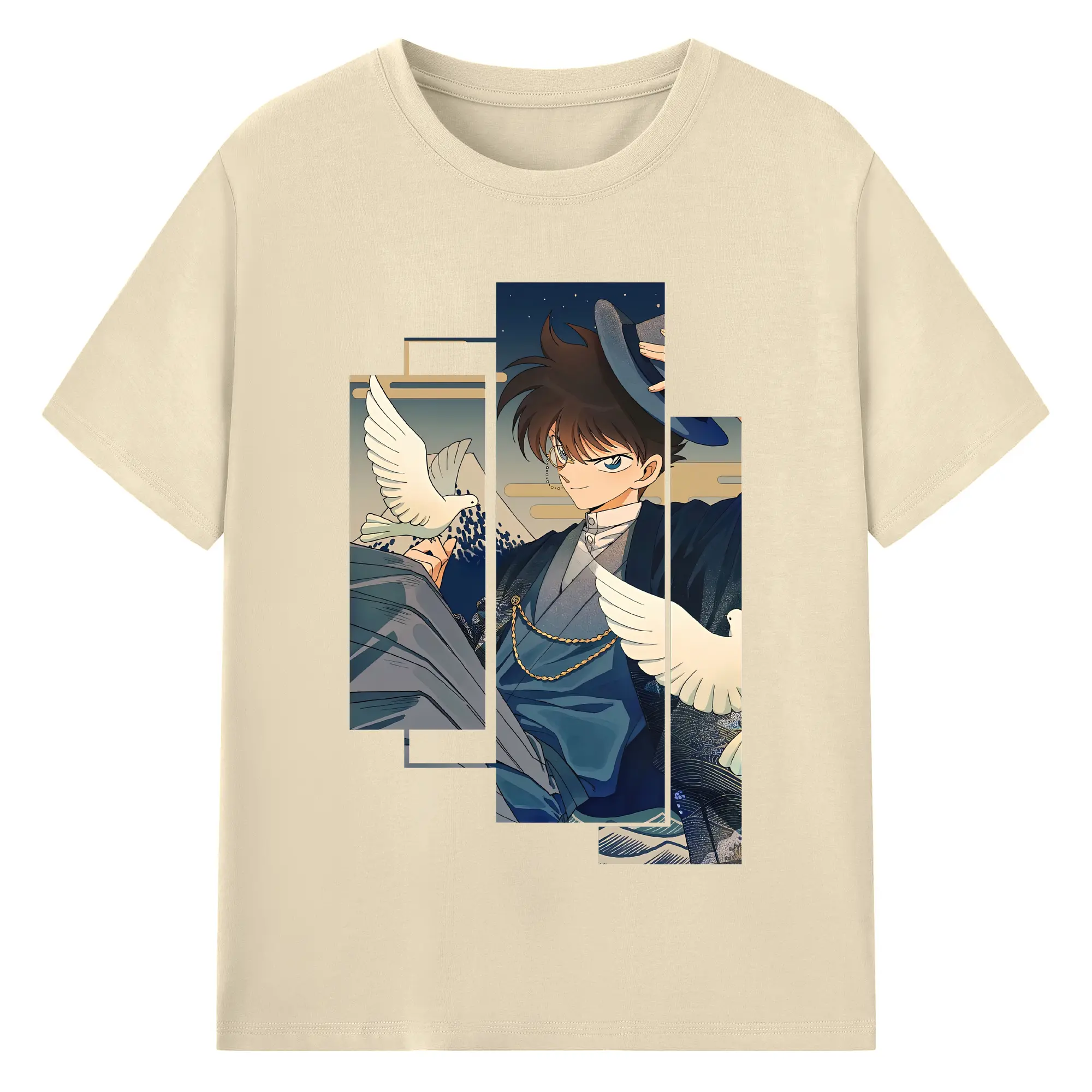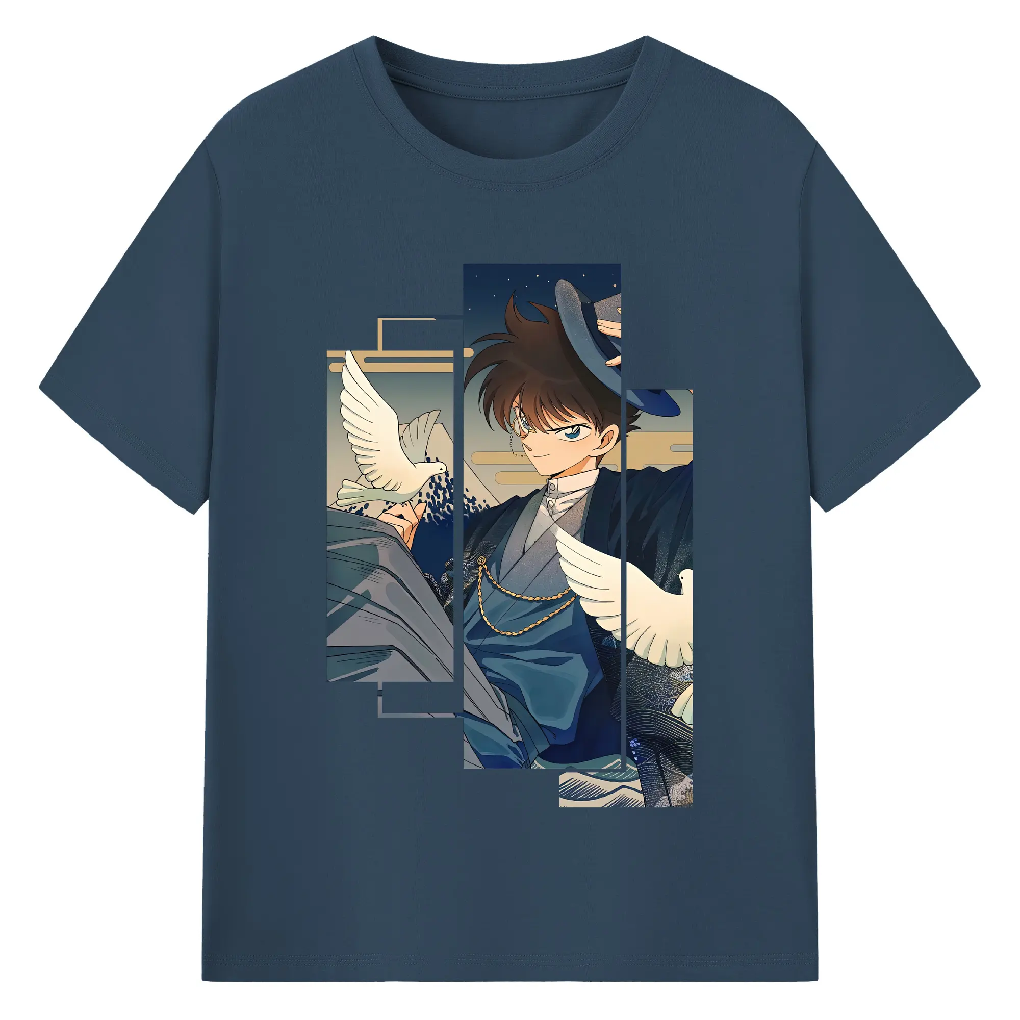 名探偵コナン グッズ 江戸川 コナン - 綿100% ヴィンテージ風 半袖Tシャツ ・ フロントプリント ・ 柔らか肌触り ・ 通気性 快適 ・ スポーツ カジュアル 外出用