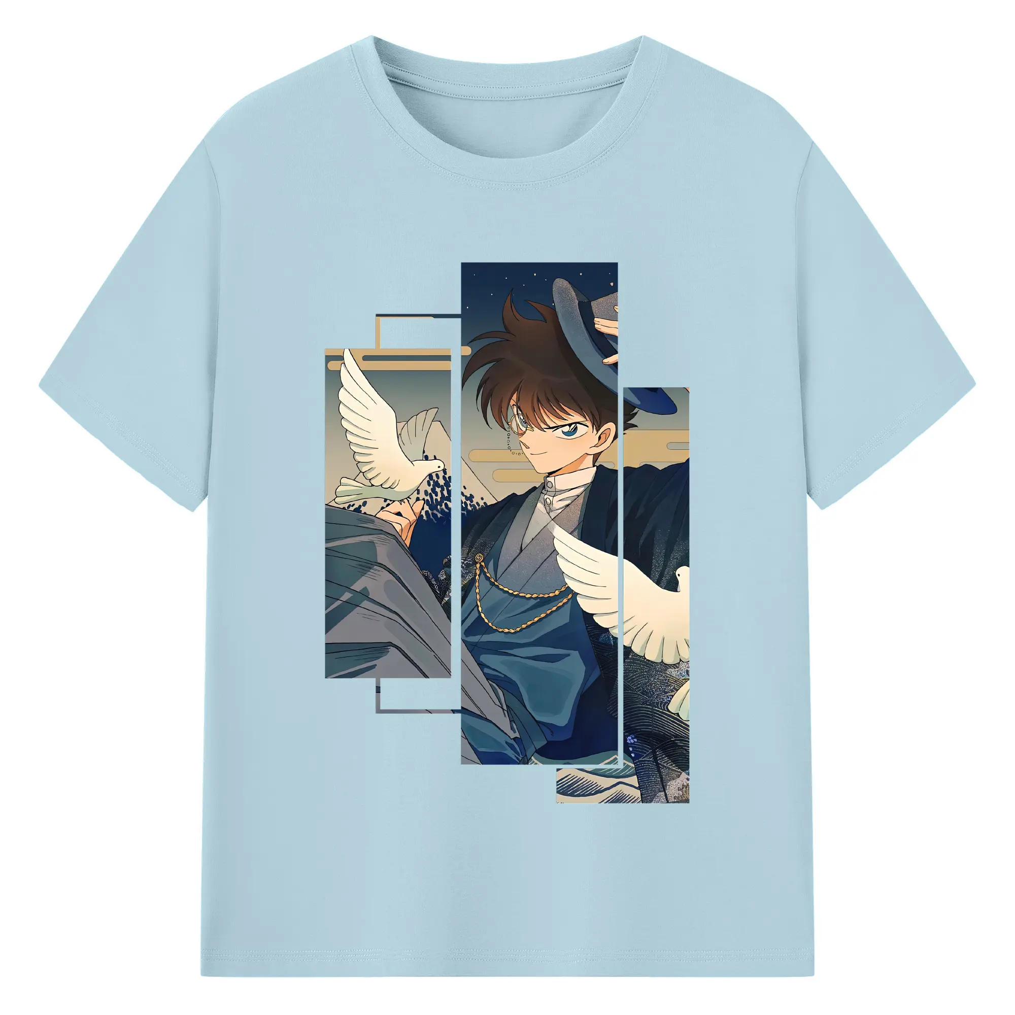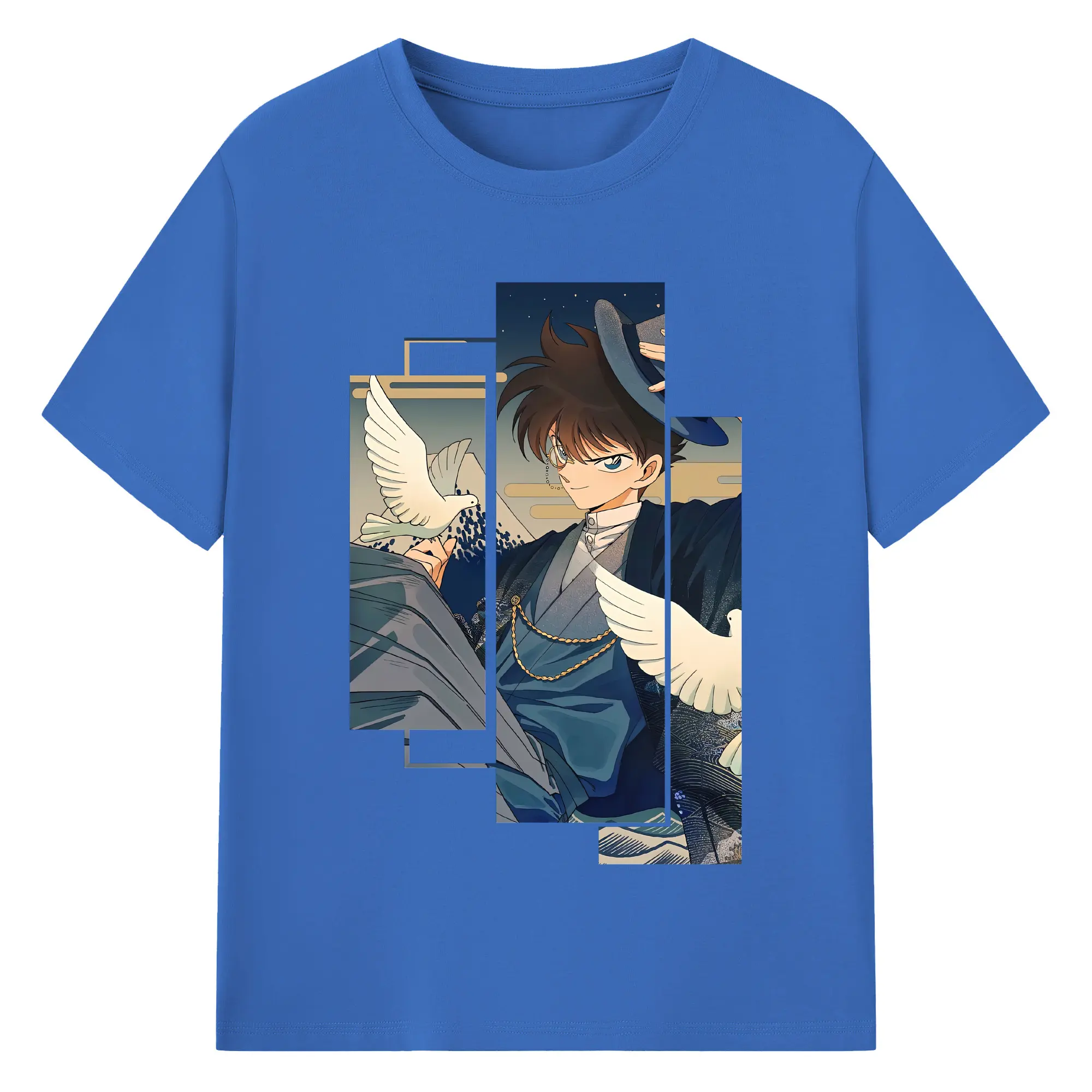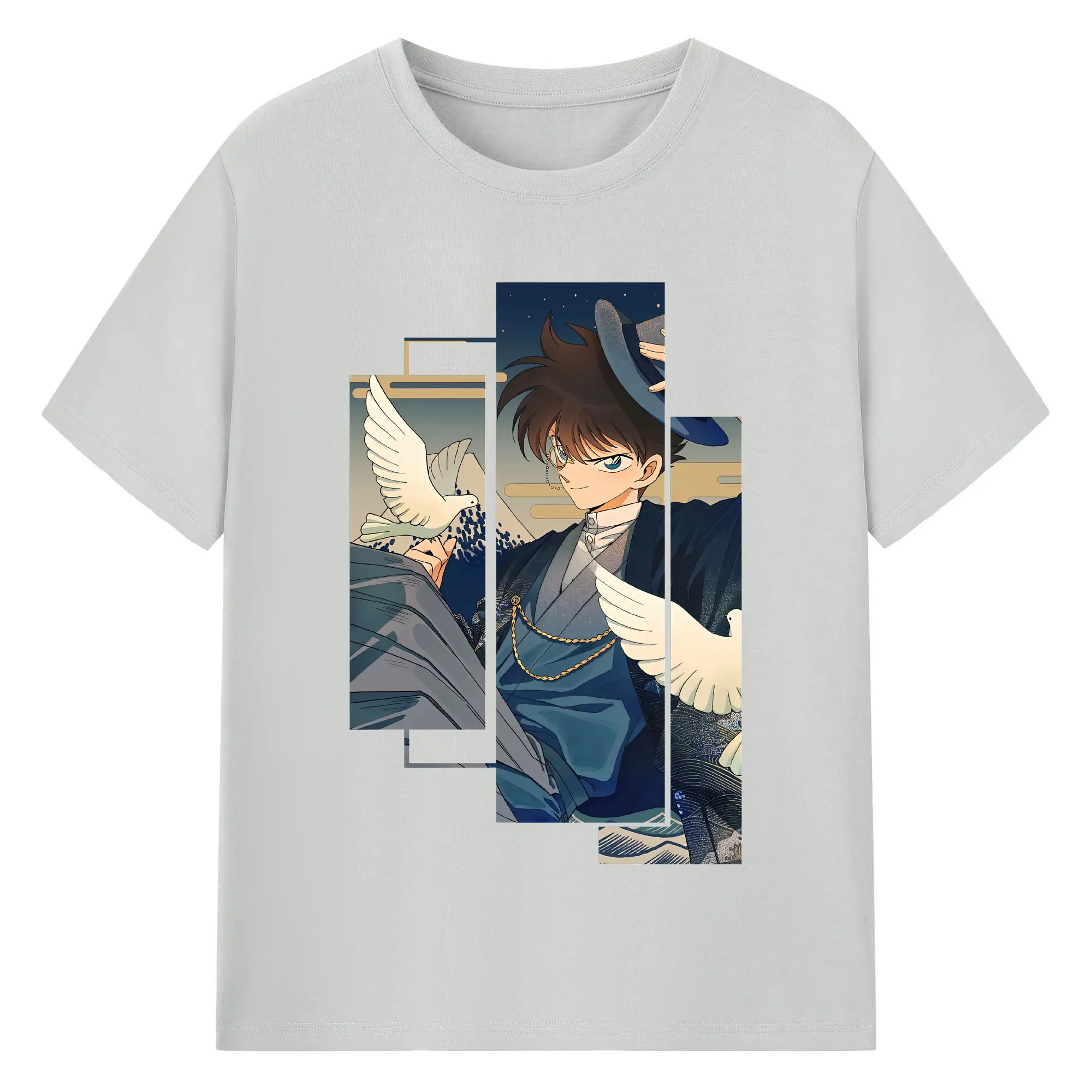 名探偵コナン グッズ 江戸川 コナン - 綿100% 半袖Tシャツ ・ バックプリント ・ 快適 通気性 ・ 日常使い 散歩 スポーツ用
