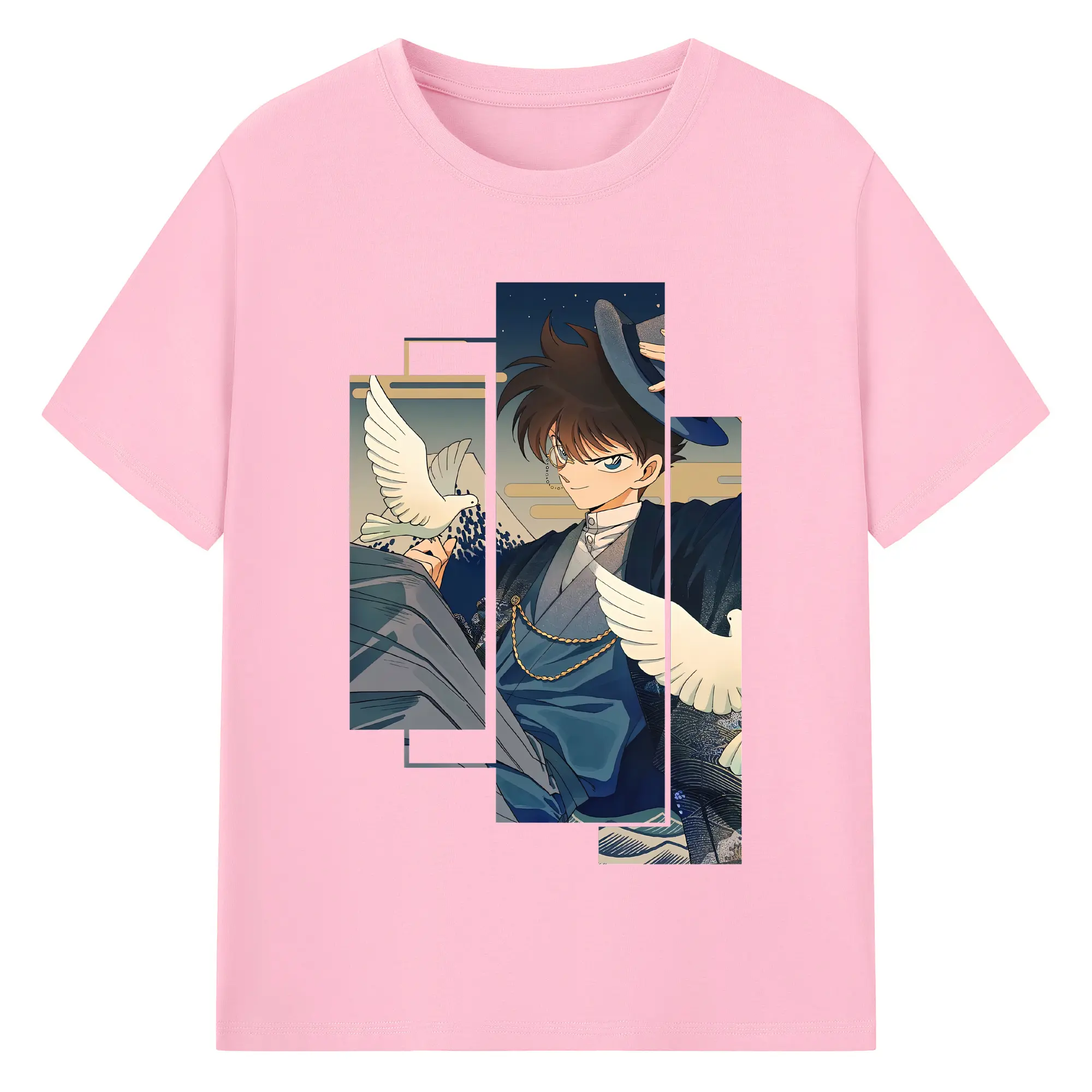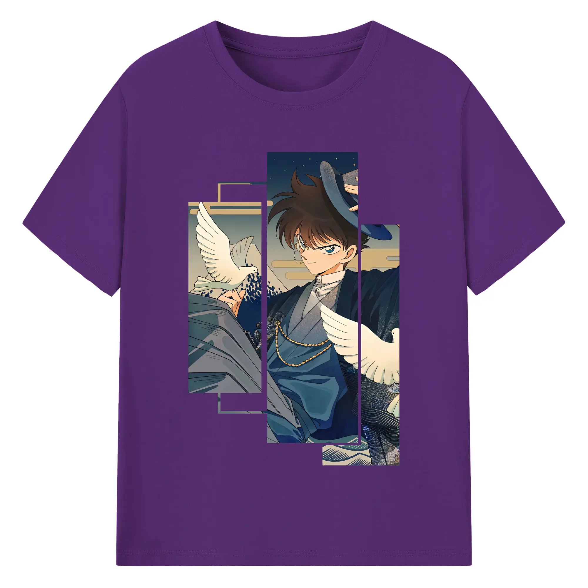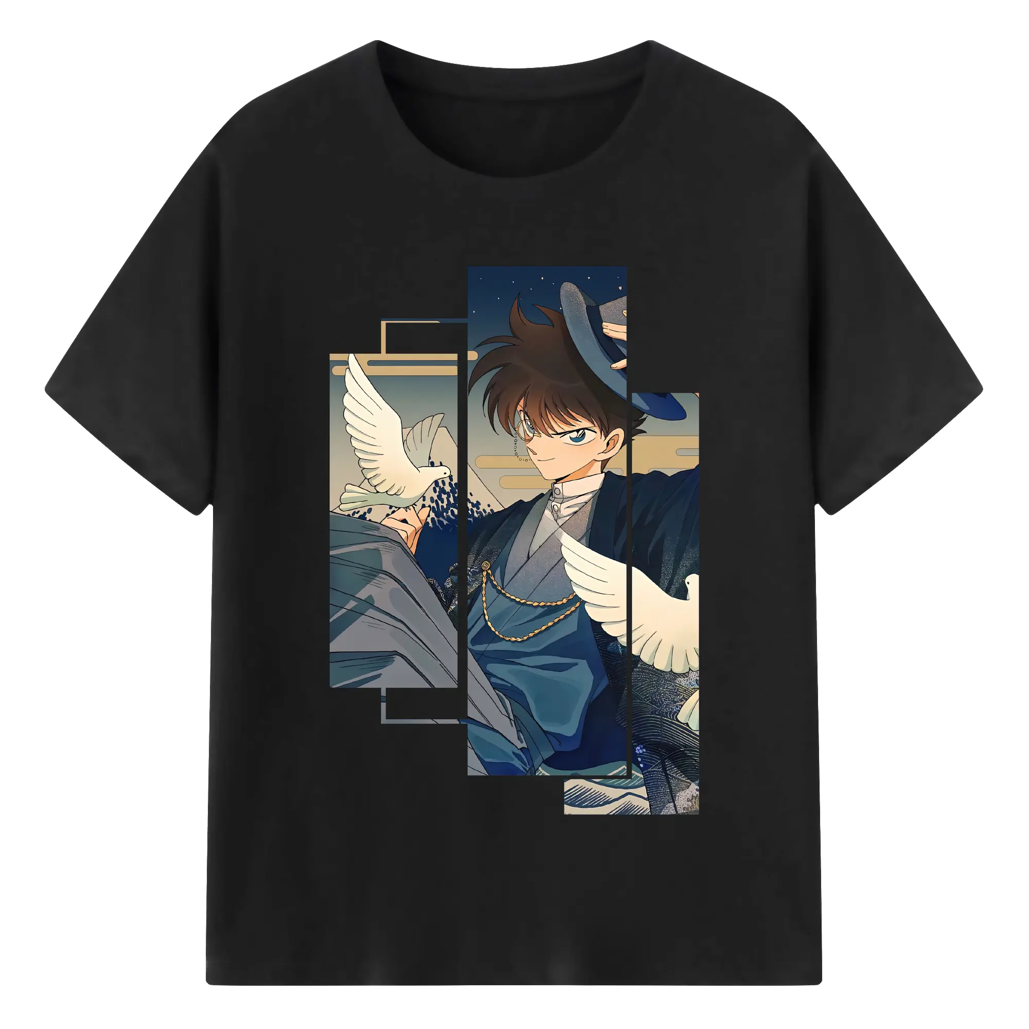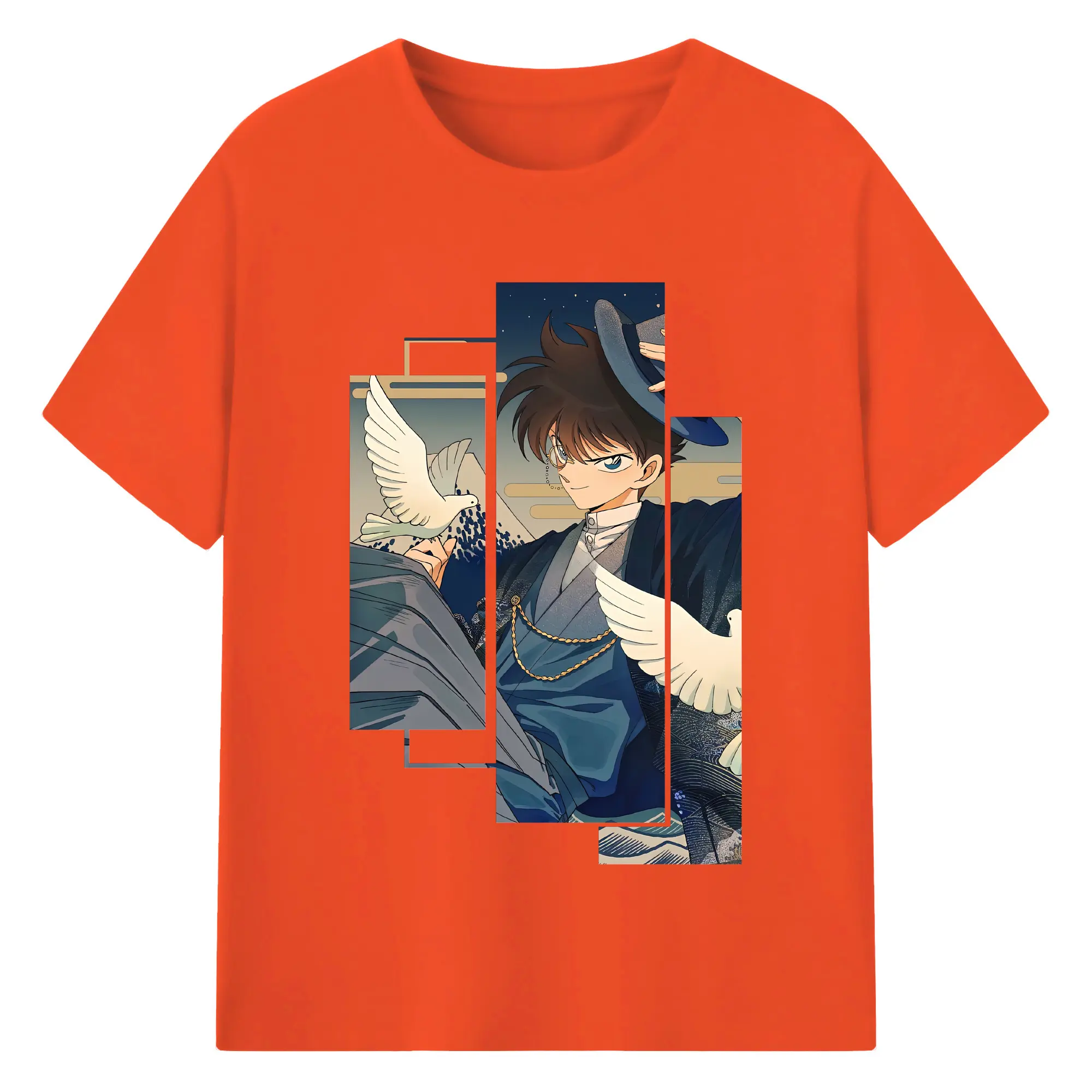 名探偵コナン グッズ 江戸川 コナン - 綿100% 半袖Tシャツ ・ バックプリント ・ 快適 通気性 ・ 日常使い 散歩 スポーツ用