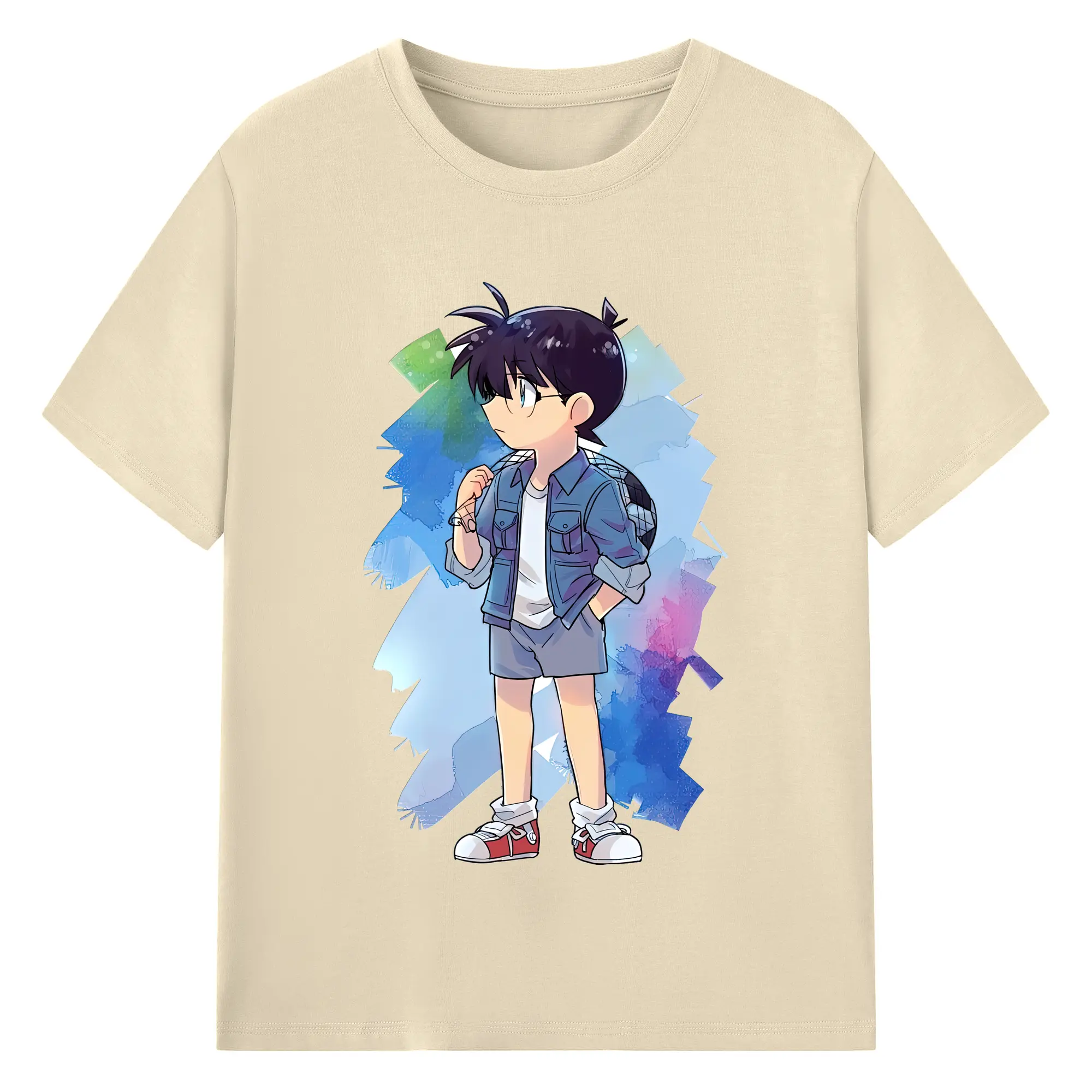 名探偵コナン グッズ 江戸川 コナン - 綿100% ヴィンテージ風 半袖Tシャツ ・ フロントプリント ・ 柔らか肌触り ・ 通気性 快適 ・ スポーツ カジュアル 外出用