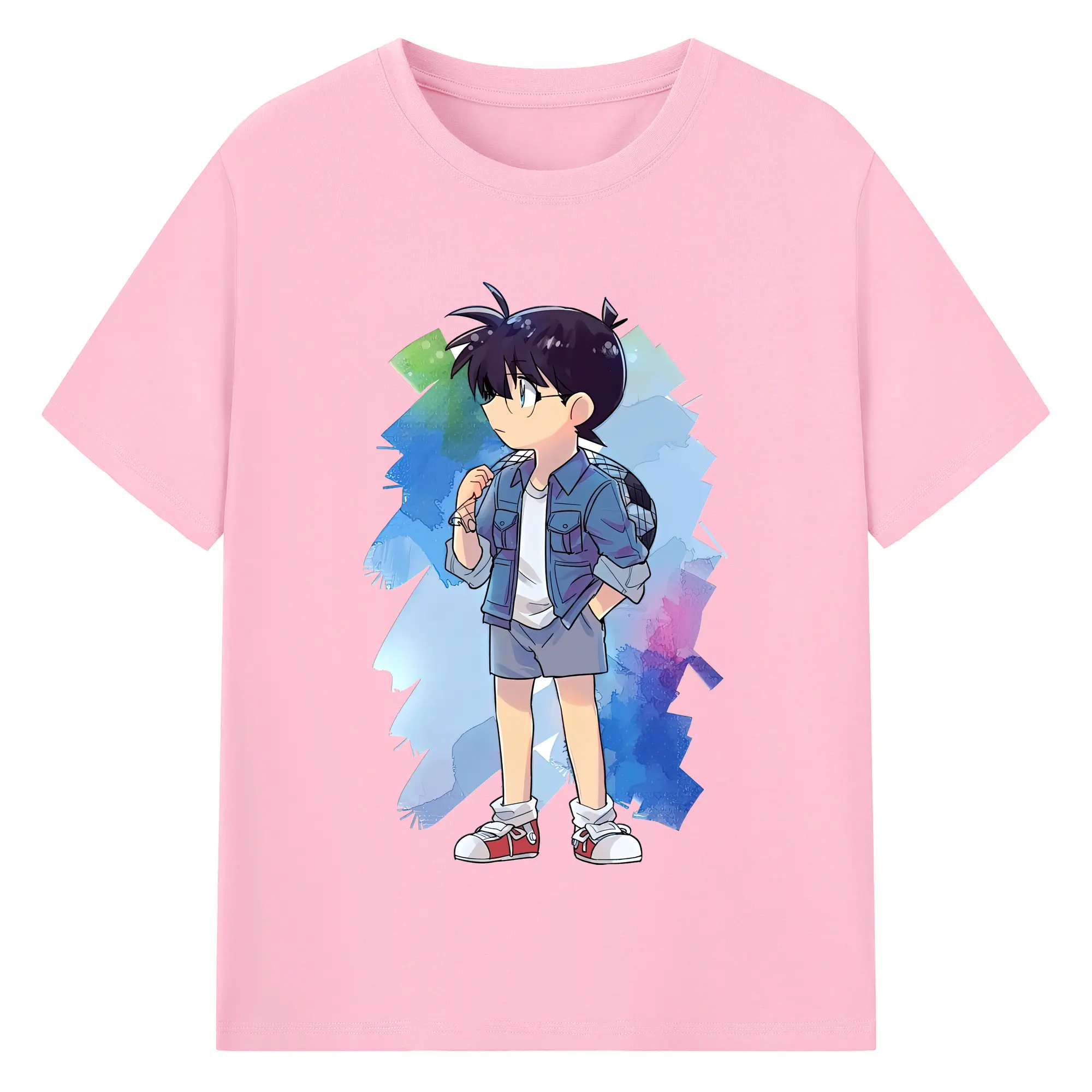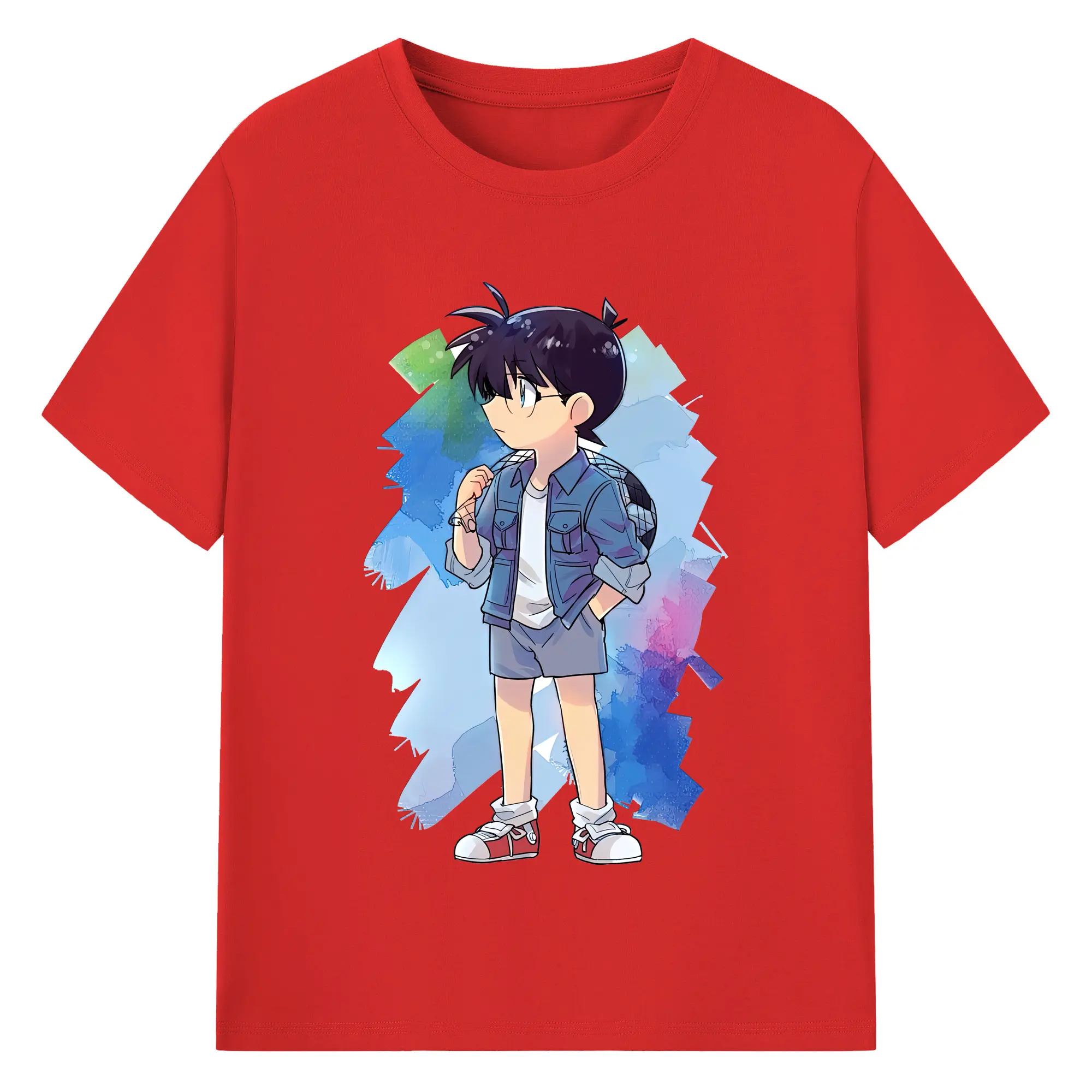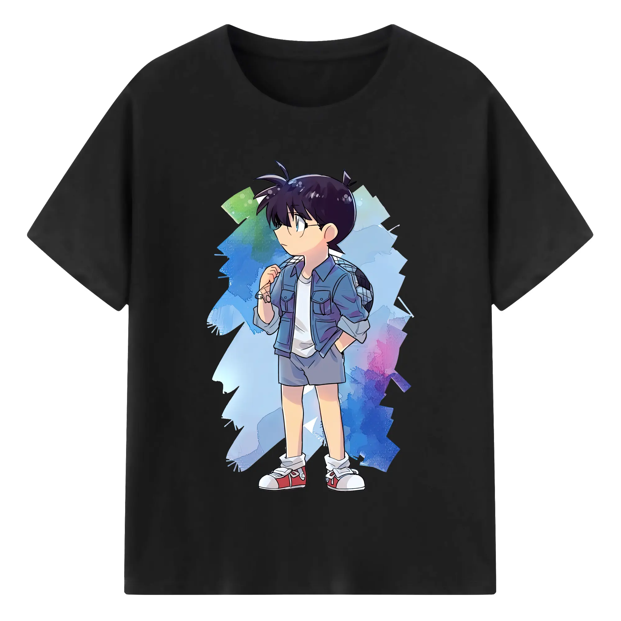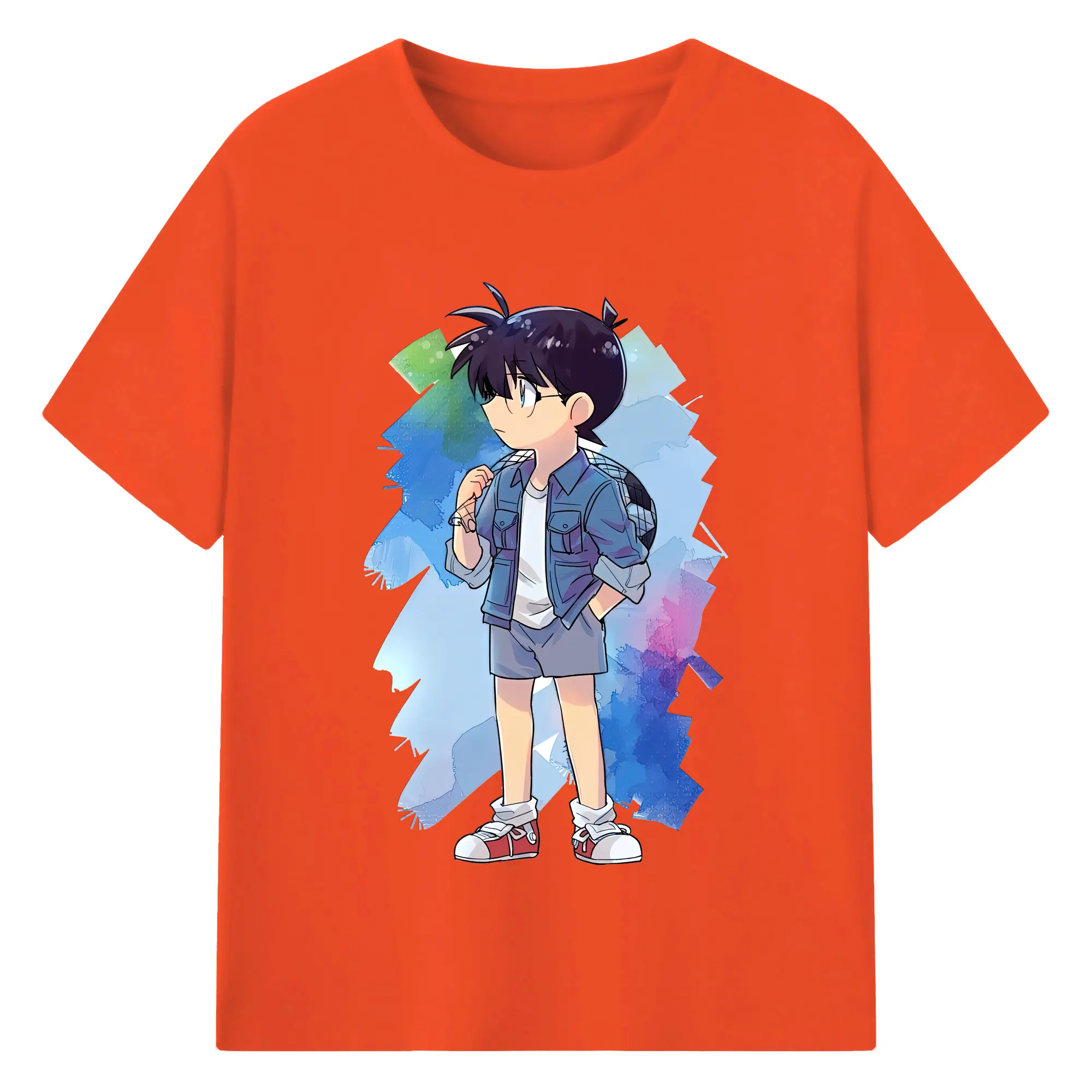 名探偵コナン グッズ 江戸川 コナン - 綿100% キッズTシャツ ・ フロントプリント ・ 快適 通気性 ・ スポーツ カジュアル 散歩用