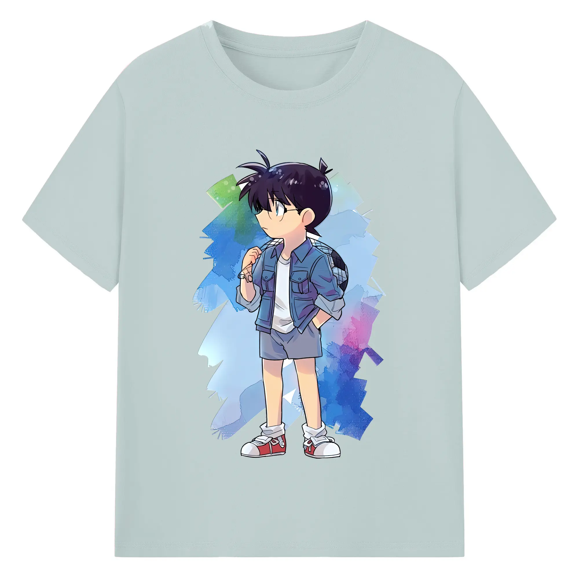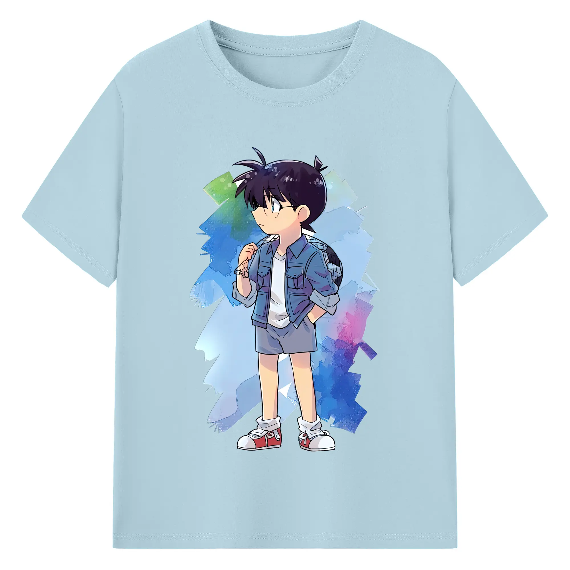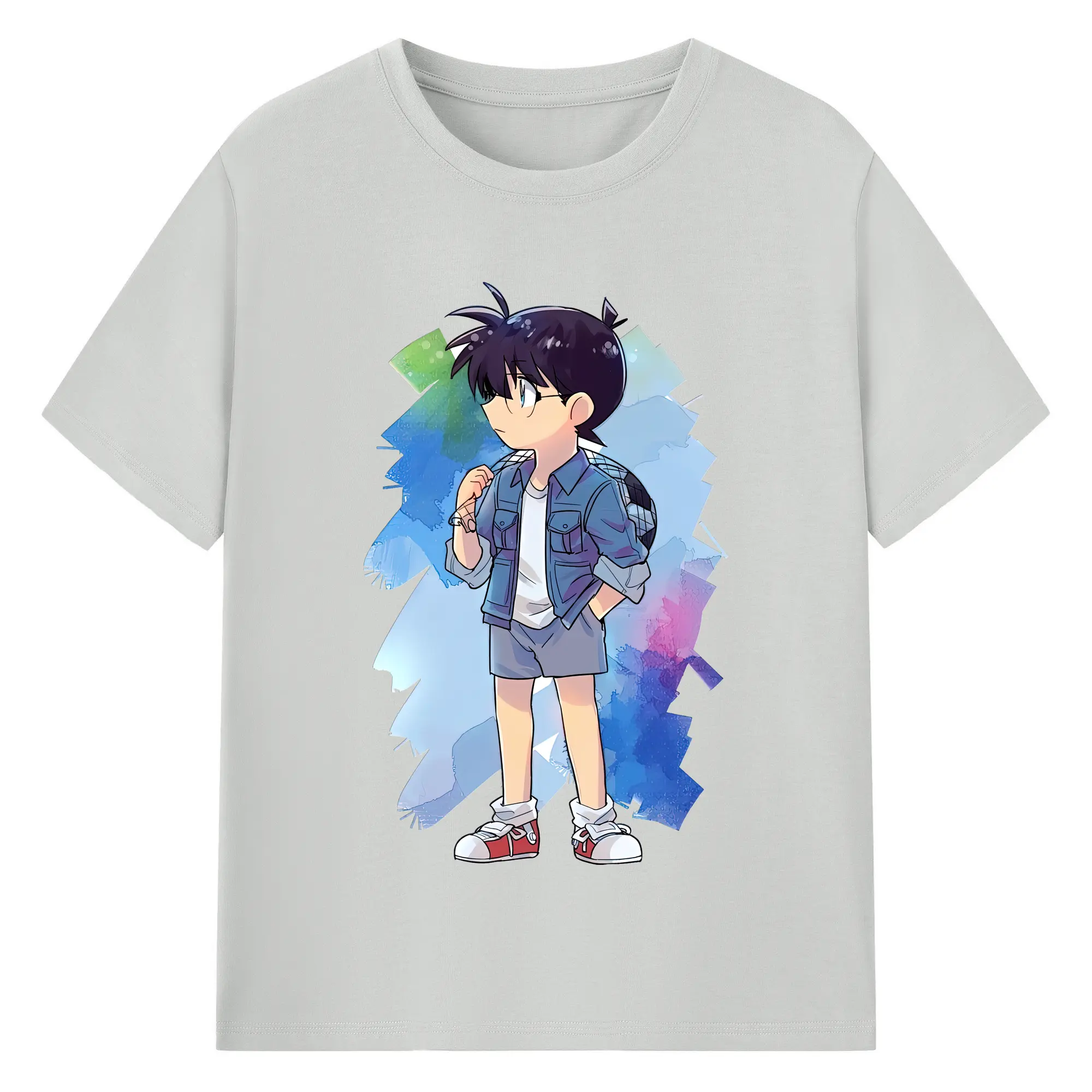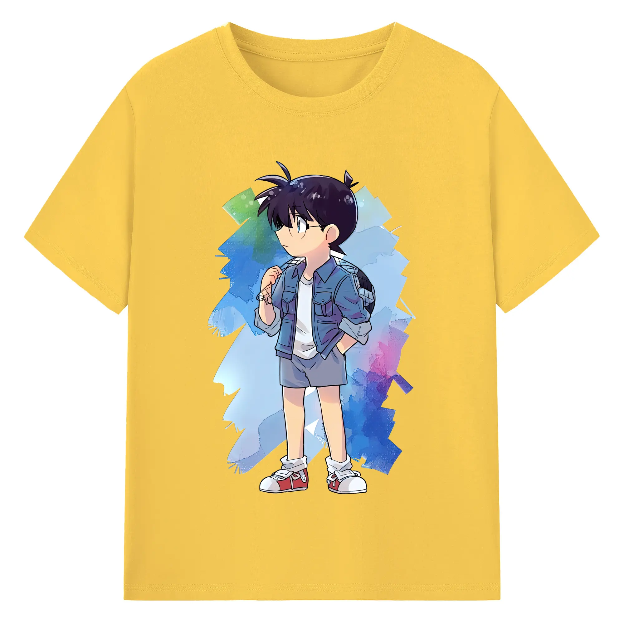 名探偵コナン グッズ 江戸川 コナン - 綿100% キッズTシャツ ・ フロントプリント ・ 快適 通気性 ・ スポーツ カジュアル 散歩用