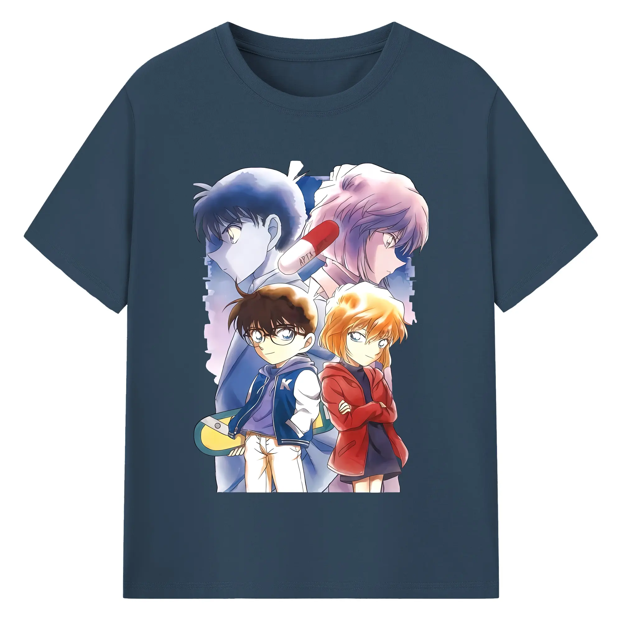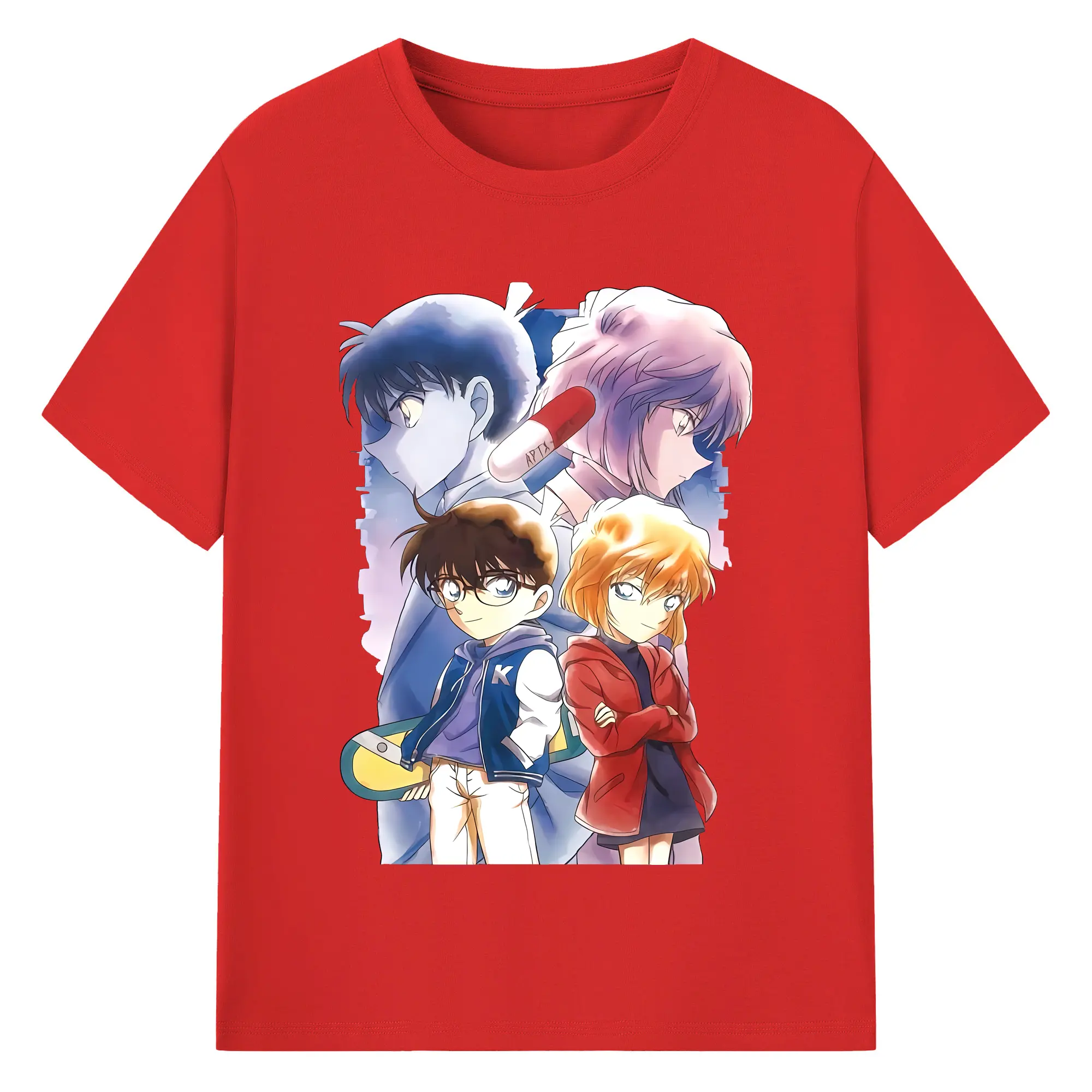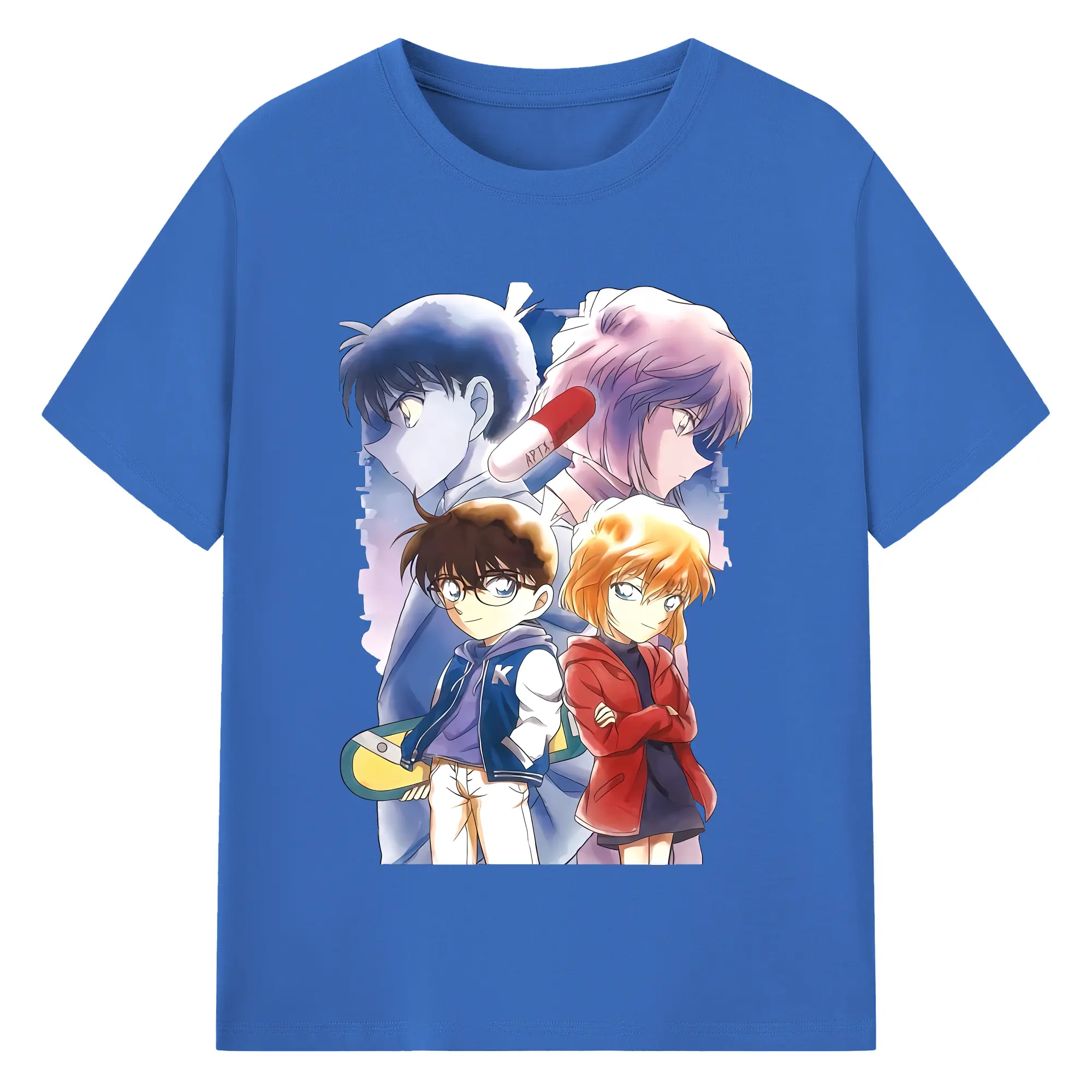 名探偵コナン グッズ 江戸川 コナン - 綿100% 半袖Tシャツ ・ バックプリント ・ 快適 通気性 ・ 日常使い 散歩 スポーツ用